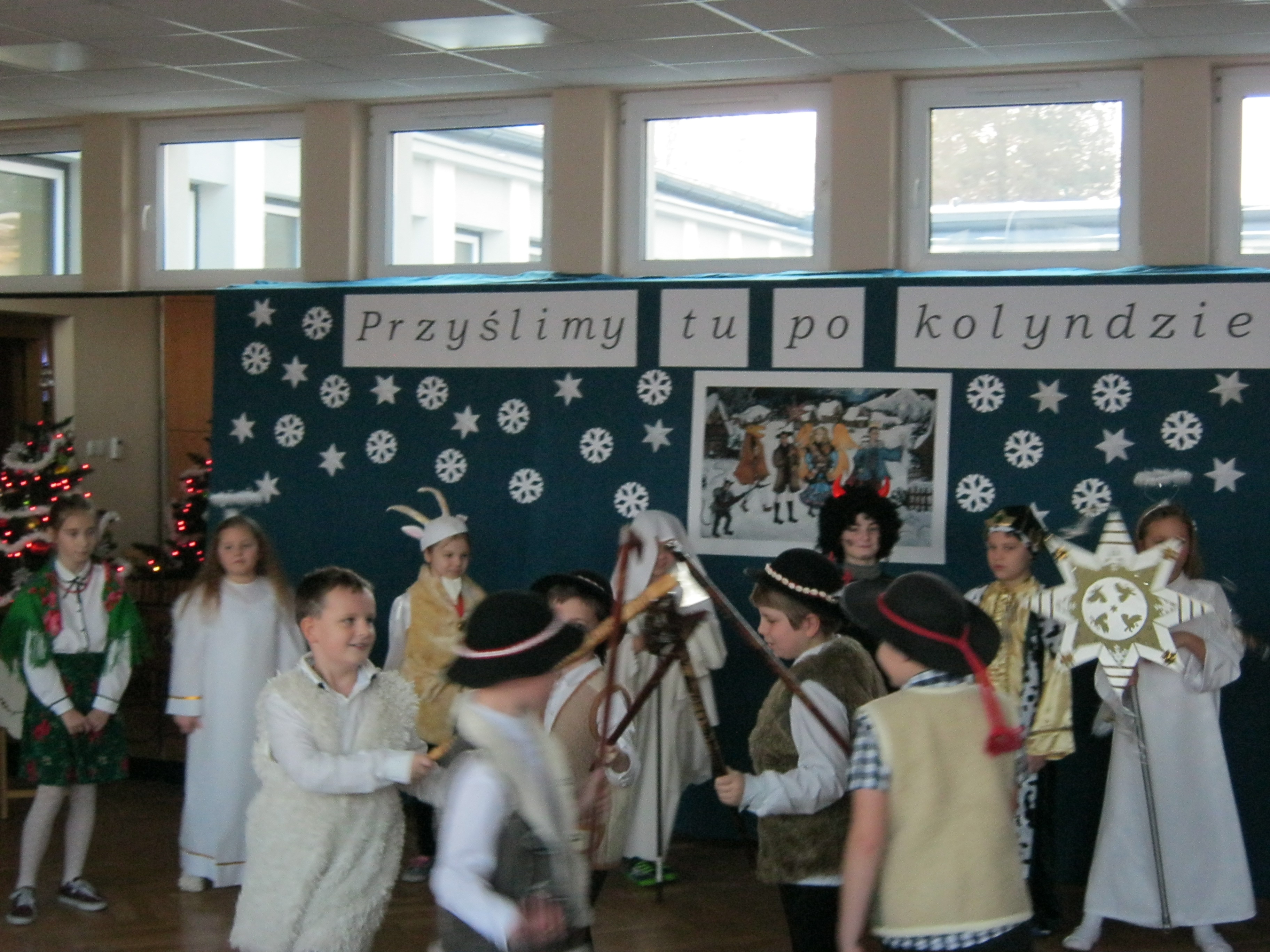 Te życzenia usłyszeli goście od kolędników - uczniów klasy III b podczas przedstawienia przygotowanego dla swoich rodziców. Celem tego spotkania było kultywowanie ludowej tradycji kolędowania oraz prezentacja zwyczajów i obrzędów bożonarodzeniowych. Uczniowie przebrani w piękne kostiumy aniołów, diabłów, Turonia, Gwiazdora, Heroda, Śmierci, górali i góralek zaprezentowali swoje umiejętności aktorskie. Całość okraszona była przyśpiewkami góralskimi, pastorałkami, kolędami i tańcem. Nie zabrakło też kolędy winszującej. Za to wesołe kolędowanie dzieci otrzymały słodycze i wielkie brawa. To był niezapomniany wieczór!