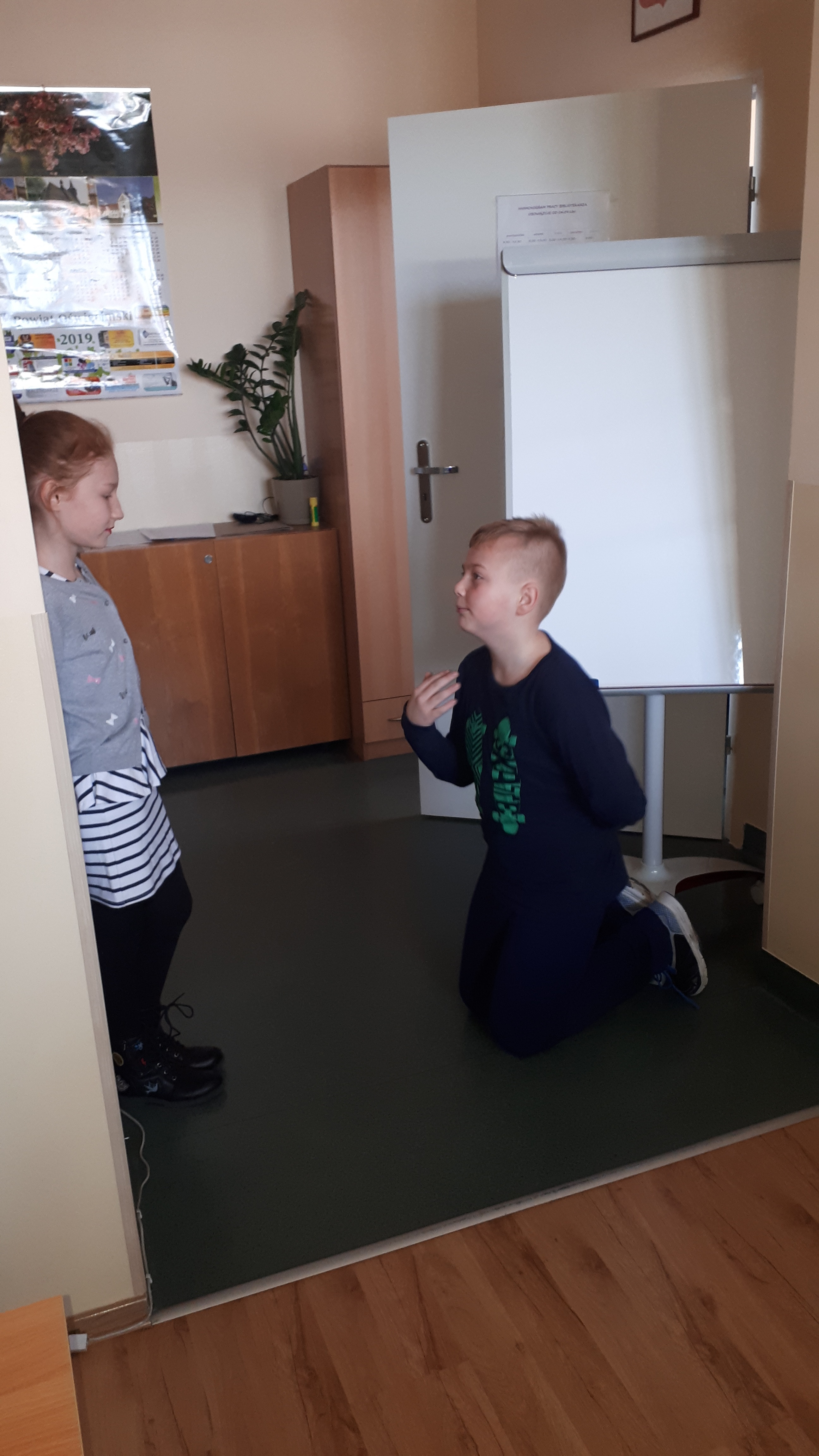 Zanim jednak zostali pasowani na czytelników, obejrzeli występ przygotowany przez starsze koleżanki i kolegów z klas 5a i 5b, składający się z recytacji utworów Juliana Tuwima. Odpowiadali też i zadawali pytania dotyczące biblioteki i książek. Następnie uczniowie w skupieniu i powadze uroczyście przyrzekli, że będą kochać i szanować książki, korzystać z ich mądrości i sumiennie wypełniać obowiązki czytelnika. Każdy pierwszoklasista został uroczyście pasowany przez panią bibliotekarkę na czytelnika szkolnej biblioteki. Na pamiątkę tego wydarzenia uczniowie otrzymali pamiątkowe zakładki.