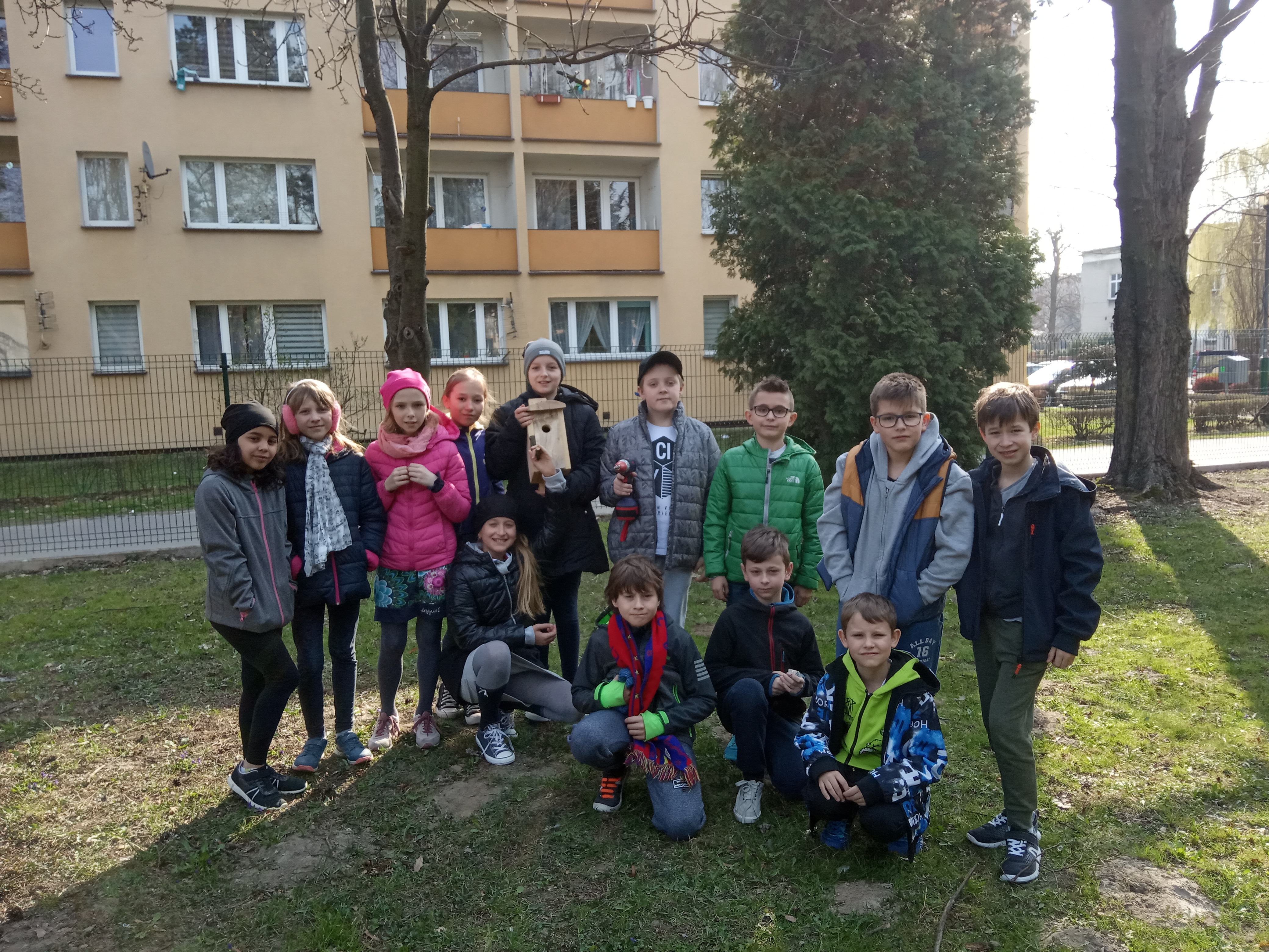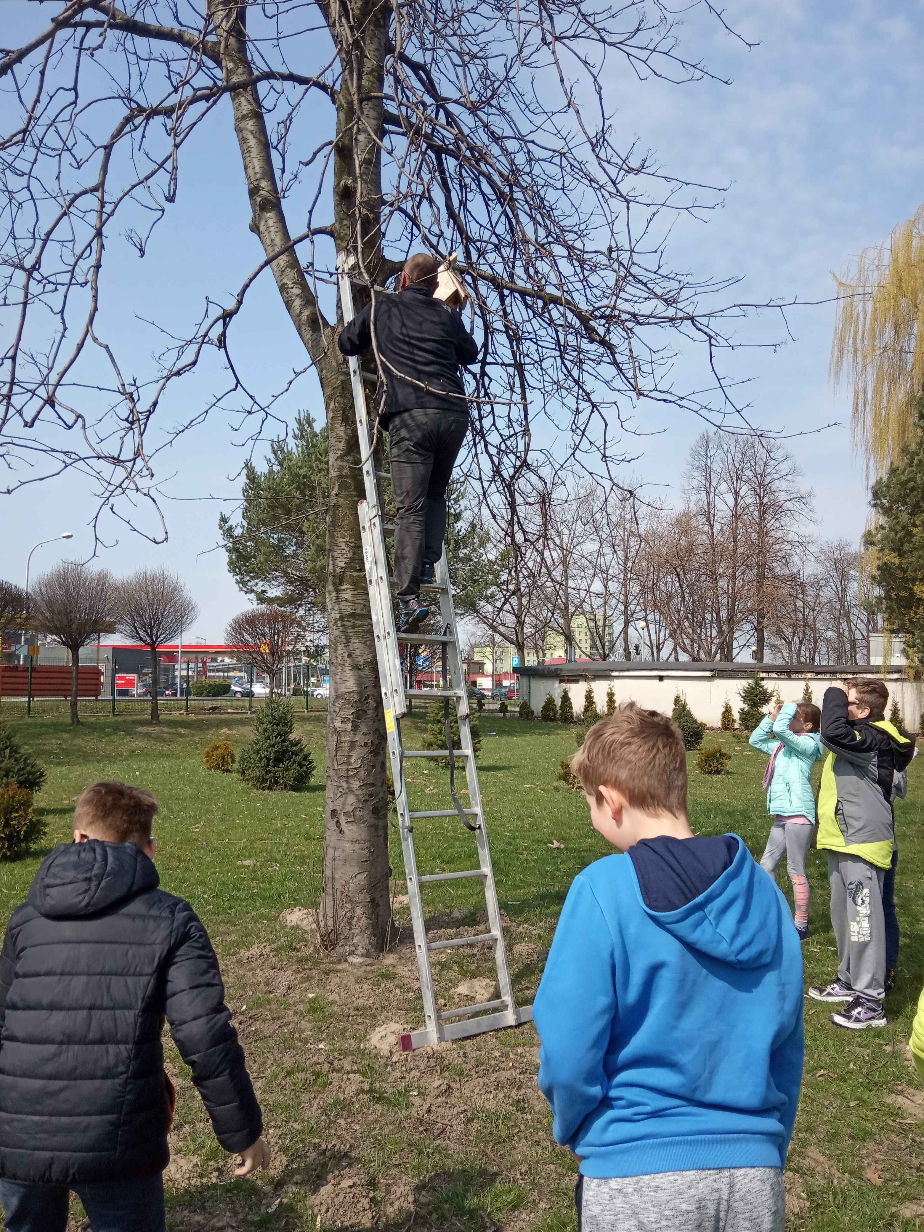 Uczniowie klas czwartych wraz z nadejściem wiosny postanowili zaopiekować się ptakami naszej okolicy. Każda z klas zwiesiła na drzewach rosnących wokół szkoły, budki lęgowe. Szkoła otrzymała je od uczniów Liceum Ogólnokształcącego im. Stanisława Konarskiego. Teraz będziemy obserwowali nasze budki z nadzieją, że zadomowiły się tam jakieś ptaki.