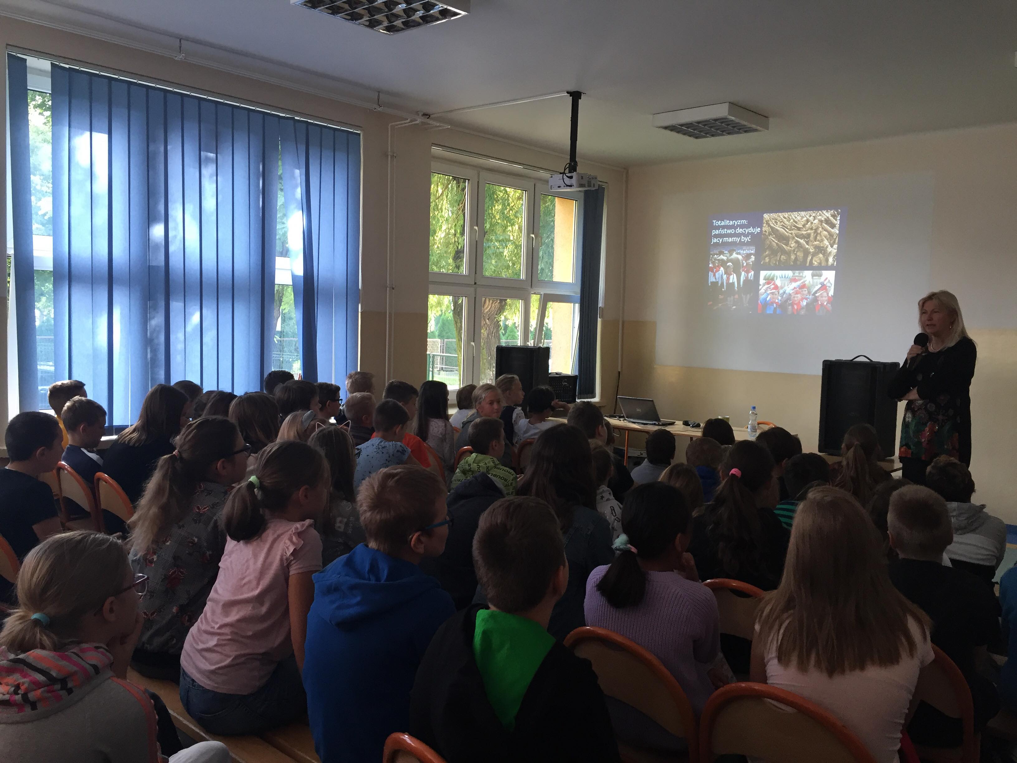 Po raz kolejny świętowaliśmy w naszej szkole Międzynarodowy Dzień Pokoju, obchodzony na całym świecie 21 września. „Gołębie Pokoju”, wykonane przez młodsze klasy, ozdobiły jedną ze szkolnych gazetek. Uczniowie 5. i 6. klas wzięli udział w prelekcji prowadzonej przez dr Alicję Bartuś z Oświęcimskiego Instytutu Praw Człowieka i zastanawiali się wraz z nią, czy prawa człowieka są potrzebne. Z kolei uczniowie klasa 7. i 8. uczestniczyli w wykładzie zatytułowanym „Auschwitz – wołanie o pokój”.