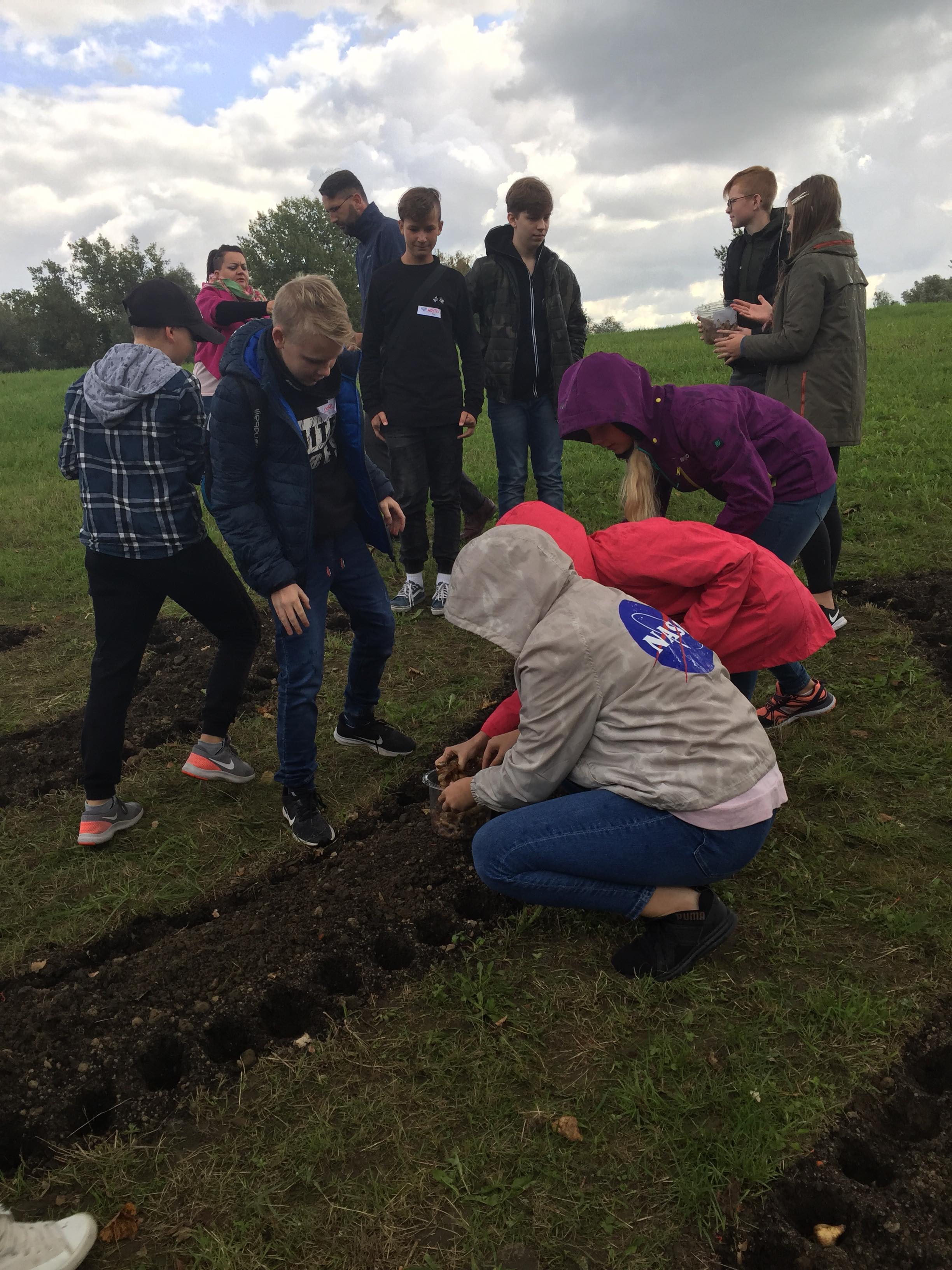 Jedna z 7. klas wzięła udział w warsztatach w Dziennym Domu Pomocy w Oświęcimiu – „Międzypokoleniowe Spotkania z Menorą w tle”. Tam nasza młodzież, bez trudu przełamując pokoleniowe bariery, bardzo ciekawie spędziła czas ze starszymi osobami. Wspólnie wcielali się na przykład w detektywów i poznawali fascynujące żydowskie historii sprzed II wojny światowej. A na koniec posadzili kwiaty, które – kiedy wyrosną na wiosnę – utworzą okazałą menorę.