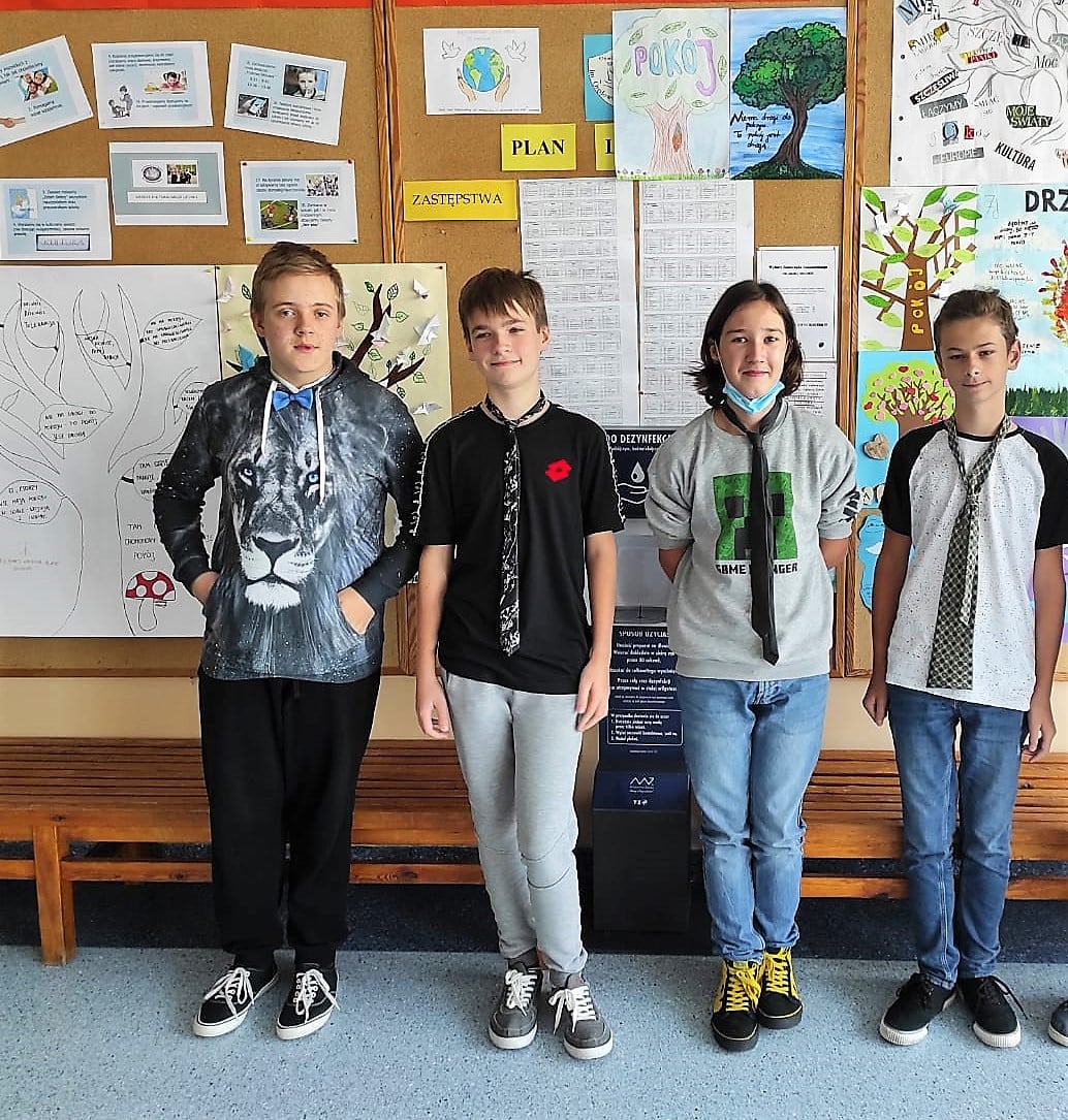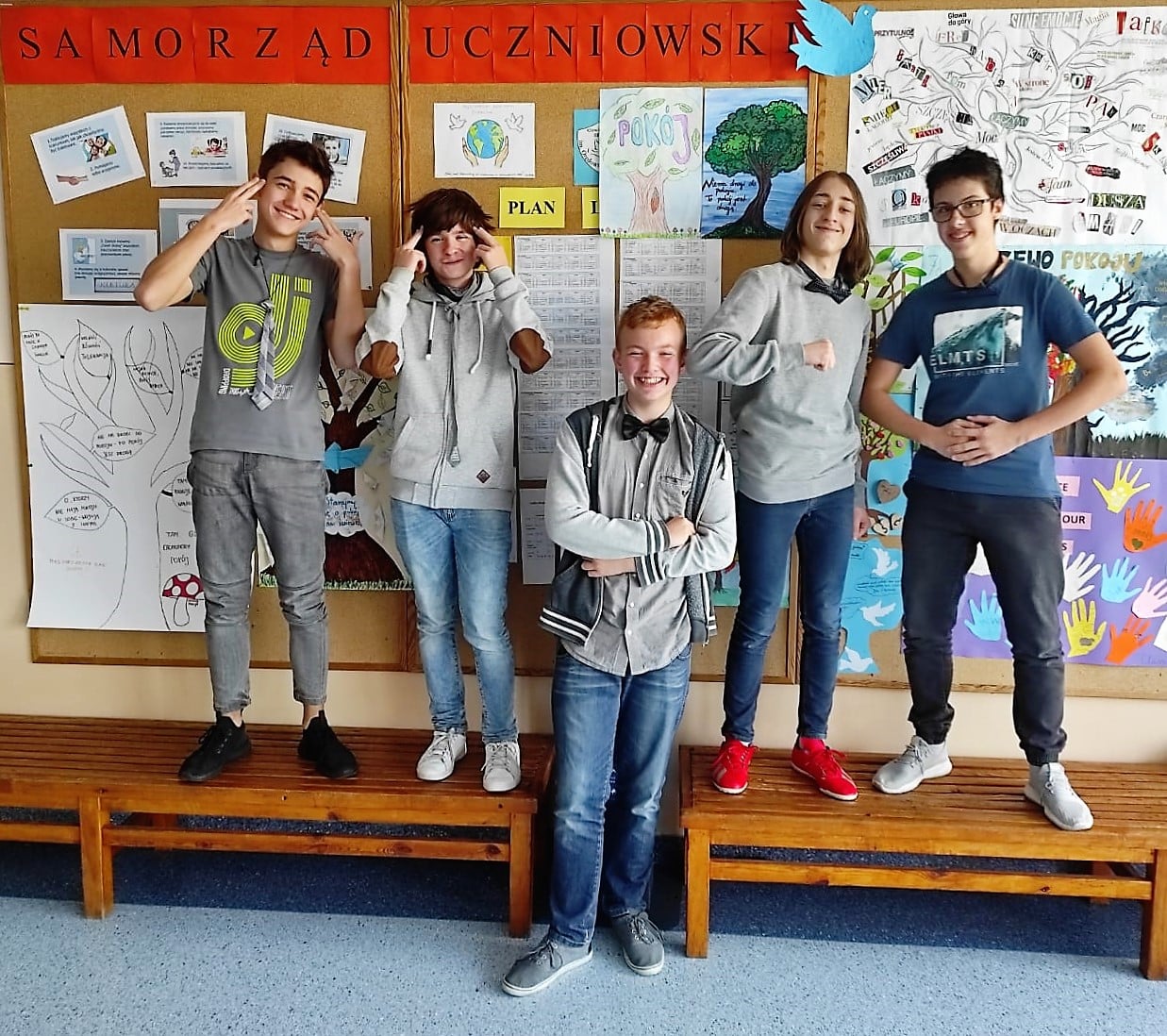 29 września uczciliśmy obchody Dnia Chłopaka. W tym dniu na prośbę Samorządu Uczniowskiego liczna grupa chłopców, zarówno młodszych jak i tych starszych, przyszła ubrana w muchy i krawaty. Trzeba przyznać, że nasi chłopcy prezentowali się wyjątkowo wytwornie. Wszystkim, którzy przyłączyli się do wspólnej zabawy dziękujemy.