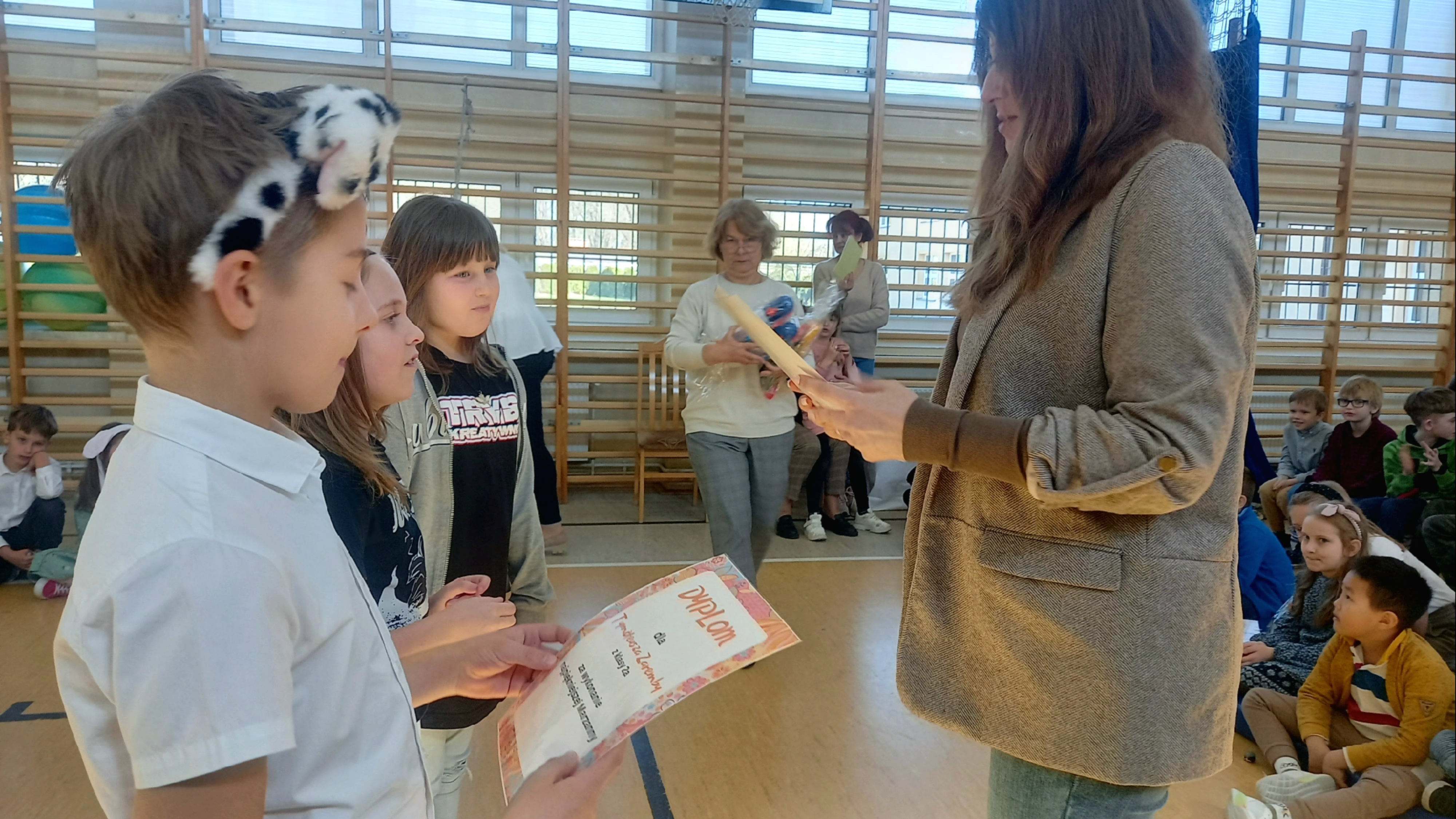 Po przedstawieniu miało miejsce wręczenie nagród oraz dyplomów dla zwycięzców konkursów szkolnych.