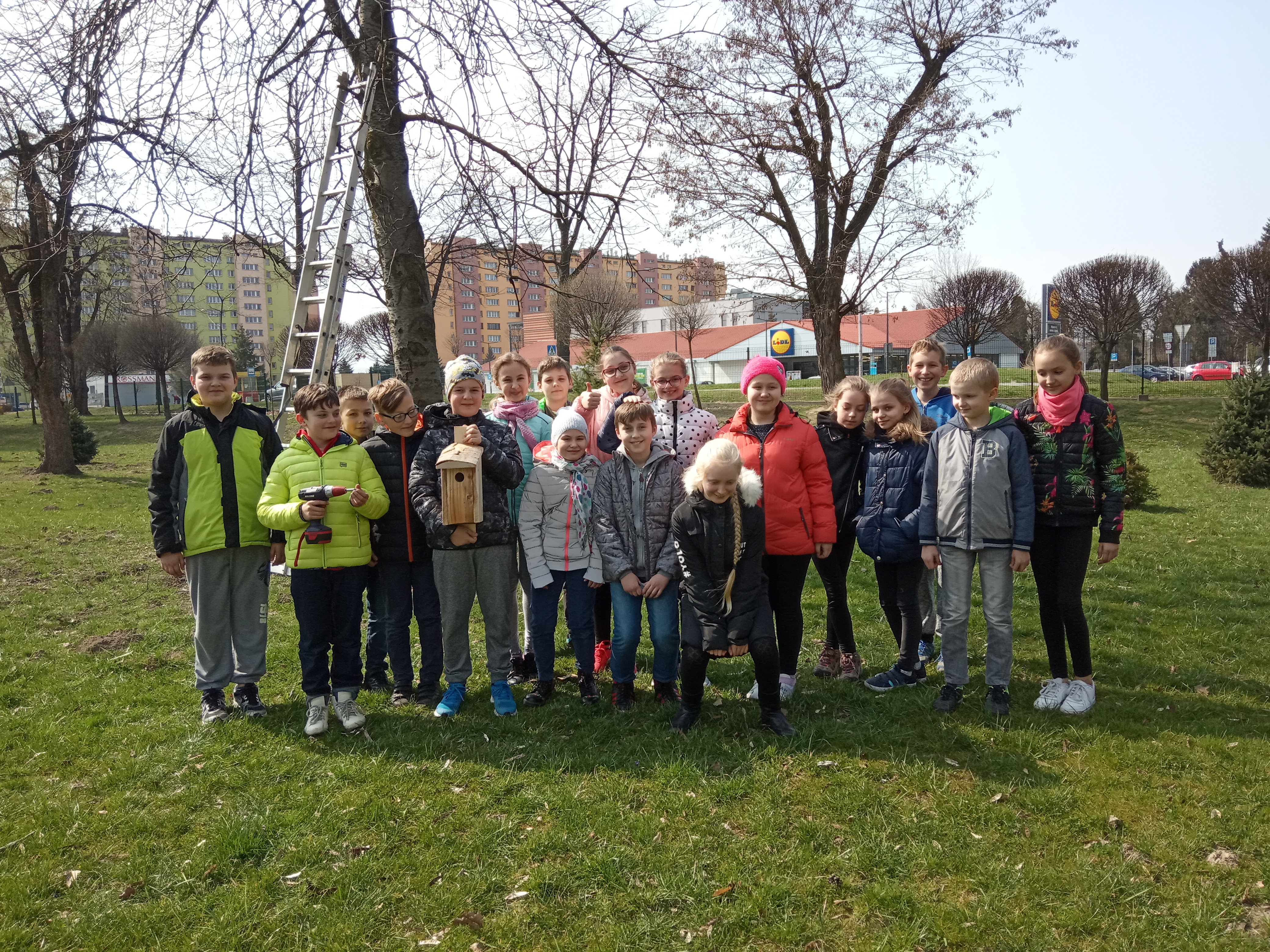 Uczniowie klas czwartych wraz z nadejściem wiosny postanowili zaopiekować się ptakami naszej okolicy. Każda z klas zwiesiła na drzewach rosnących wokół szkoły, budki lęgowe. Szkoła otrzymała je od uczniów Liceum Ogólnokształcącego im. Stanisława Konarskiego. Teraz będziemy obserwowali nasze budki z nadzieją, że zadomowiły się tam jakieś ptaki.