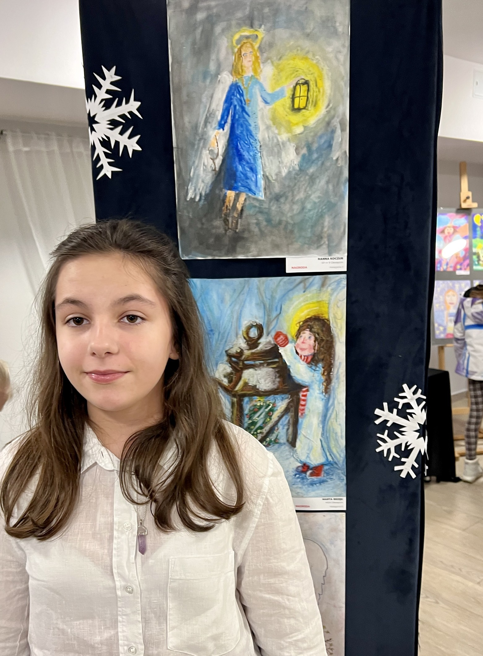 17 stycznia w Młodzieżowej Piwnicy Artystycznej odbyło się uroczyste wręczenie nagród powiatowego konkursu plastycznego “Kufer Wyobraźni” pod hasłem “Świąteczny Anioł” . Uczennica naszej szkoły Hanna Koczur z kl. 5b otrzymała nagrodę w swojej kategorii. Nagrody młodym artystom wręczyli Dyrektor MDK Alina Kwarciak oraz członkini Zarządu Powiatu Oświęcimskiego, pani Teresa Jankowska. Imprezę uświetnił występ laureatów III Powiatowego Konkursu Kolęd i Pastorałek. Honorowy patronat nad konkursem, na który wpłynęło ponad 400 prac z całego powiatu, objął Starosta Oświęcimski Andrzej Skrzypiński.