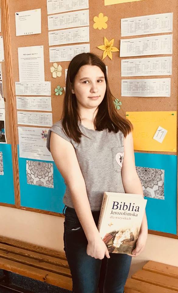 Emilia Hutny - uczennica klasy 5c zdobyła bardzo wysoką (4 miejsce na 121 uczniów) lokatę w kuratoryjnym Biblijnym Konkursie Tematycznym „Z Dobrą Nowiną przez życie” i tym samym została laureatem tegoż konkursu. To wielkie osiągnięcie - gratulujemy Emilce!