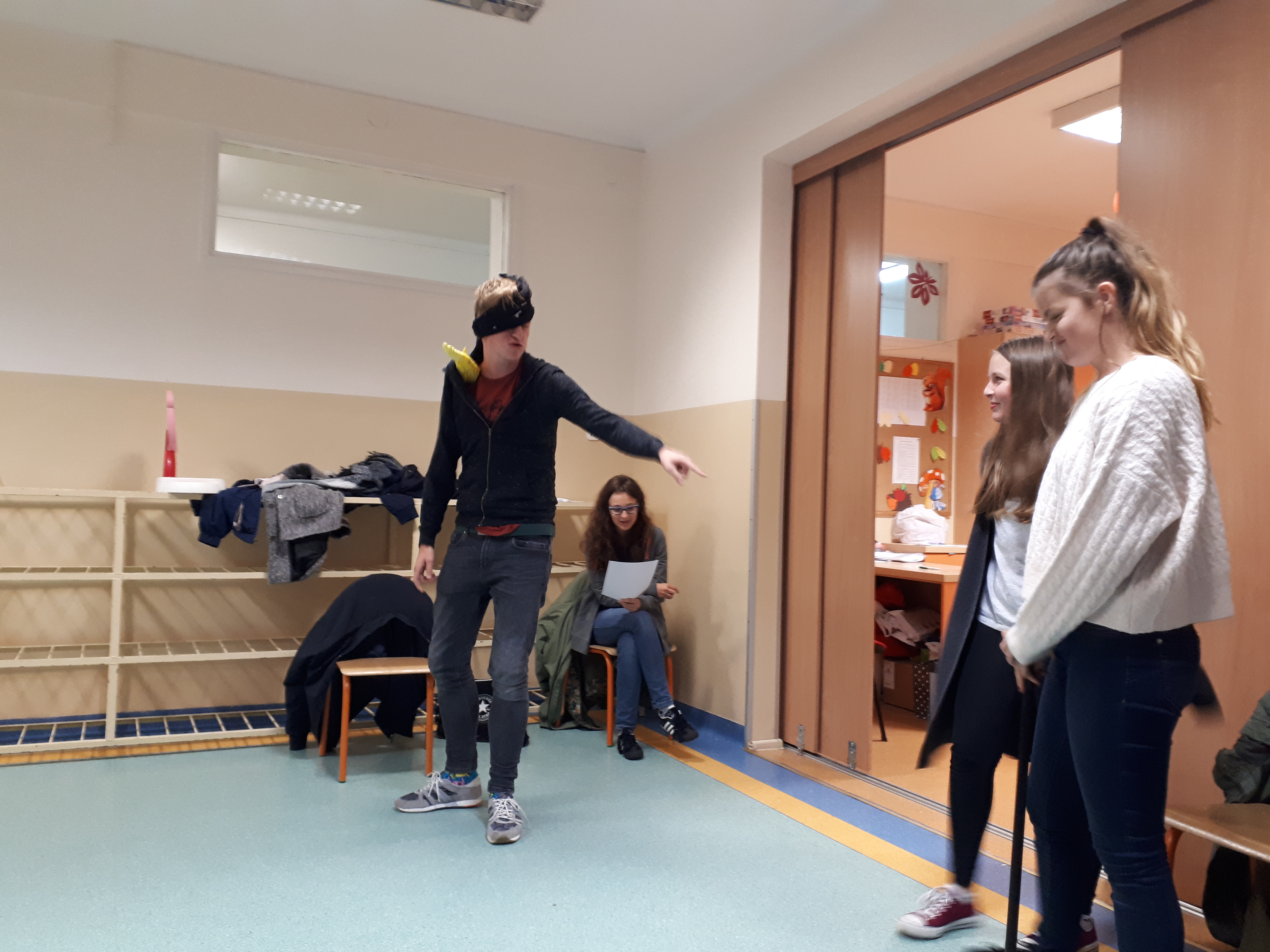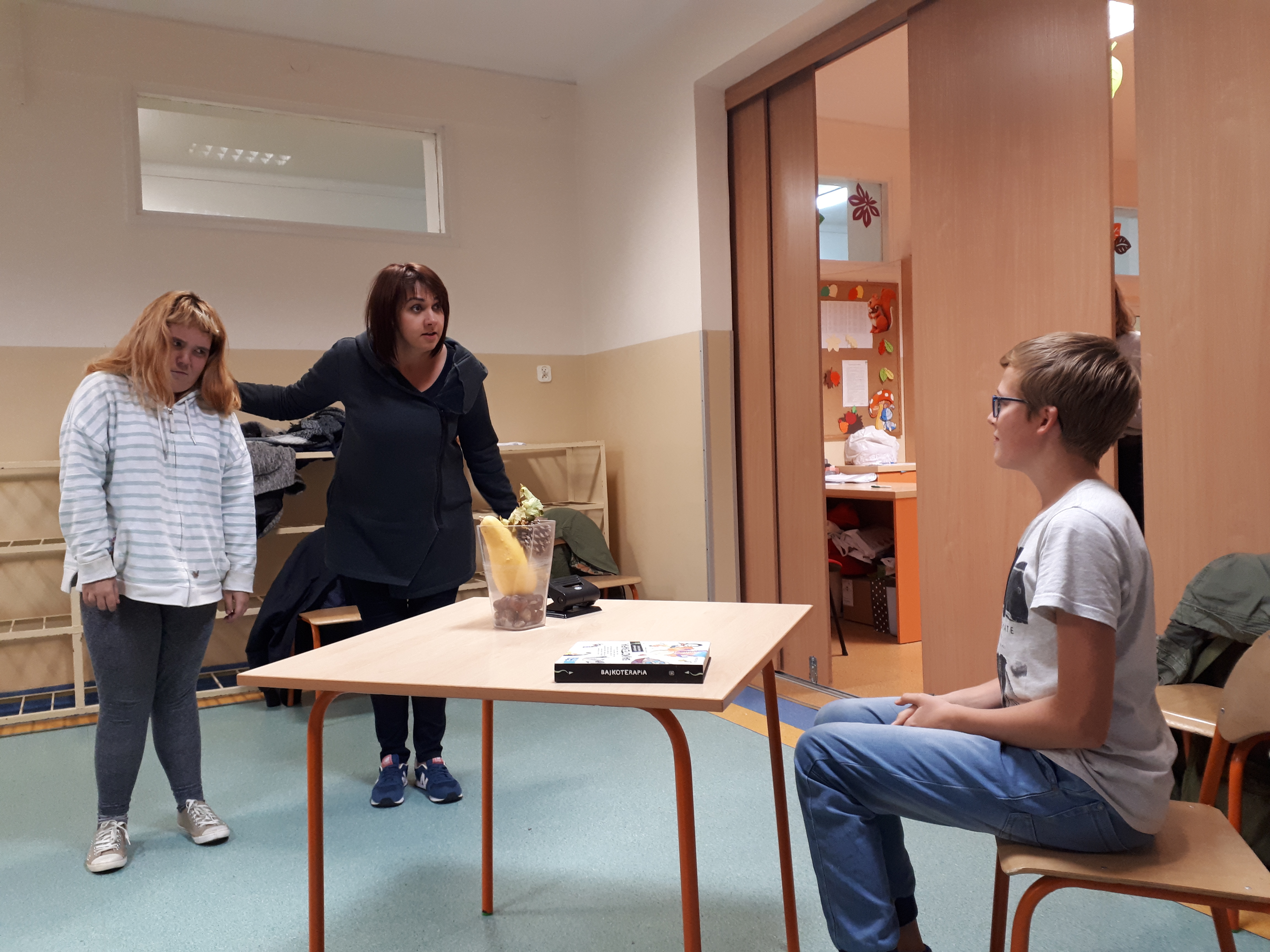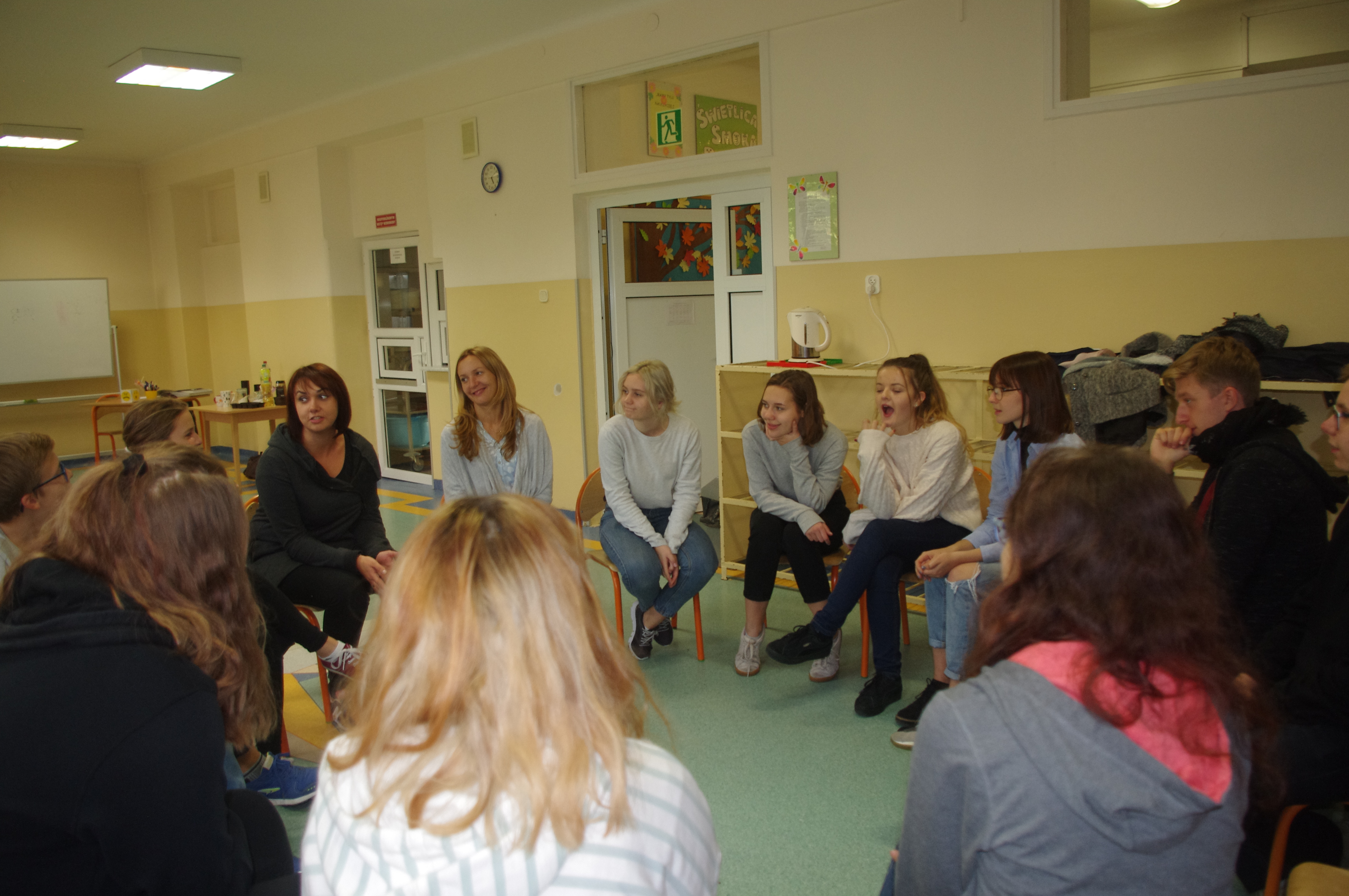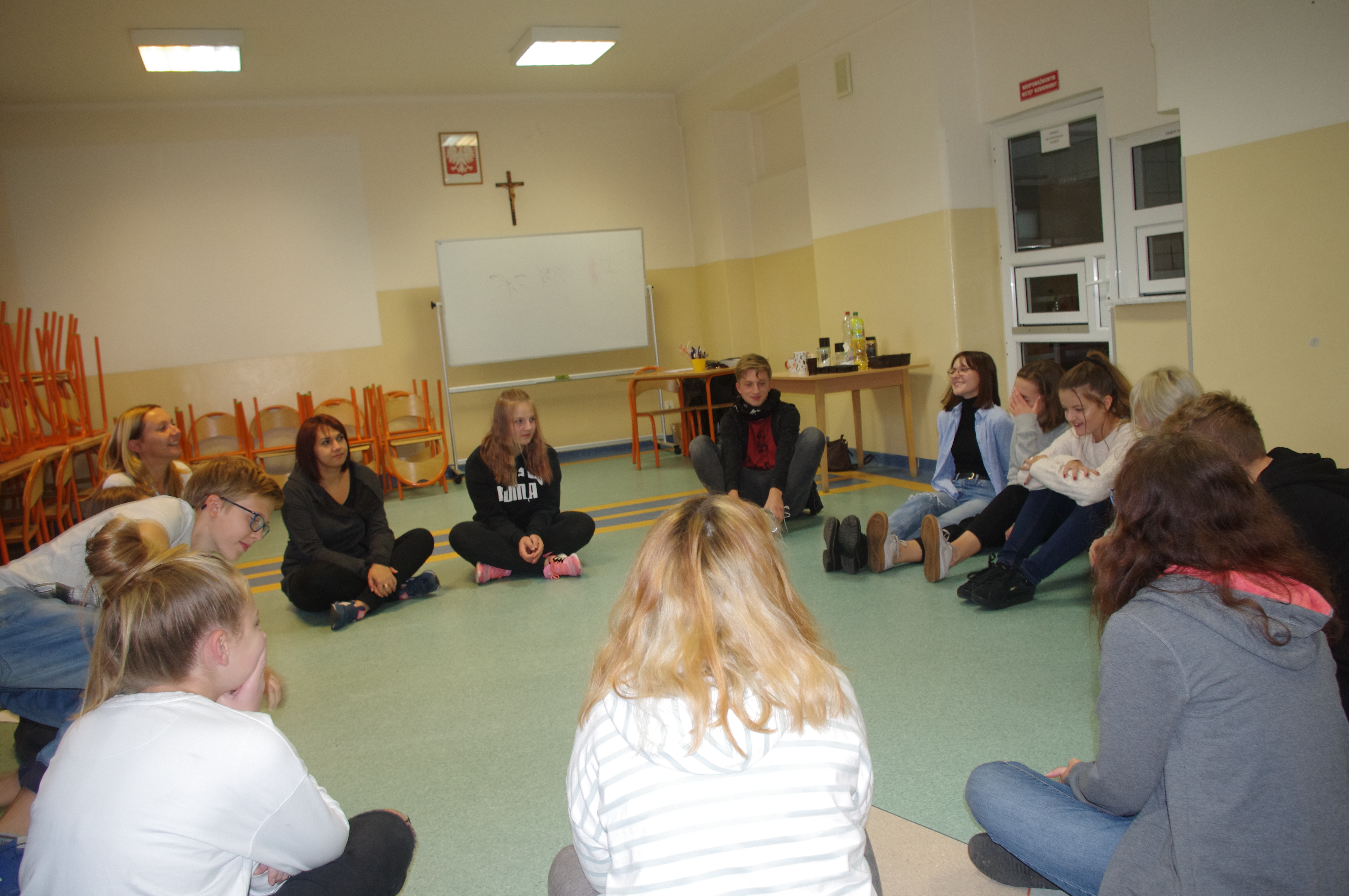 4 października uczestnicy projektu „Odczarowany Oświęcim” spotkali się po raz kolejny. Tym razem miejscem zajęć była Szkoła Podstawowa nr 9 w Oświęcimiu, celem przełamanie bariery strachu przed publicznymi występami, a metodą warsztaty teatralne.