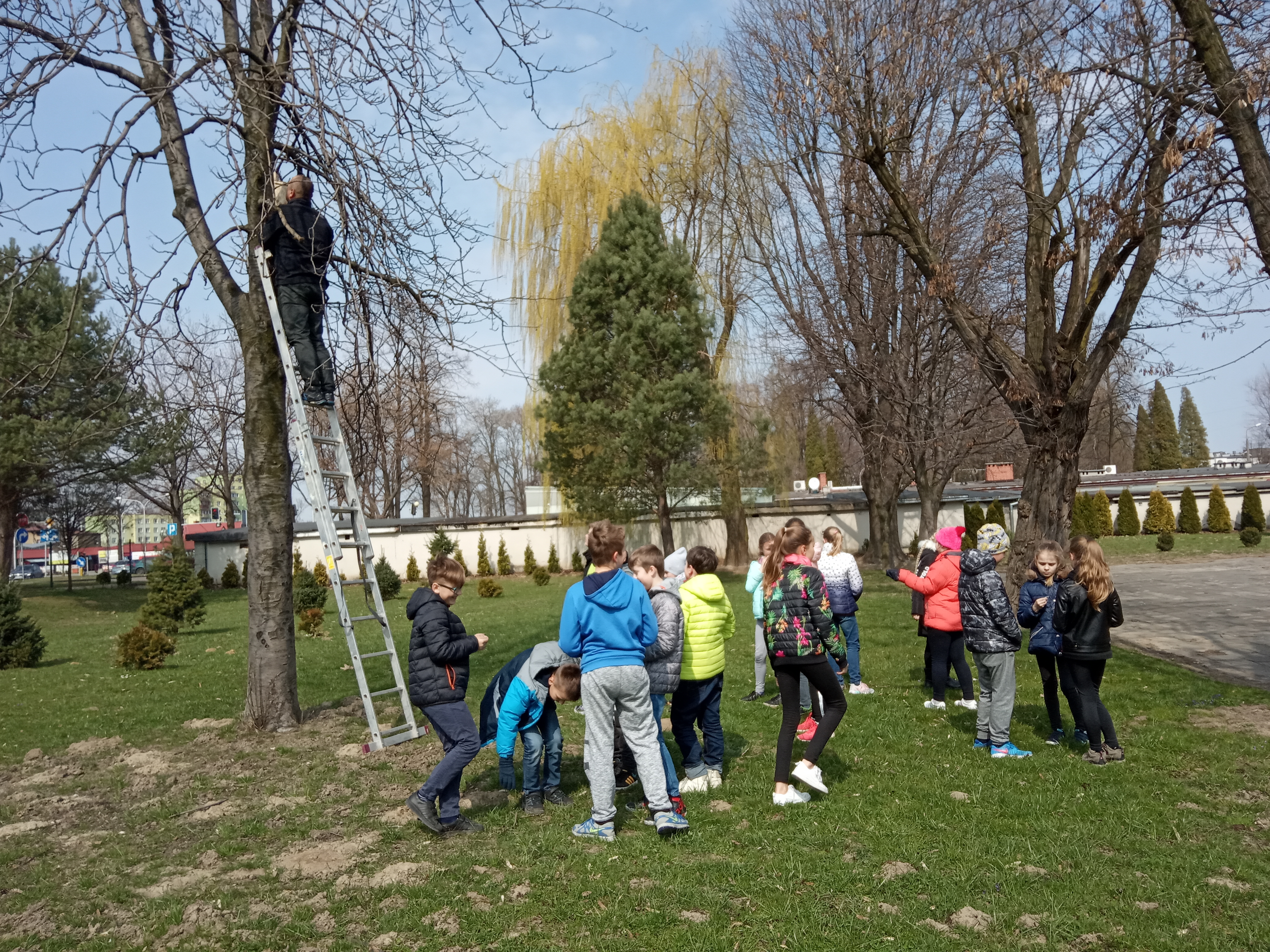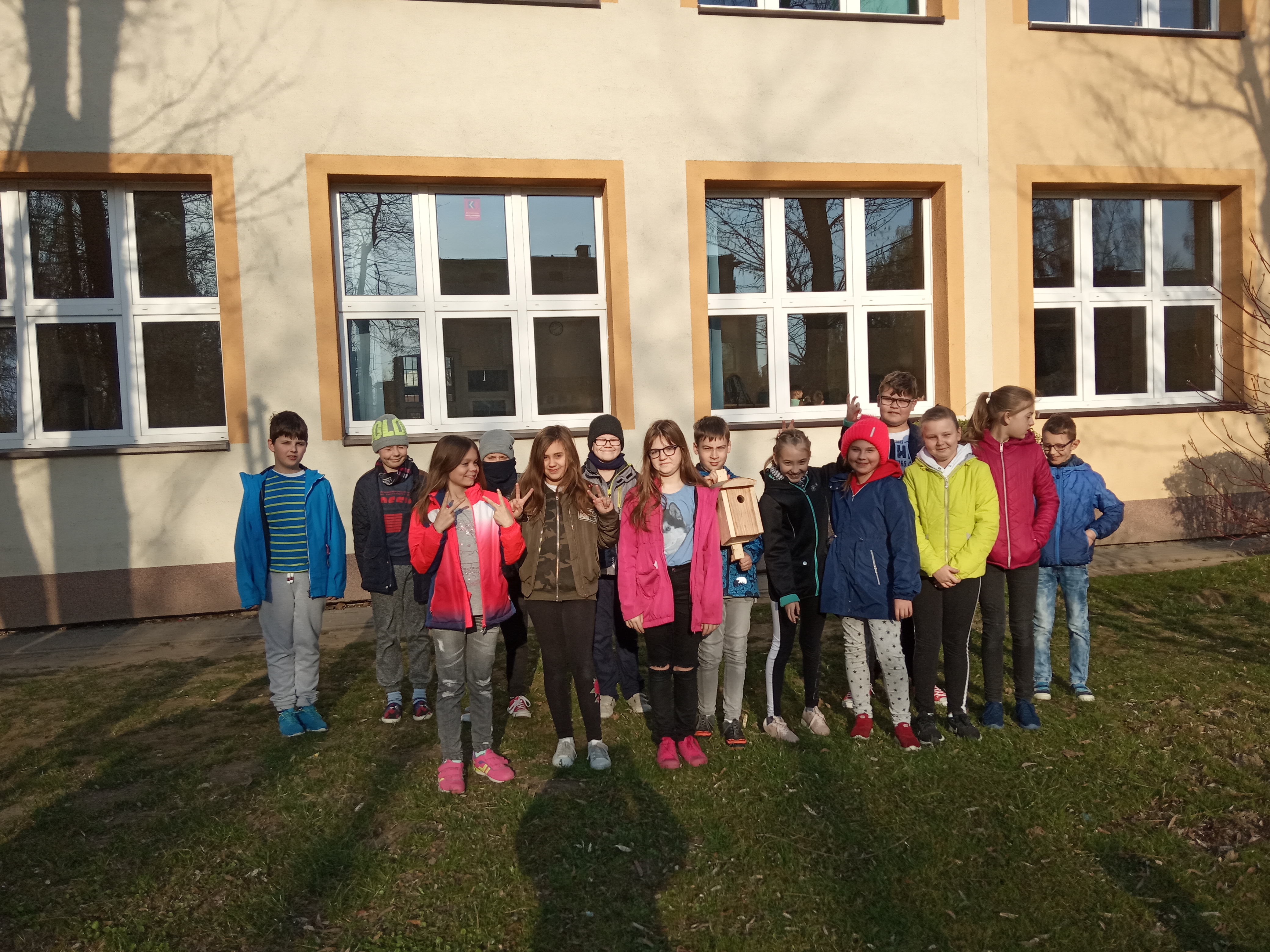 Uczniowie klas czwartych wraz z nadejściem wiosny postanowili zaopiekować się ptakami naszej okolicy. Każda z klas zwiesiła na drzewach rosnących wokół szkoły, budki lęgowe. Szkoła otrzymała je od uczniów Liceum Ogólnokształcącego im. Stanisława Konarskiego. Teraz będziemy obserwowali nasze budki z nadzieją, że zadomowiły się tam jakieś ptaki.