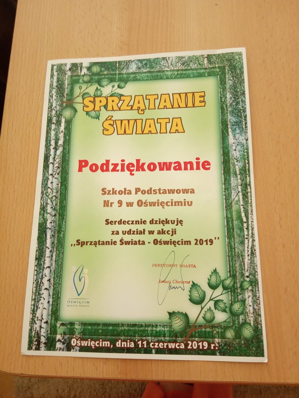 11 czerwca w Oświęcimskim Centrum Kultury, nasza szkoła otrzymała podziękowanie oraz nagrody za udział w akcji "Sprzątanie Świata 2019".
