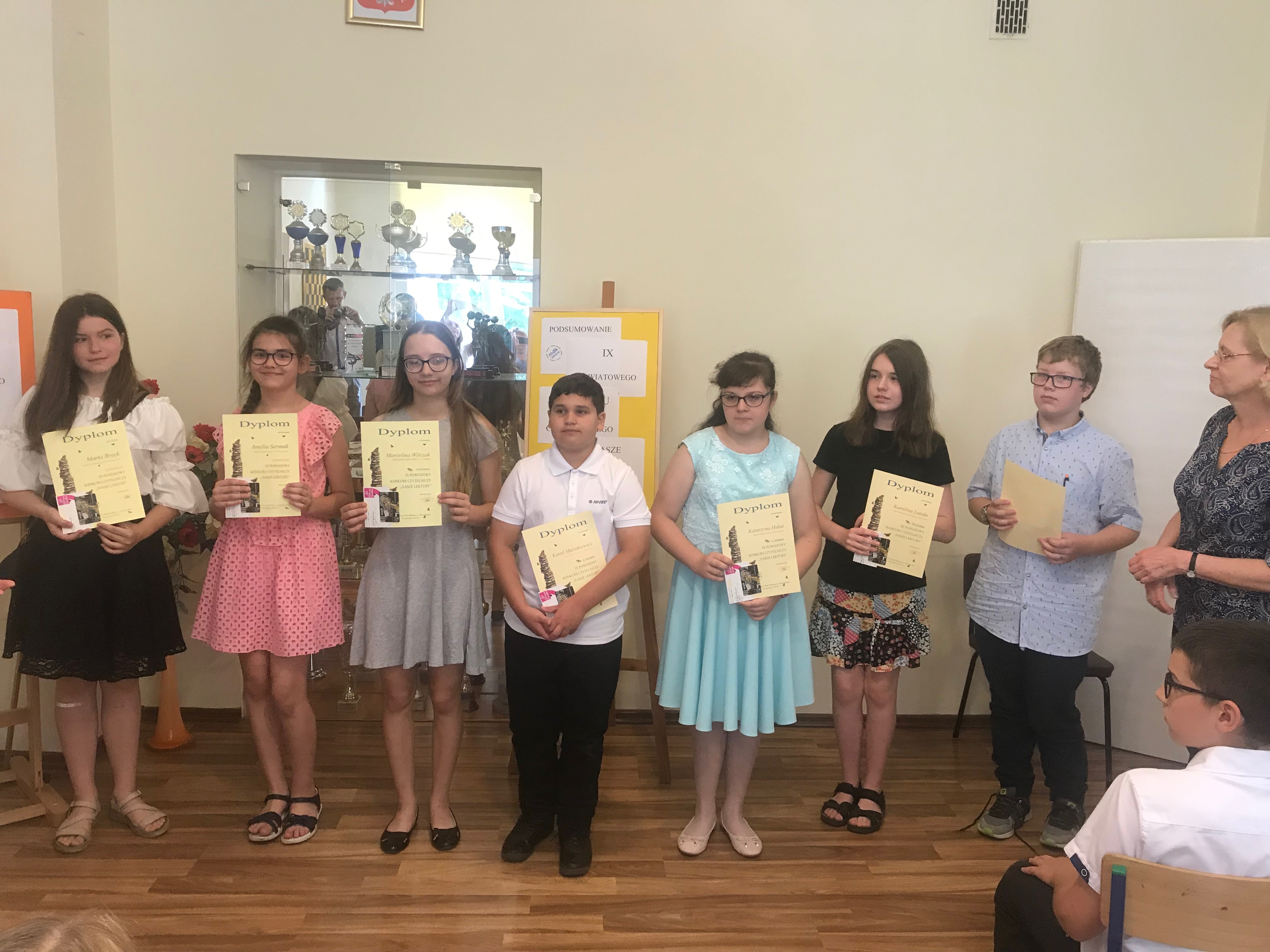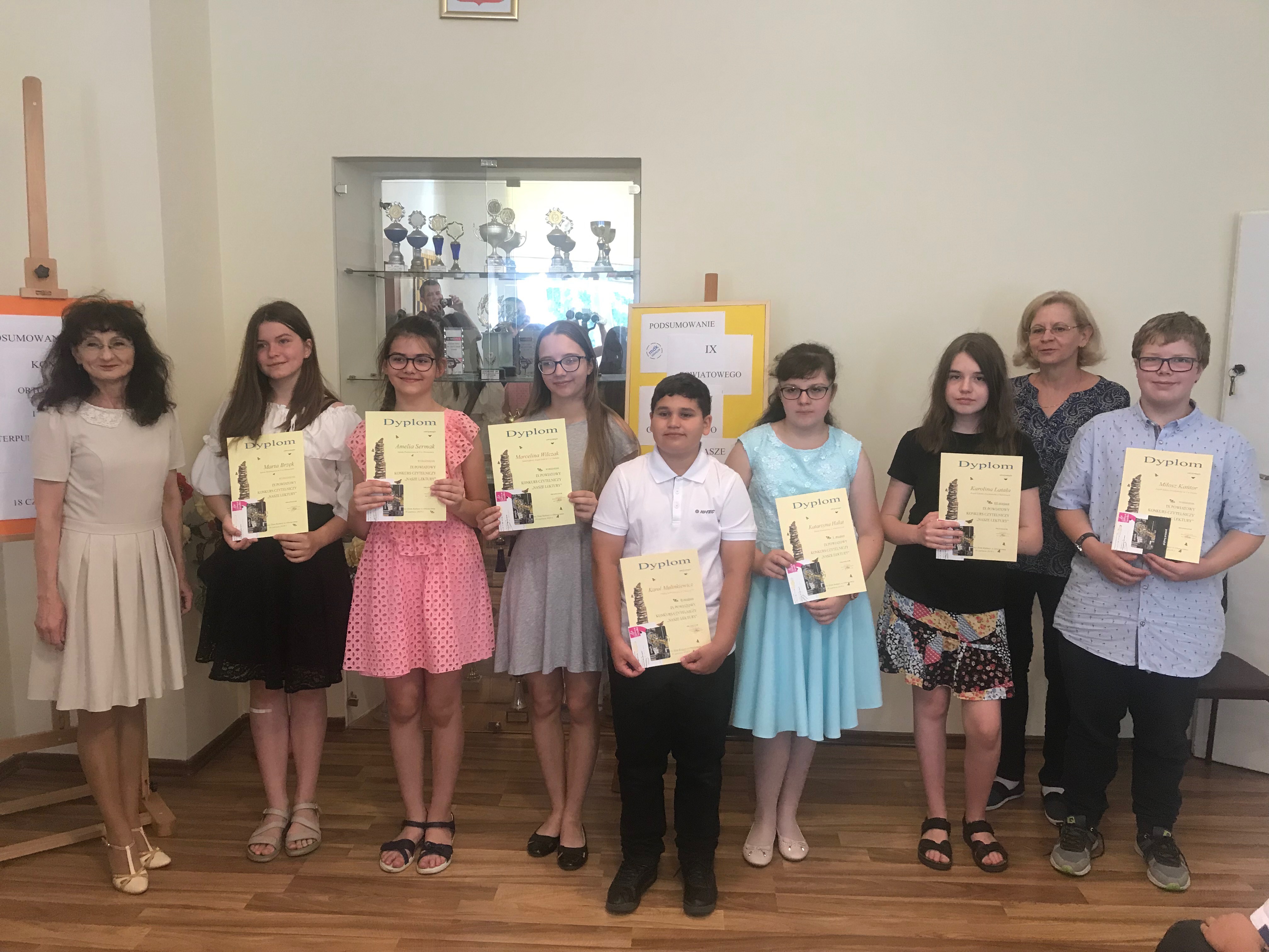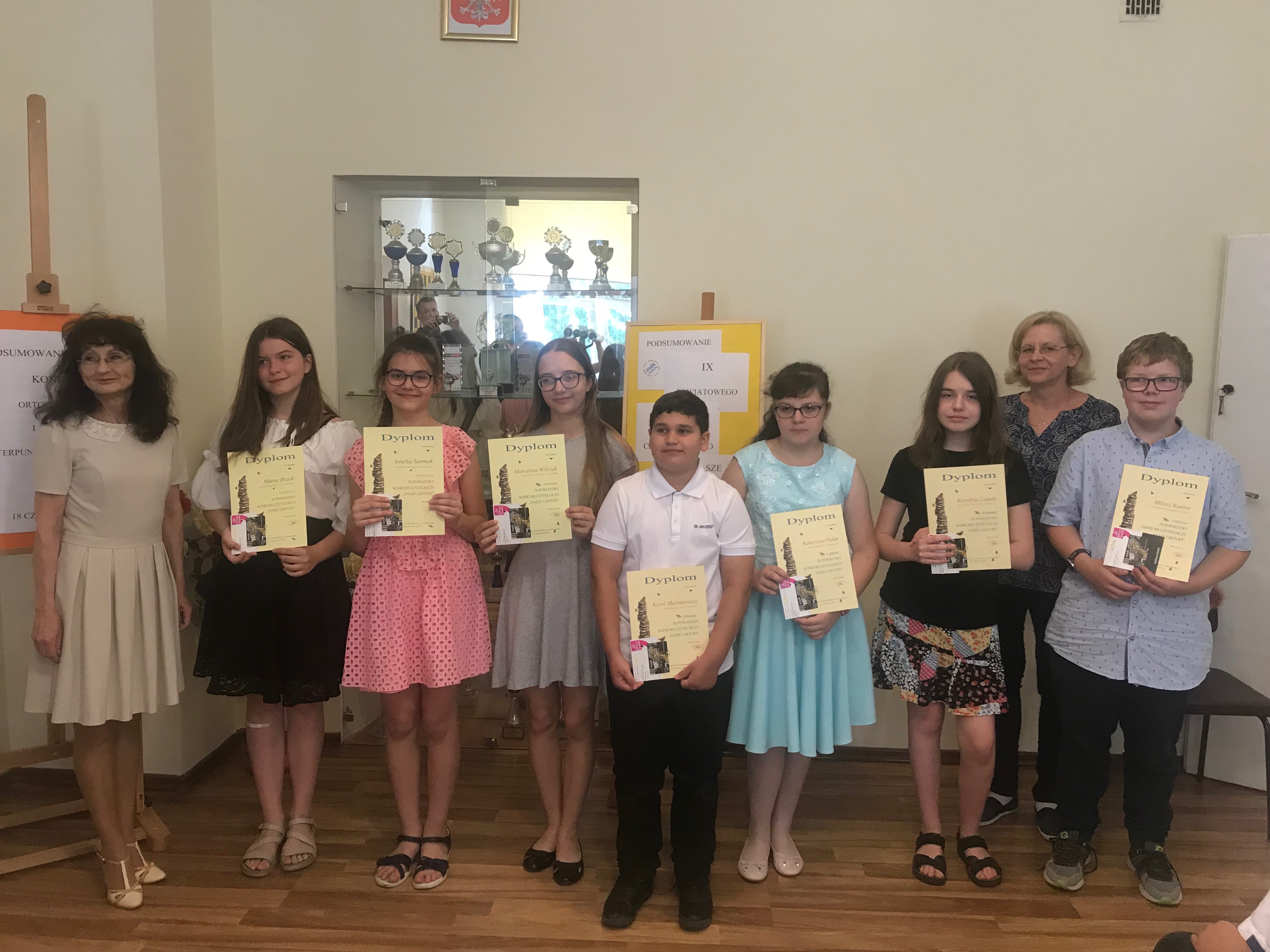 W roku szkolnym 2018/2019 uczniowie naszej szkoły wzięli udział w Powiatowym Konkursie Czytelniczym„Nasze lektury”. Podczas uroczystego zakończenia zmagań konkursowych, które odbyło się w Młodzieżowym Domu Kultury, wysokie lokaty uzyskały: