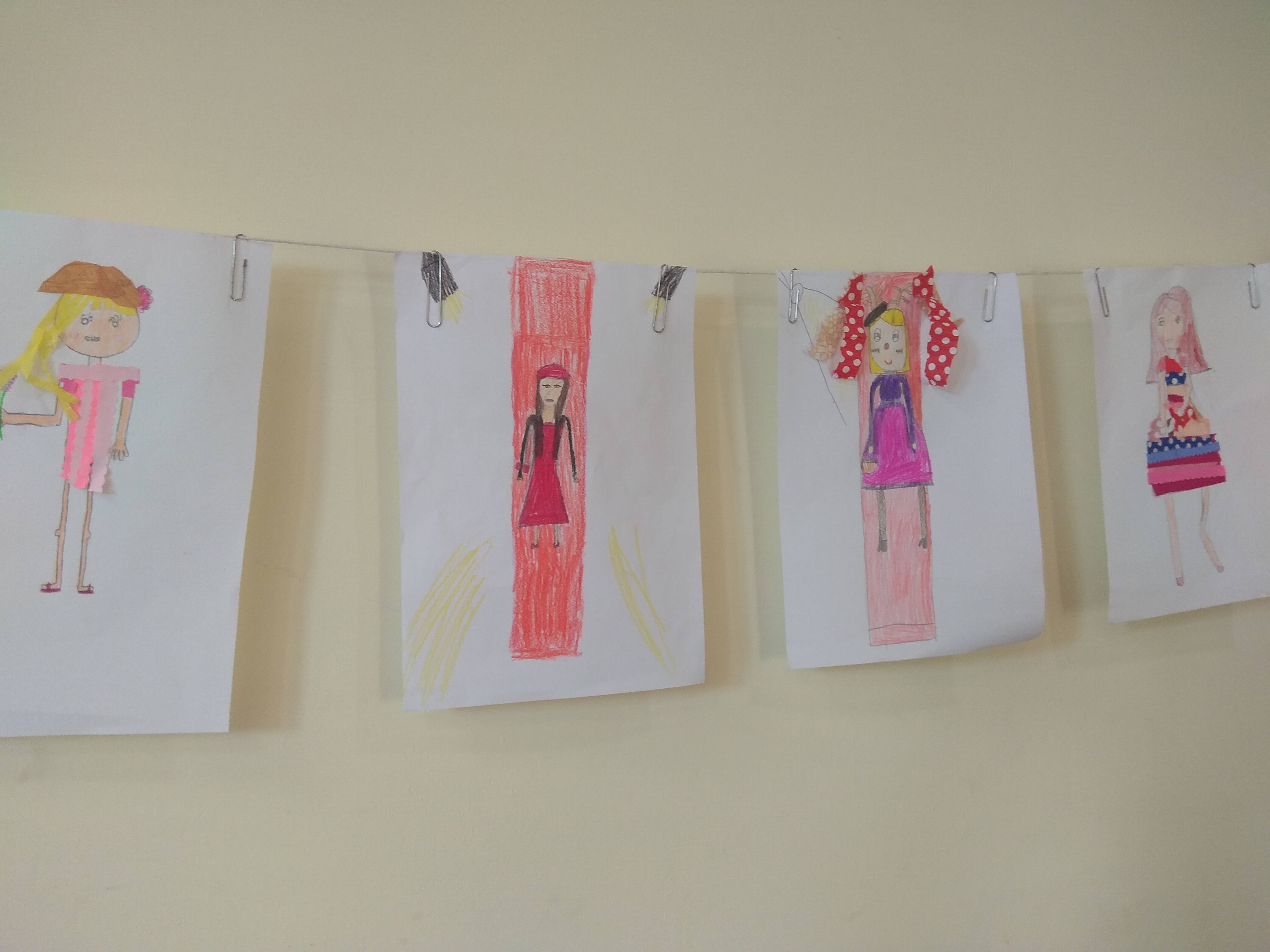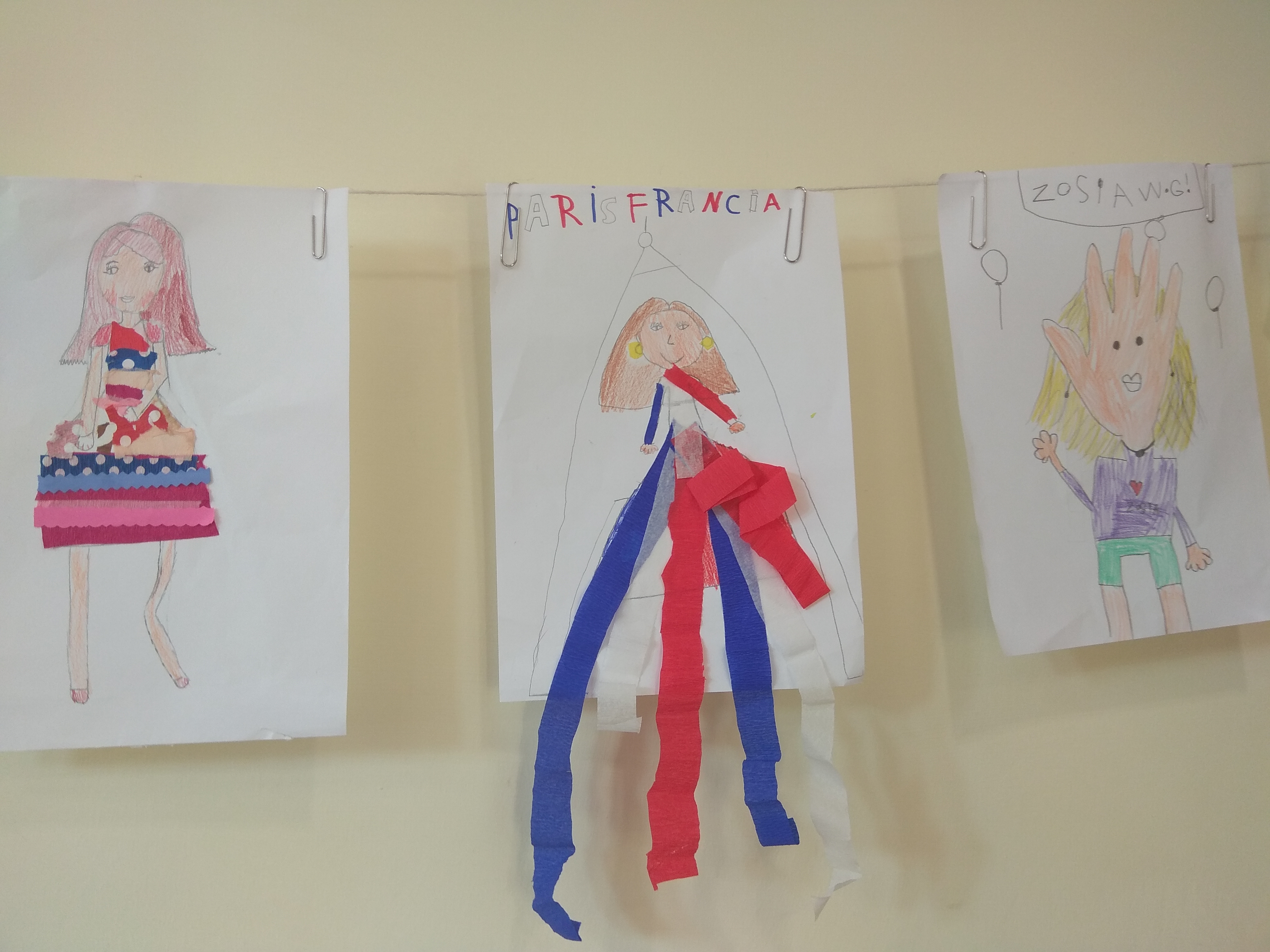 W trakcie tygodnia francuskiego realizowanego w świetlicy szkoły muzycznej dziewczynki szczególnie zafascynowały się modą francuską. Z pasją wcieliły się w rolę projektantek, tworząc fantastyczne i oryginalne kreacje mody, głównie kobiecej. Brawo za fantazję i kreatywność.