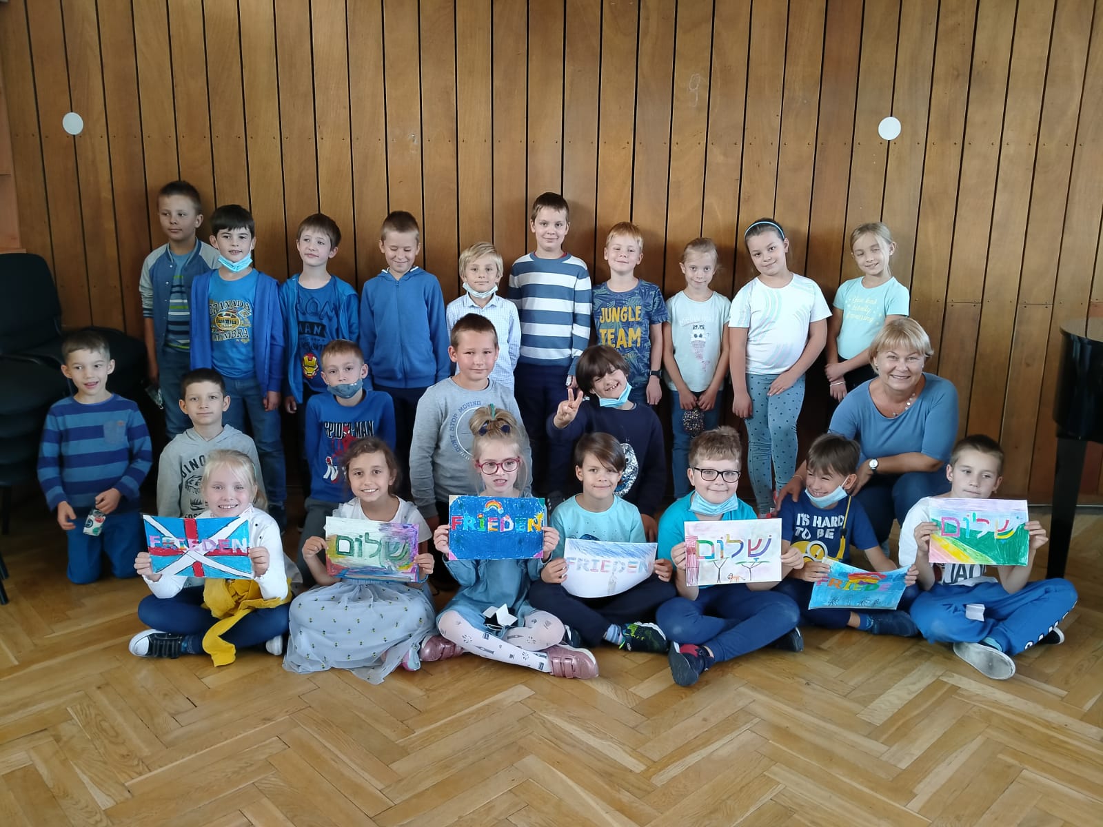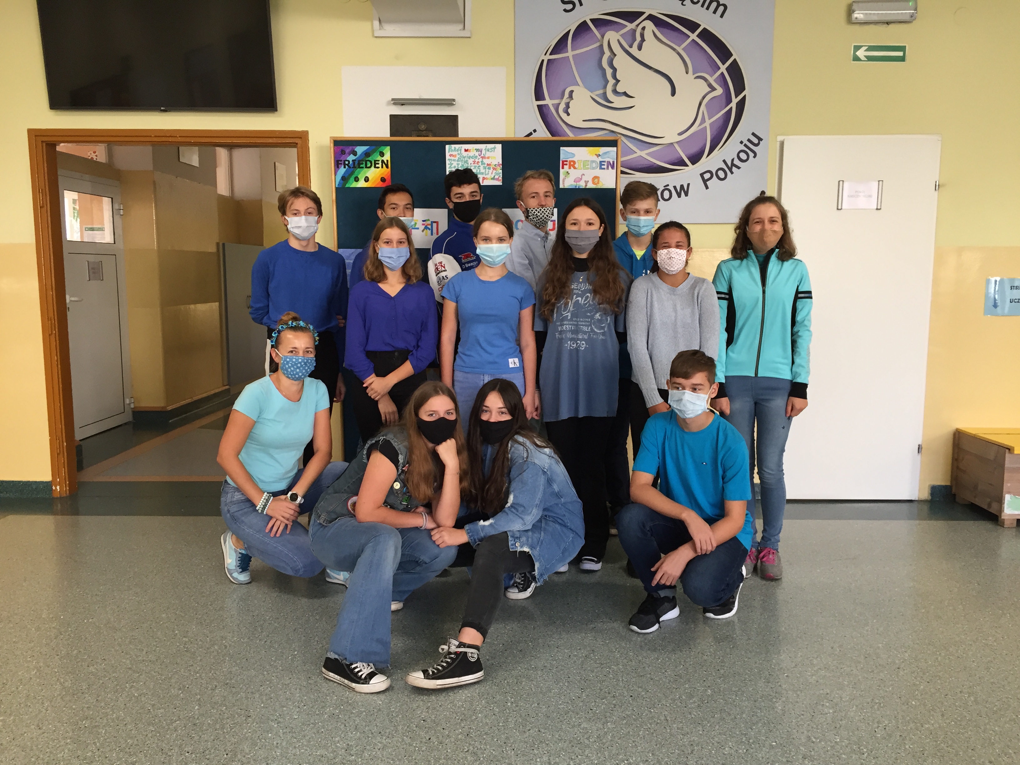Tradycyjnie w naszej szkole od kilku lat obchodzimy Międzynarodowy Dzień Pokoju. Także w tym roku 21 września – tak jak na całym świecie – chcieliśmy zwrócić uwagę społeczności szkolnej, jak ważny jest pokój! Wielu uczniów klas 4 – 8 napisało wiersze, w których podkreślało wartość pokoju i bezpieczeństwa na świecie. Wielokrotnie padało pytanie, dlaczego okrucieństwo wojny się powtarza, a ludzkość nie uczy się na błędach przeszłości. Klasy młodsze wykonały piękne i kolorowe prace plastyczne z hasłem „Pokój” w wielu językach. Bardzo dziękujemy tym, którzy zaangażowali się w organizację tego dnia oraz tym, którzy uczcili go, ubierając się na niebiesko. Kolor ten jest kolorem przewodnim sztandaru naszej szkoły, która nosi imię Orędowników Pokoju.