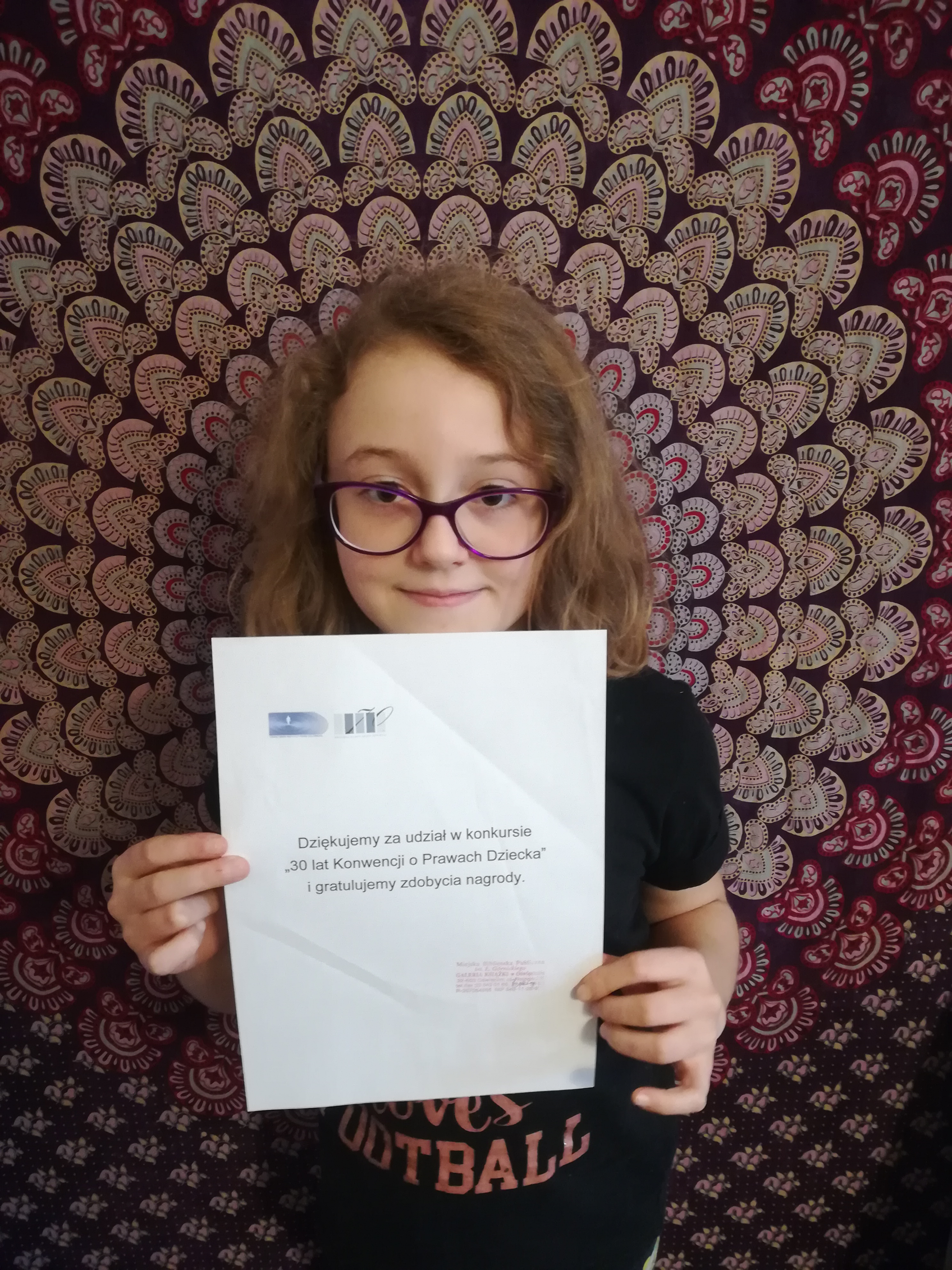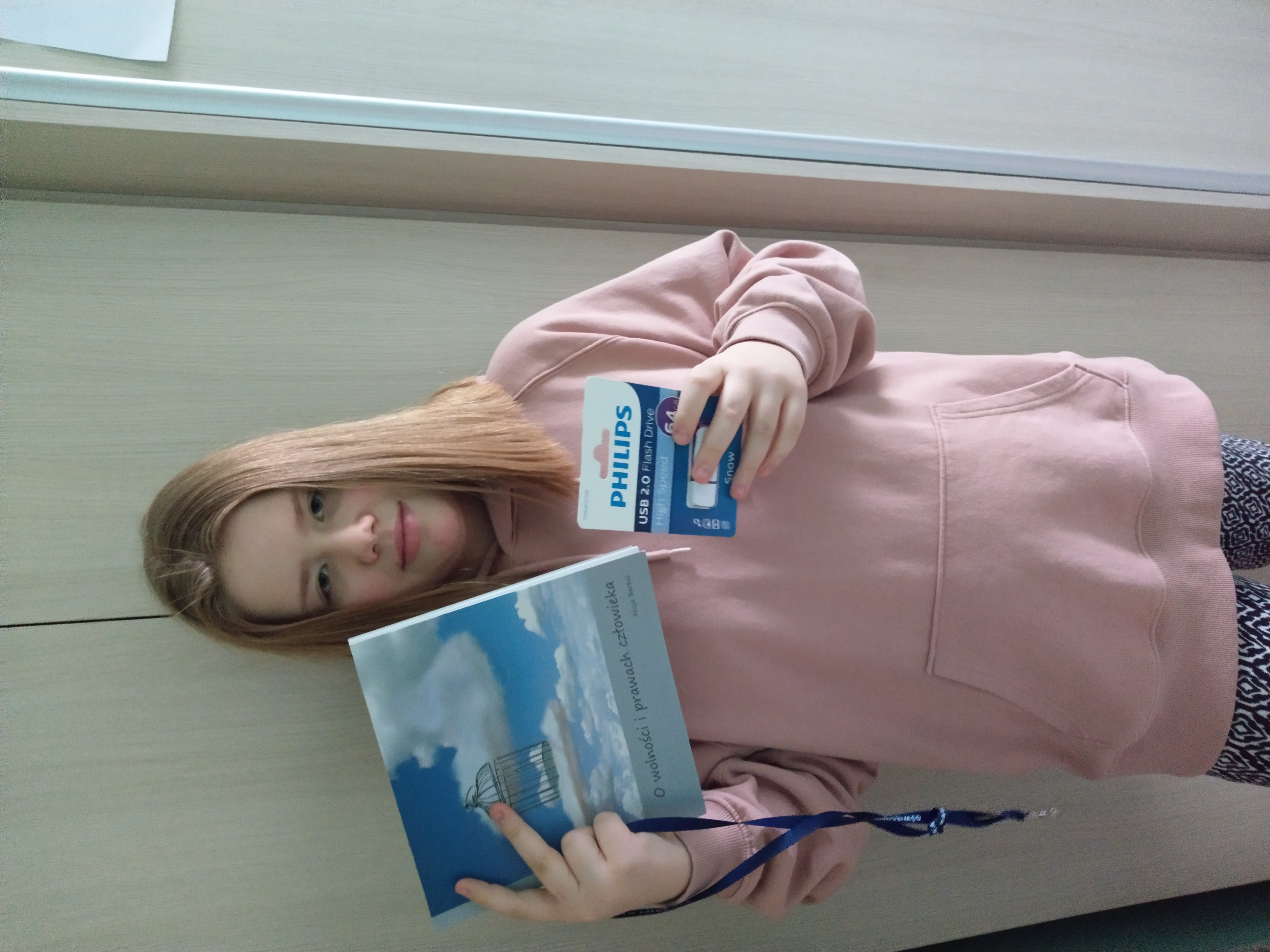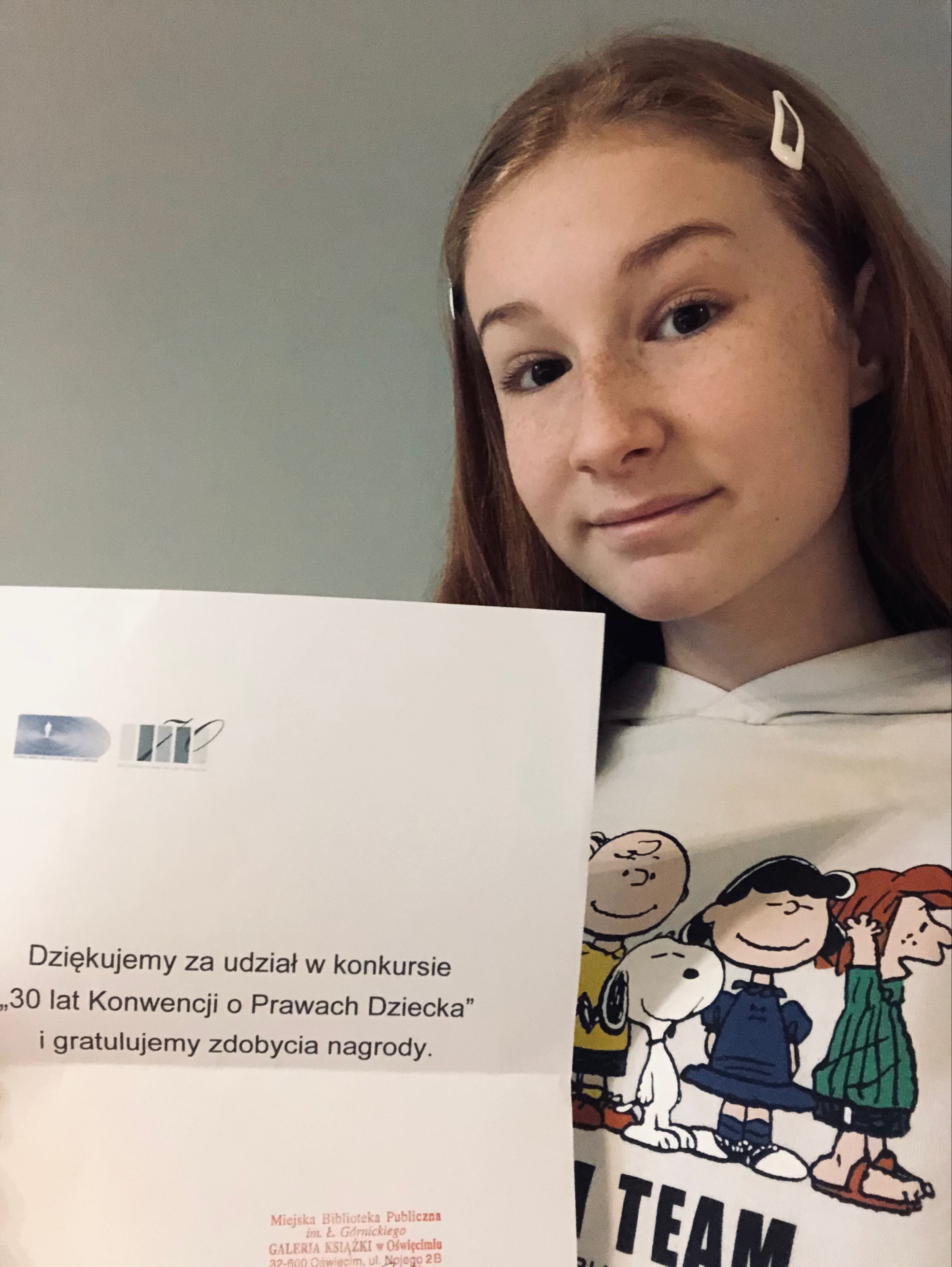 W konkursach towarzyszących projektowi „Wokół praw dziecka” wzięły udział uczennice z naszej szkoły: Pola Kwiatkowska z 4a, Julia Kamińska z 7a, Julia Bałys 7B oraz Marta Kocimska z 8a. Dziękujemy za fajne pomysły na odpowiedzi na pytania konkursowe. Gratulujemy wygranej. Cały opis projektu znajduje się na stronie Oświęcimskiego Instytutu Praw Człowieka.