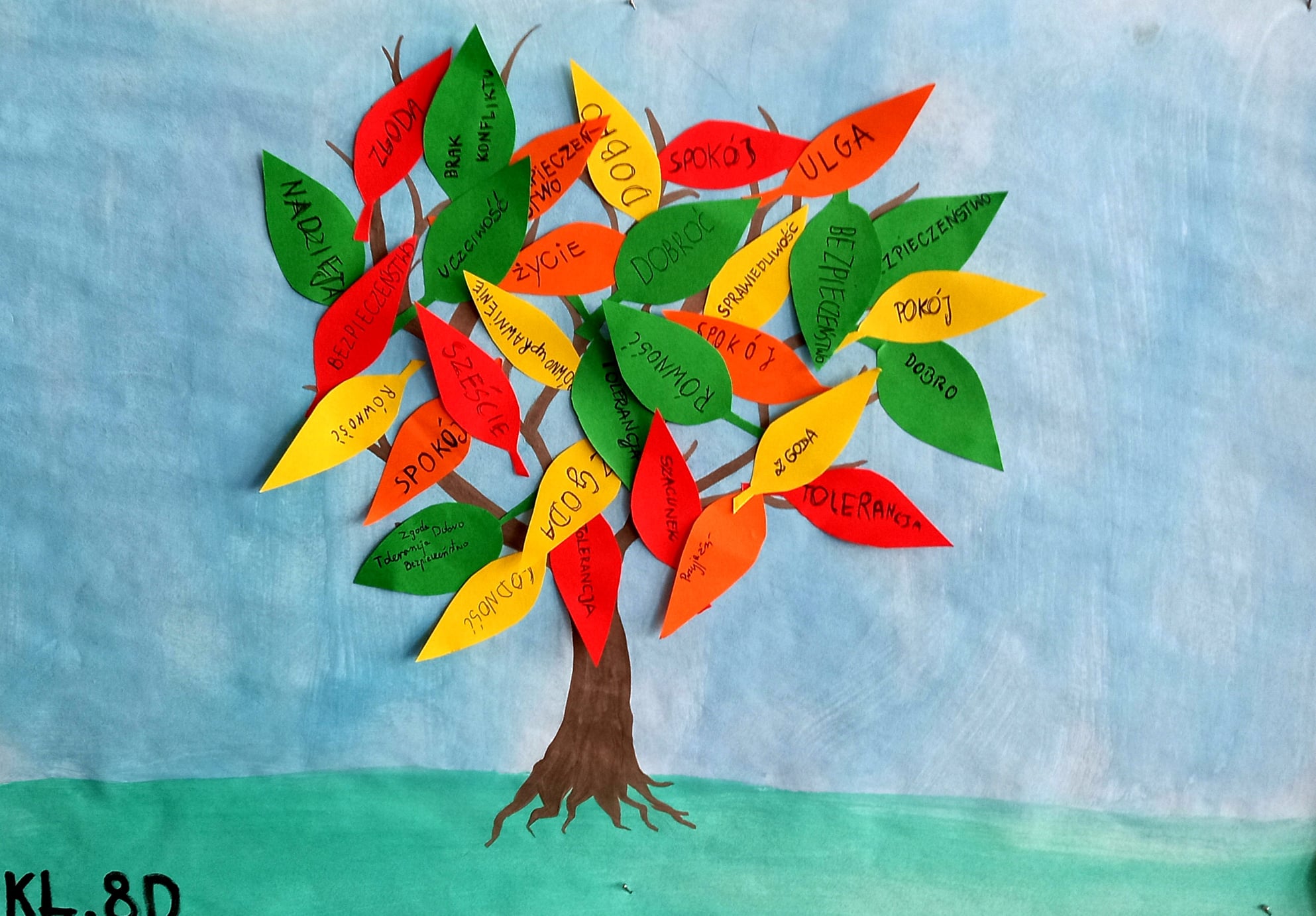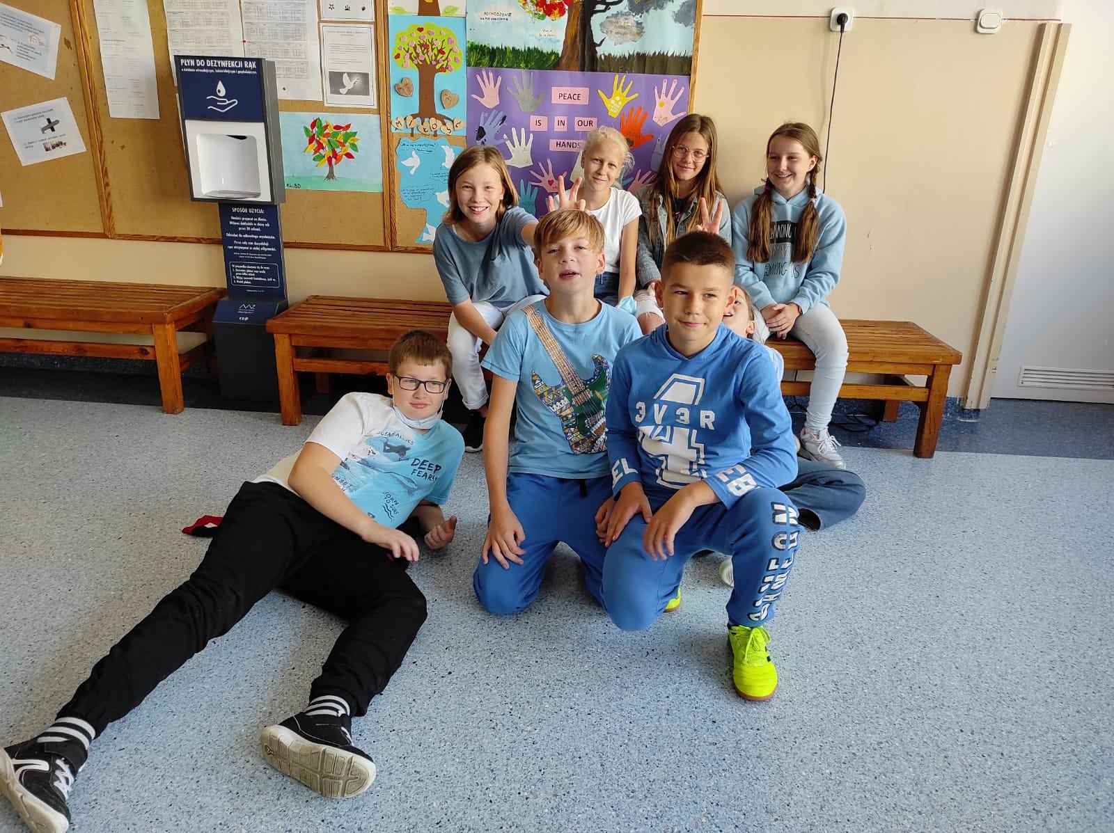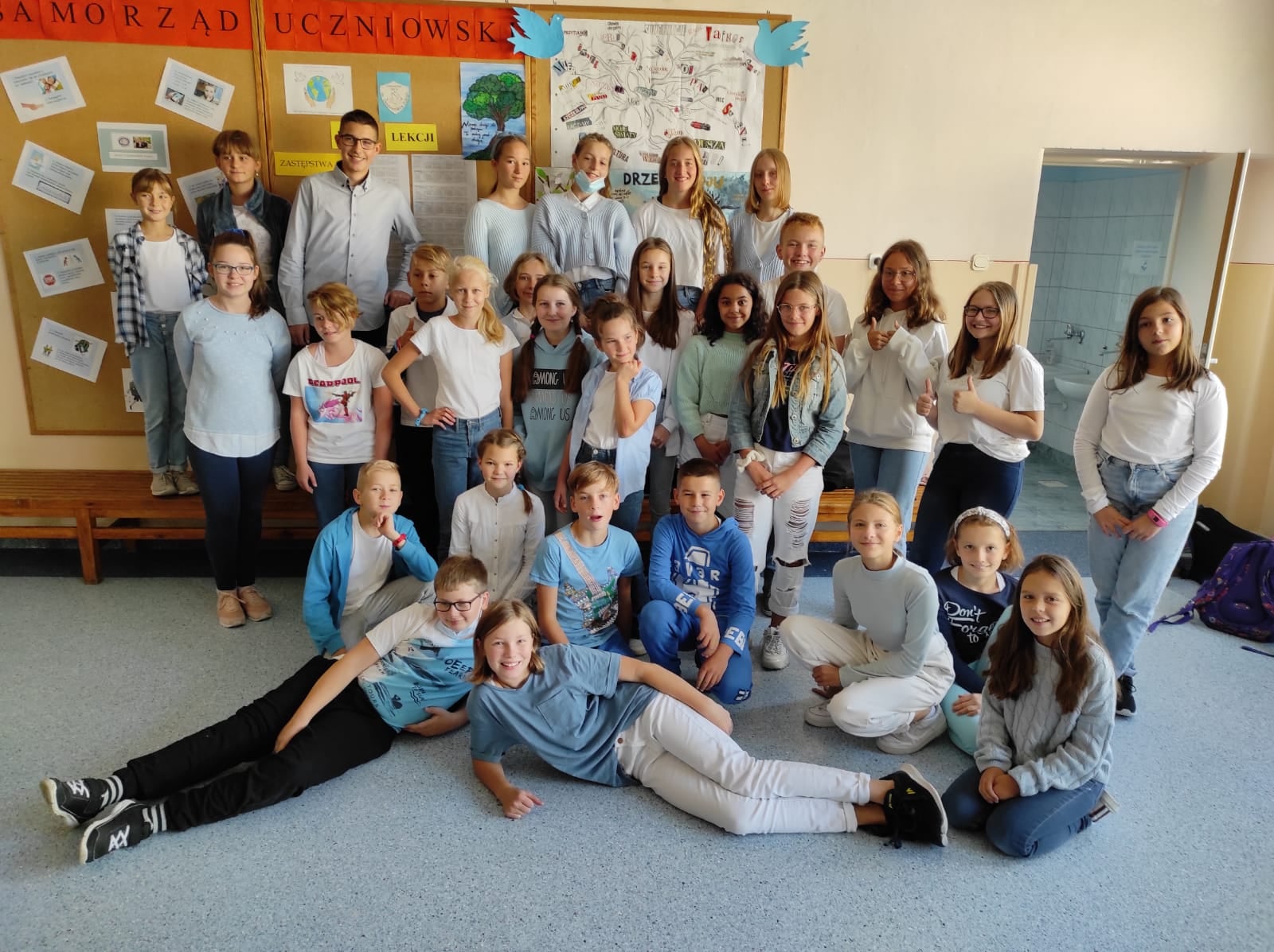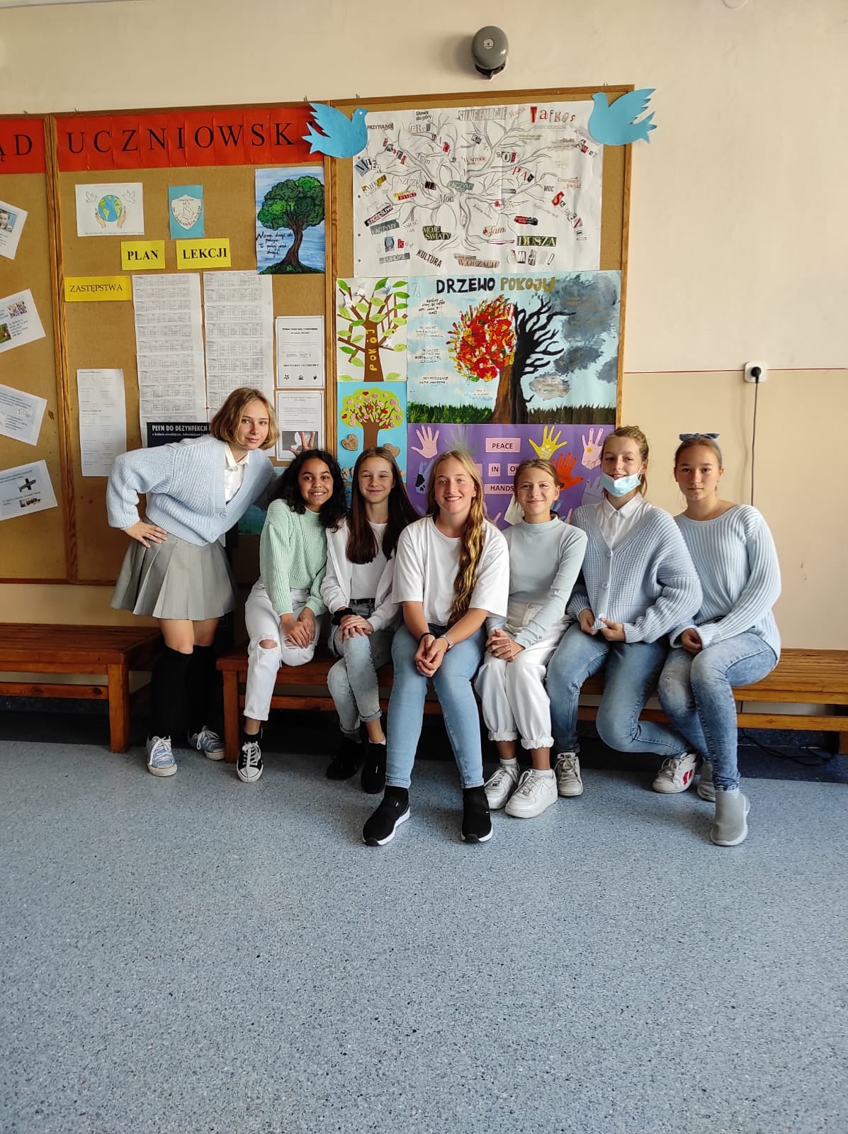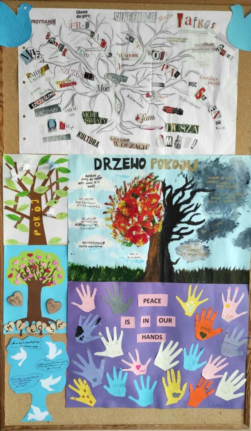 21 września obchodzony jest Międzynarodowy Dzień Pokoju. W naszej szkole również postanowiliśmy zaakcentować takie święto ubierając się na biało-niebiesko. Dodatkowo każda klasa wykonała tzw. Drzewo Pokoju z przesłaniami do dzieci, młodzieży i dorosłych odnośnie pokoju na świecie. Mamy nadzieję, że taka akcja pomoże nam na dłużej pamiętać o tym, jak ważny i potrzebny jest pokój na świecie. Być może, nie jesteśmy w stanie zbyt wiele zrobić, by na całym świecie panował pokój, jesteśmy jednak myślami z naszymi rówieśnikami cierpiącymi z powodu konfliktów wojennych w wielu krajach. Jest jednak coś, co możemy robić tu i teraz- możemy wszyscy starać się, by w naszym najbliższym otoczeniu panowała dobra atmosfera, byśmy byli dla siebie życzliwi, pomocni i byśmy żyli w zgodzie i harmonii.