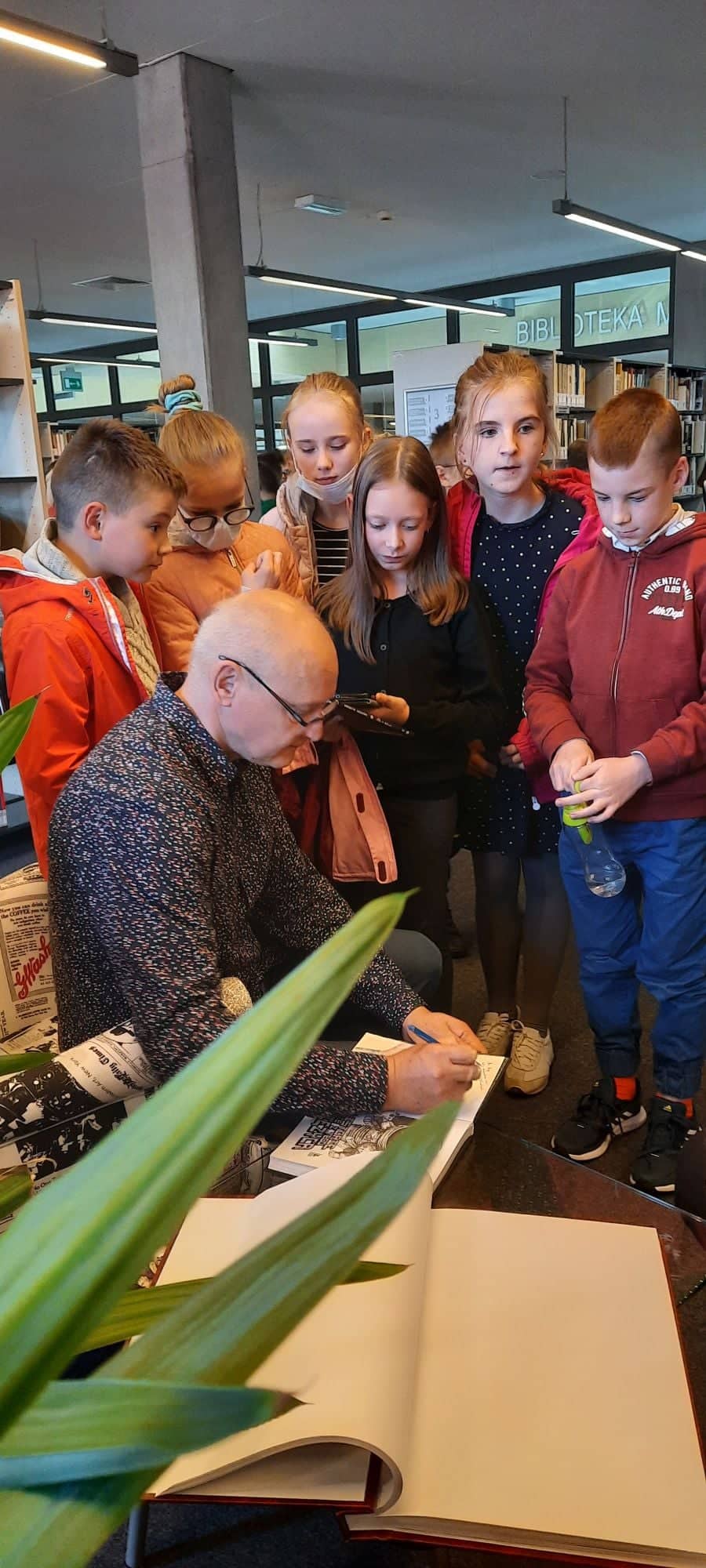 Dnia 8 października uczniowie klasy 4a i 5a uczestniczyli w gali wręczenia nagród laureatom 28. Ogólnopolskiej Nagrody Literackiej im. Kornela Makuszyńskiego. Nagrodę główną otrzymał Jan Bliźniak za książkę „Śrubek i tajemnice Maszynerii”. Po zakończeniu uroczystości młodzi czytelnicy udali się na spotkanie autorskie z panem Krzysztofem Kochańskim. Pisarz opowiadał o swojej najnowszej książce pt. „Selfie ze stolemem”. Dzieci zaskakiwały pytaniami a pan Krzysztof na wszystkie cierpliwie odpowiadał. Pod koniec był czas na pamiątkowe zdjęcia i autografy. Dziękujemy za miło spędzony czas w MBP.