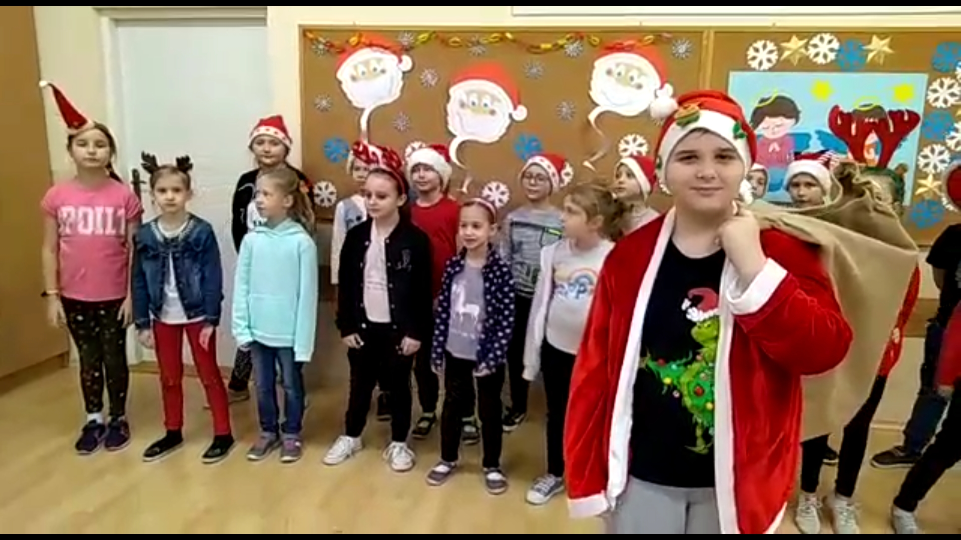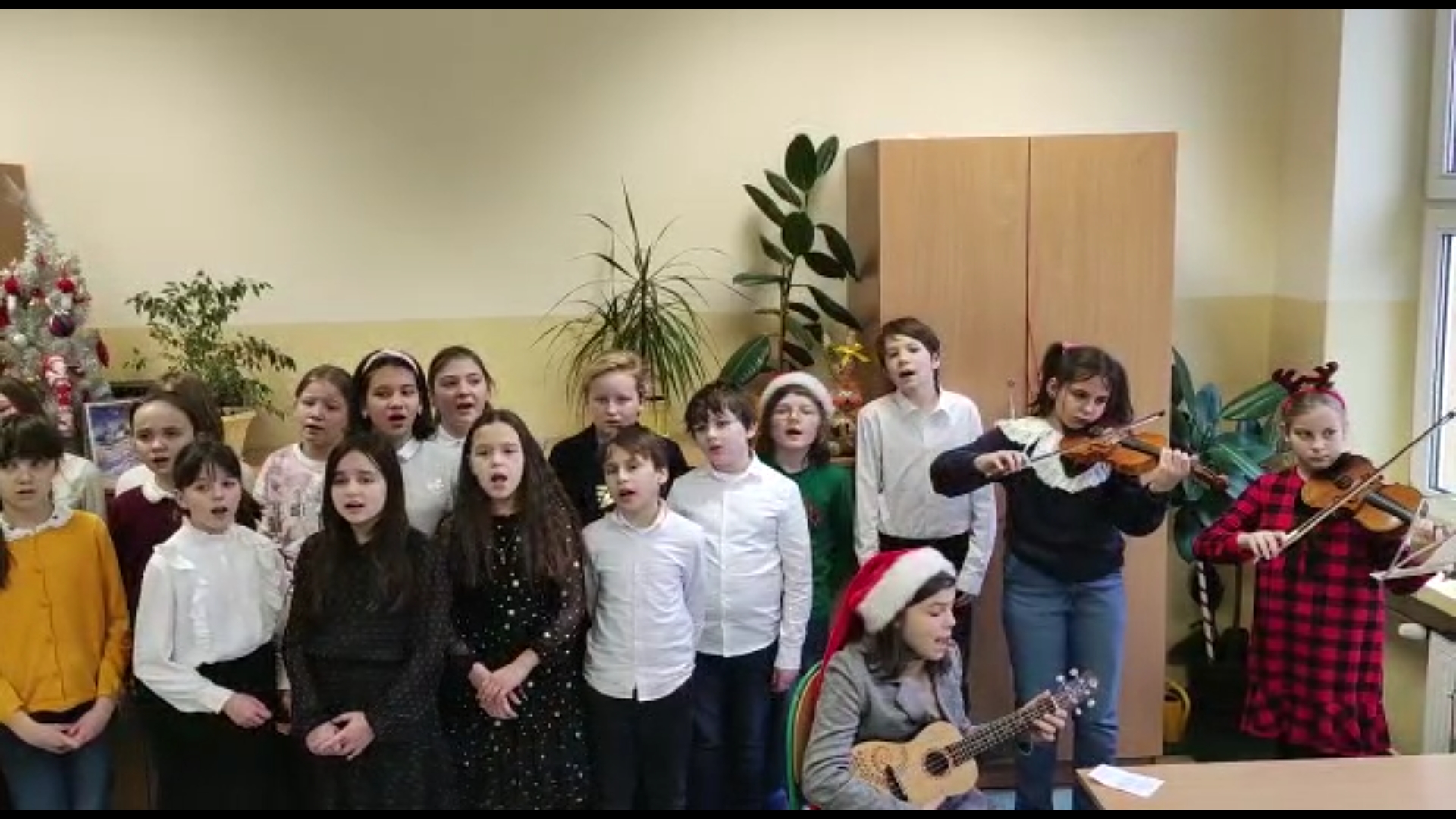 Początkiem grudnia w naszej szkole został ogłoszony konkurs piosenki świątecznej, do udziału w którym zaprosiliśmy wszystkie klasy. Przez kolejne tygodnie uczniowie pracowicie się do niego przygotowywali szlifując swoje umiejętności wokalne oraz atrakcyjne wykonanie utworu. Ostatecznie w walce o wygraną wzięło udział 13 klas. Repertuar był dość szeroki, wykonania nie powtarzały się, kilka klas zdecydowało się na wykonanie utworu w języku angielskim. Każda klasa nagrała swój występ i przesłała do jury, w którego skład wchodziły następujące osoby: Wicedyrektor pani Dagmara Koczur, nauczyciel muzyki pani Joanna Knurowska, wychowawcy świetlicy pani Anna Jarnot, pani Ewa Jaskółka i pani Martyna Michałek. Komisja wyłoniła zwycięzców w trzech kategoriach: klasy I-III, klasy IV-VI, klasy VII- VIII. Ocenie podlegały następujące elementy: umiejętności wokalne, atrybuty wykorzystane podczas nagrania, zgodność z tematyką oraz odśpiewanie utworu z pamięci. Komisja po odsłuchaniu wszystkich nagrań i długich naradach dokonała wyboru. Wśród najmłodszych zwycięzcami została klasa II A z piosenką „Ding dong”, w kategorii klas IV-VI - klasa V B z kolędą „Pójdźmy wszyscy do stajenki” a zwycięzcami w najstarszych klasach została 7 C w wykonaniu kolędy „Przybieżeli do Betlejem pasterze”. Zwycięzcom serdecznie gratulujemy!