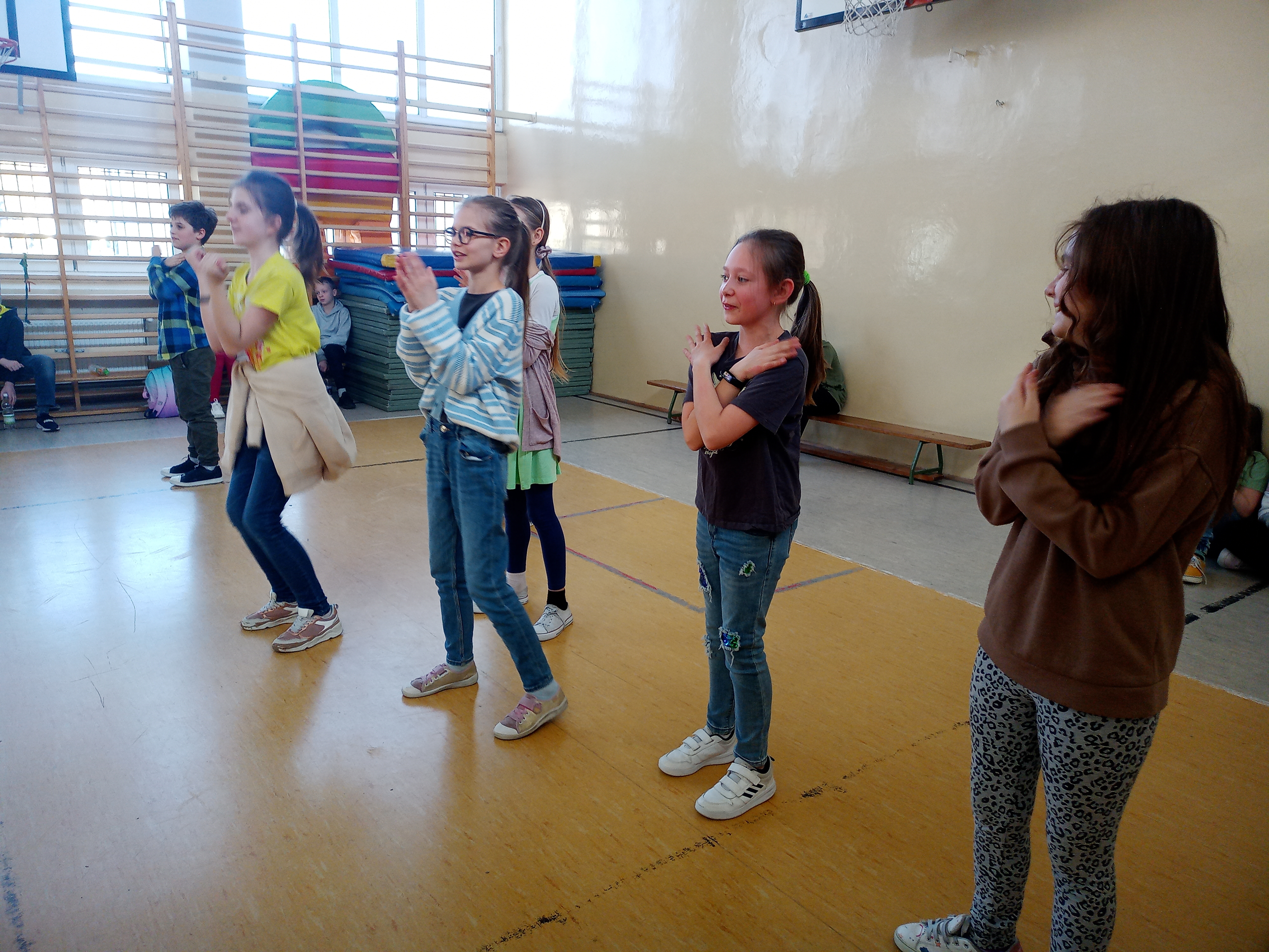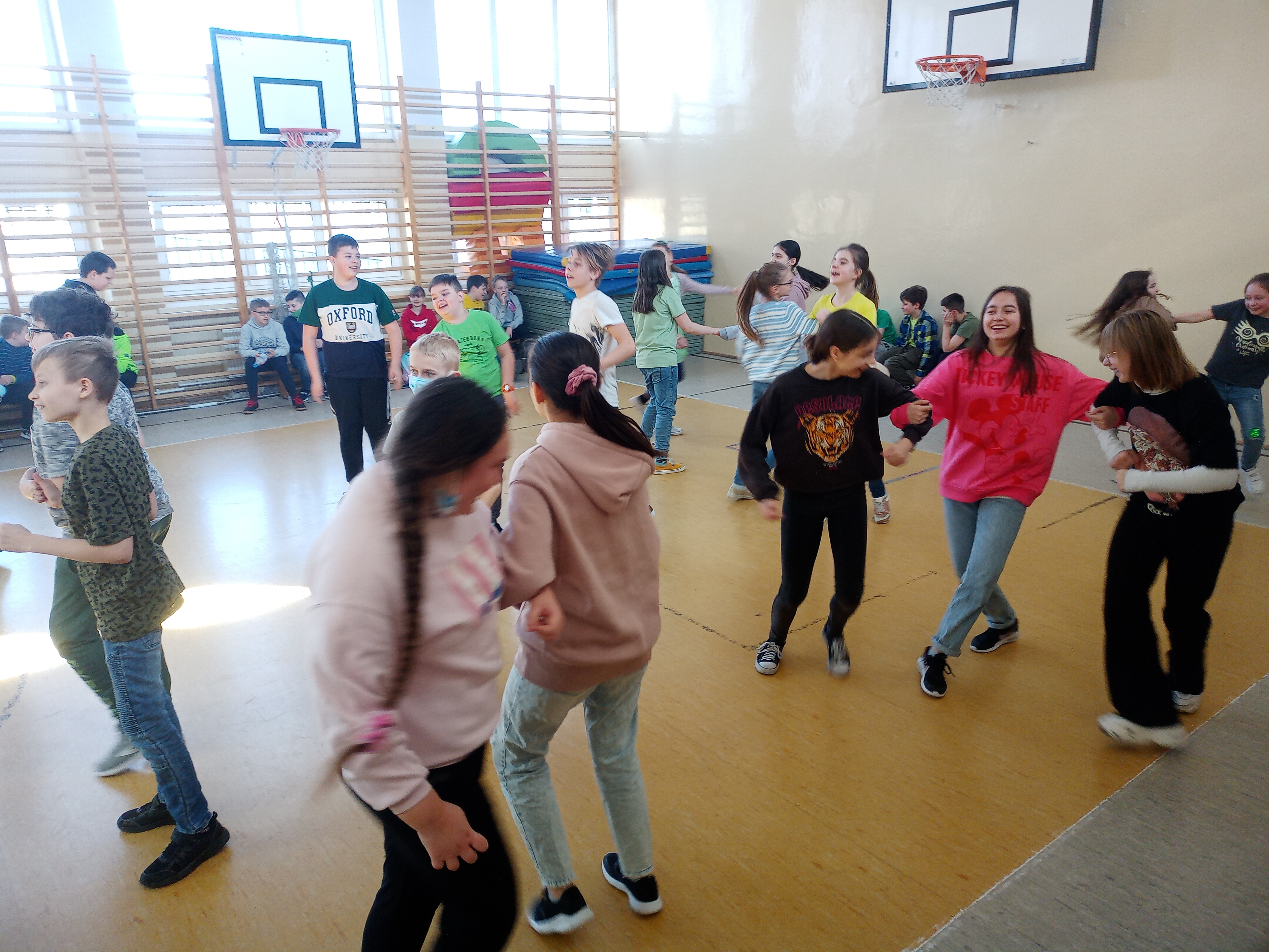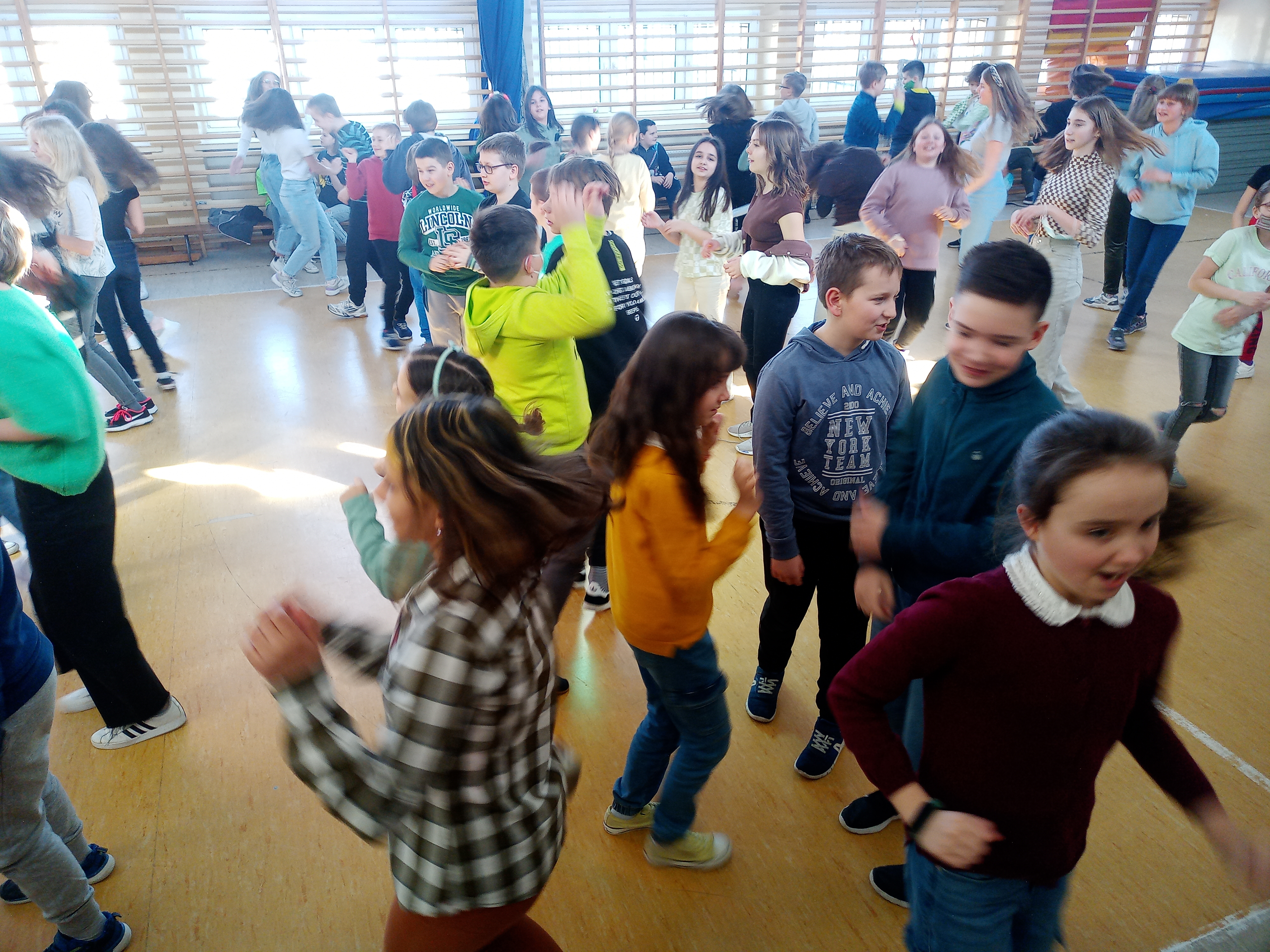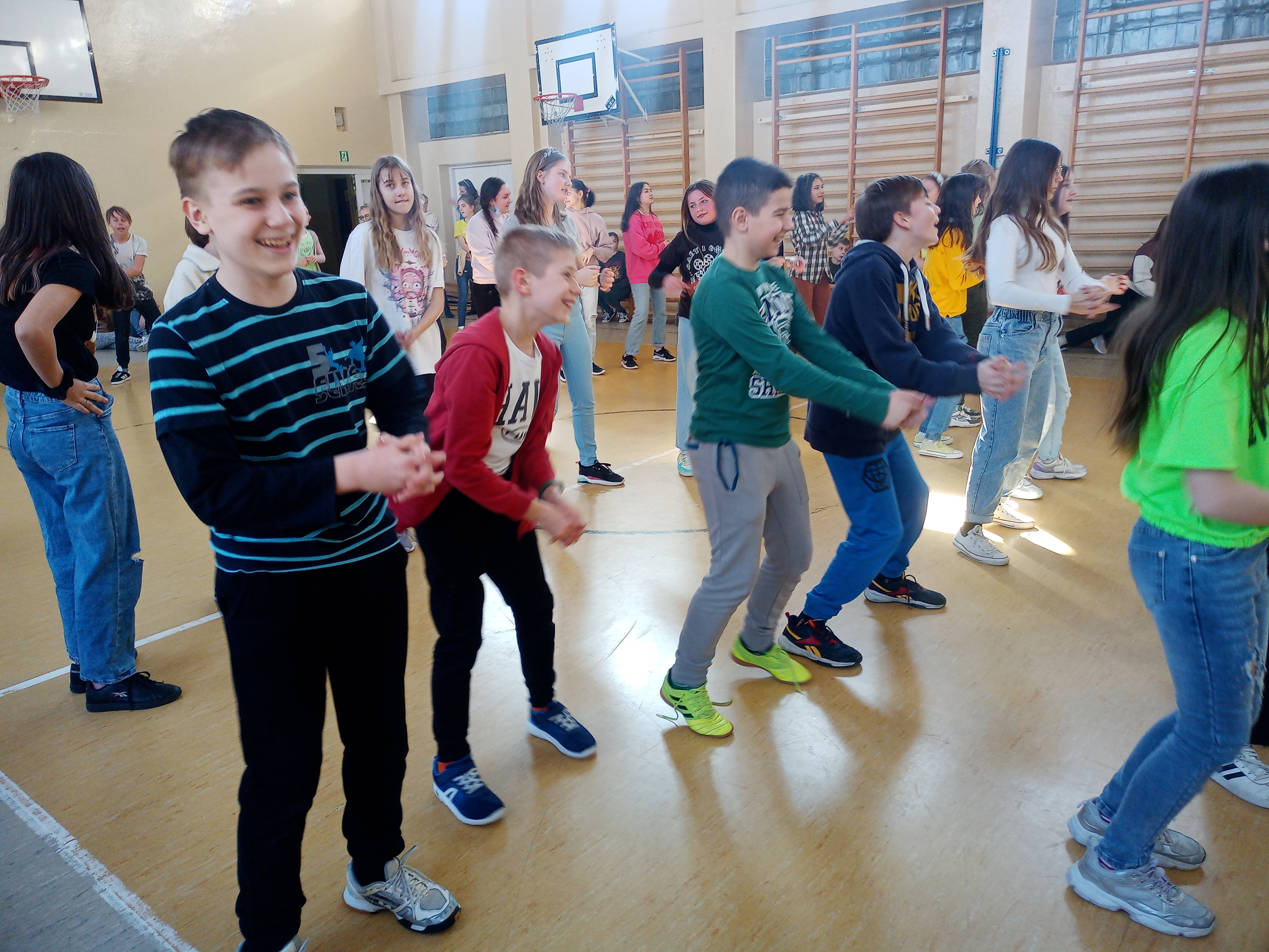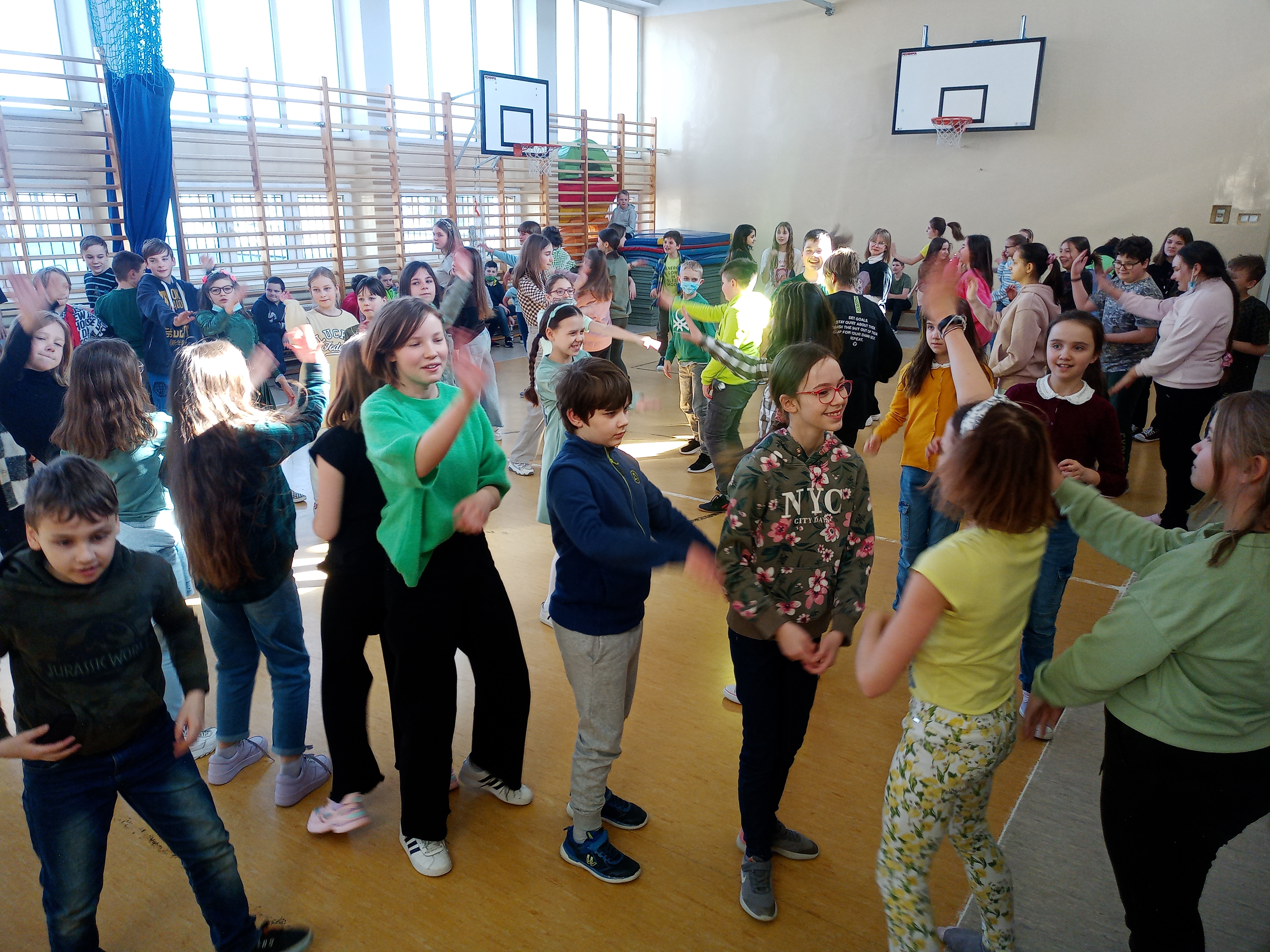 Pierwszego dnia wiosny uczniowie naszej szkoły bawili się wspólnie przy radosnych zabawach i tańcach integracyjnych. Cała brać uczniowska była ubrana na cześć nadchodzącej nowej pory roku na zielono.