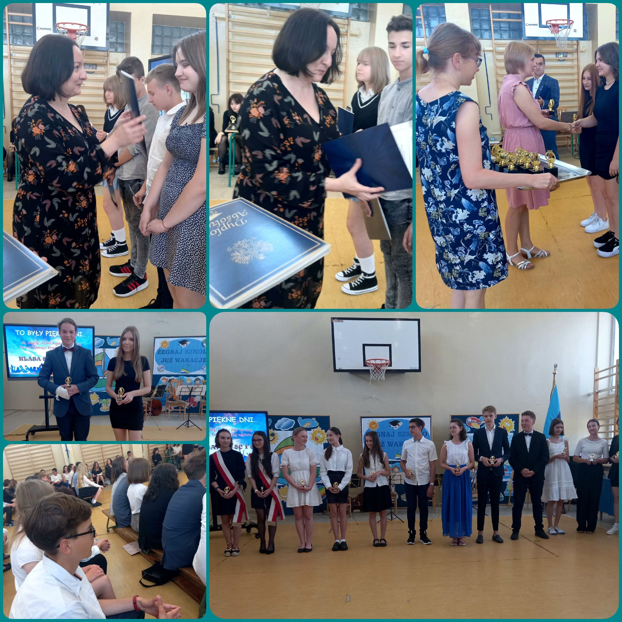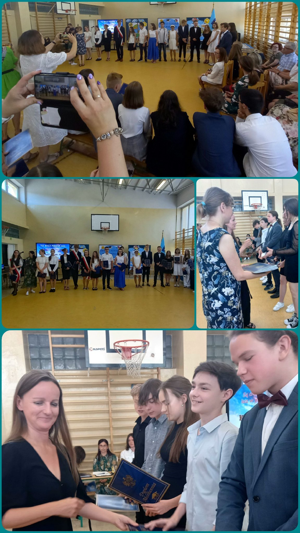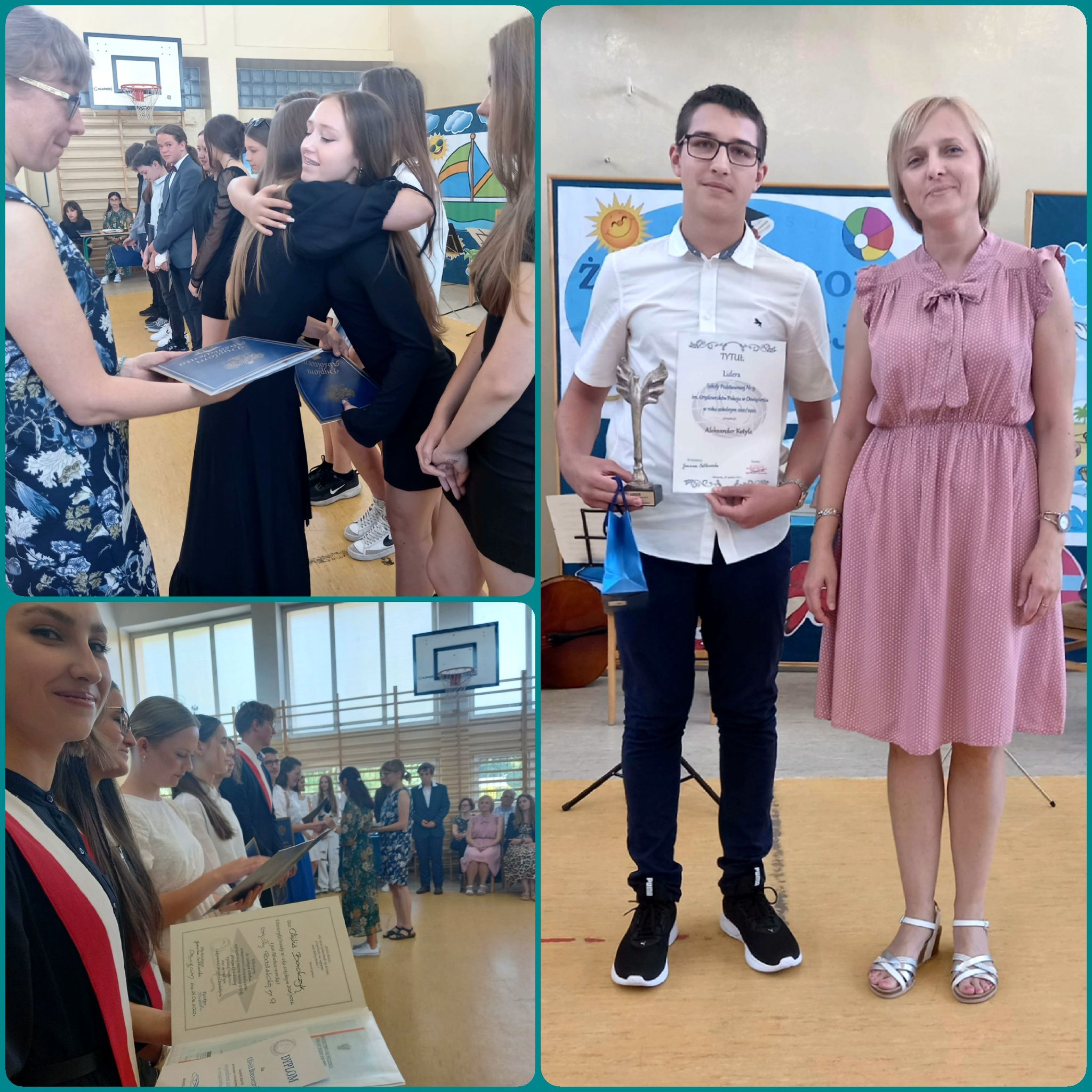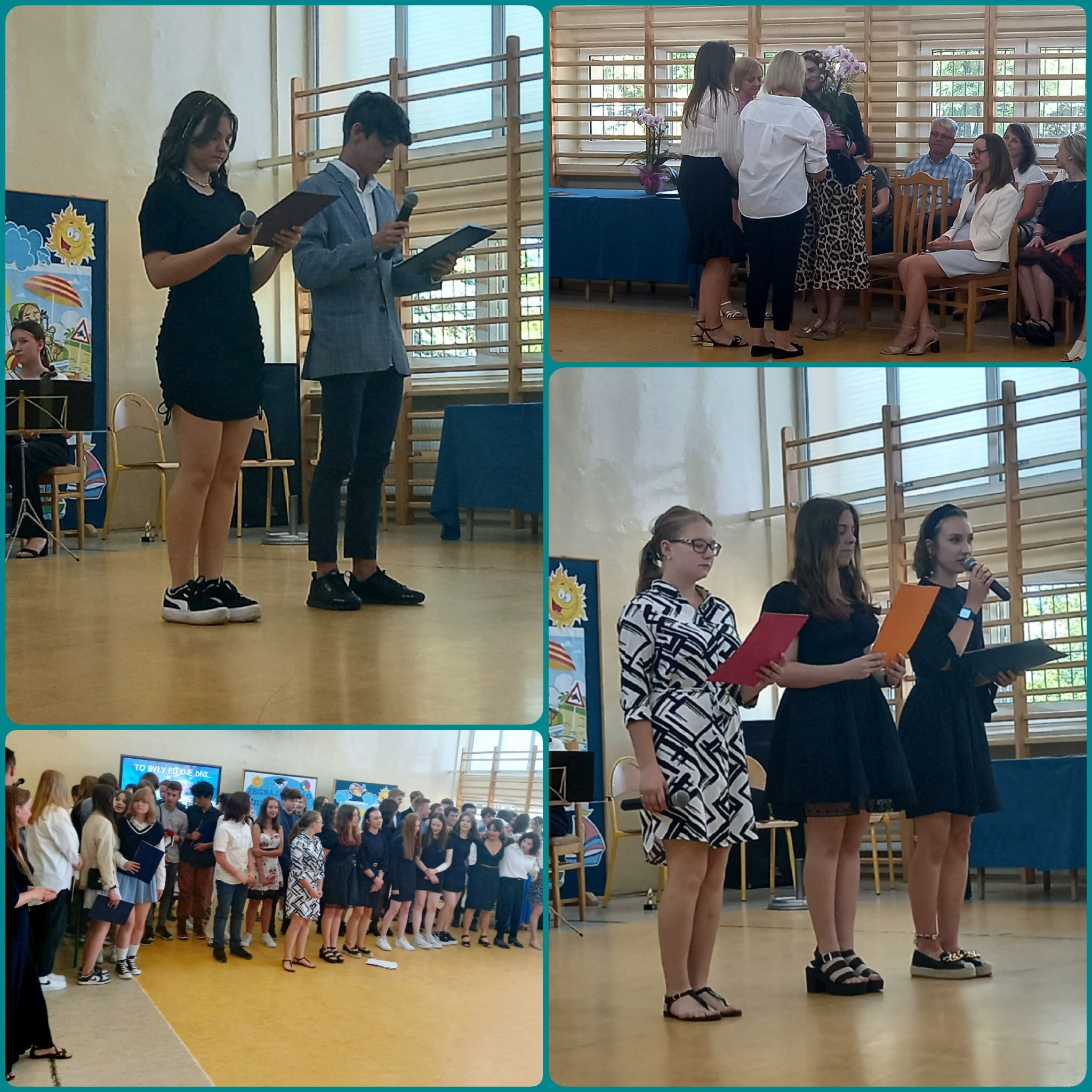 Dzień 24 czerwca 2022 roku pozostanie na długo w pamięci przede wszystkim uczniom klas VIII. Tego dnia w uroczystej atmosferze pożegnali naszą szkołę. W części artystycznej nie zabrakło wspomnień, refleksji oraz wzruszających podziękowań. Ważnym momentem uroczystości było ogłoszenie tytułu Lidera Szkoły, którym w tym roku szkolnym został Aleksander Kotyla z klasy 8d.