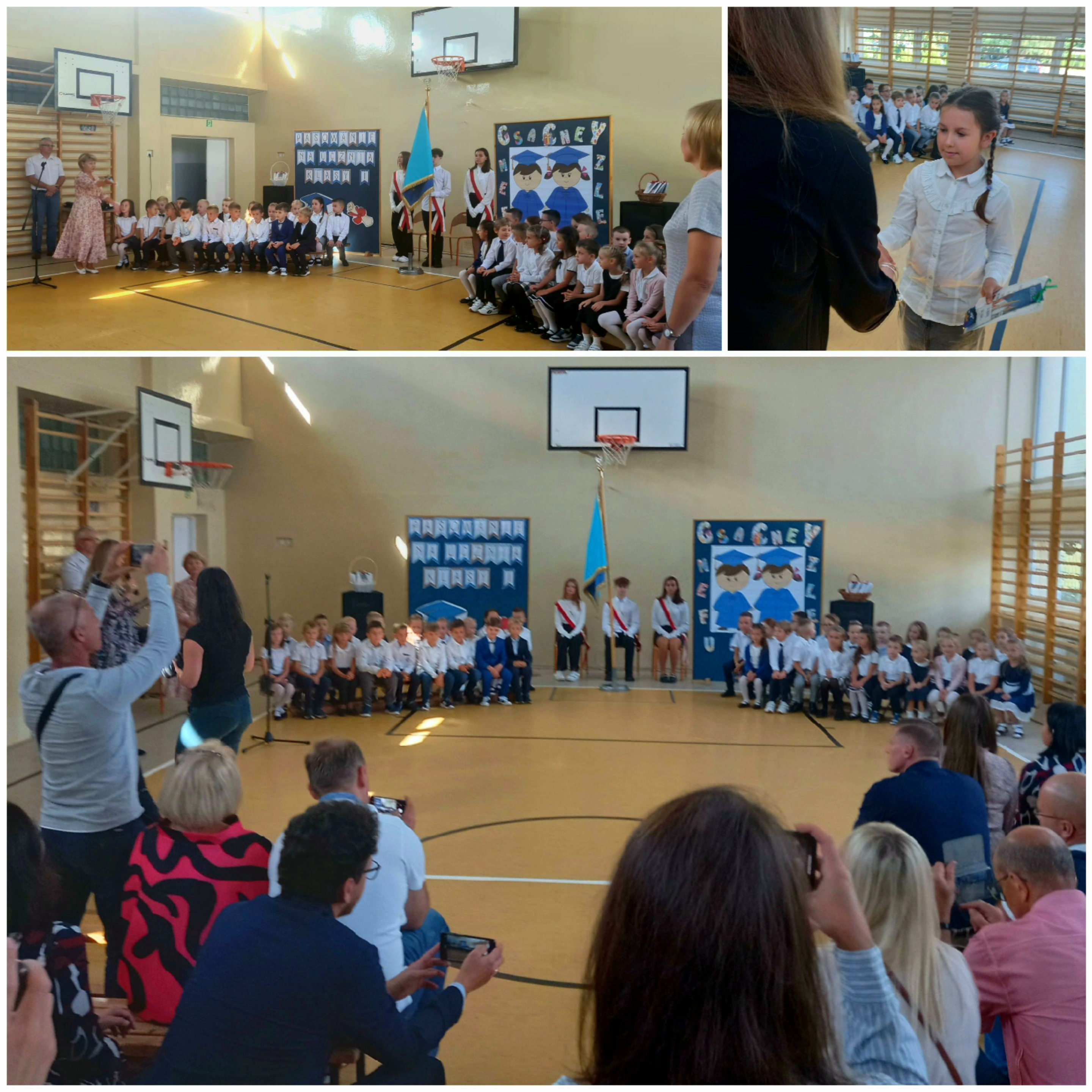 Dnia 1 września 2022 roku odbyła się uroczystość przyjęcia dzieci klas pierwszych do grona uczniów naszej szkoły. Spotkanie rozpoczęła Pani Dyrektor Barbara Sandorska, witając przybyłych gości. Dzieci uroczyście ślubowały być wzorowym uczniem oraz zostały pasowane na pełnoprawnych członków szkolnej społeczności. Po zakończeniu uroczystości wykonano pamiątkowe zdjęcia.