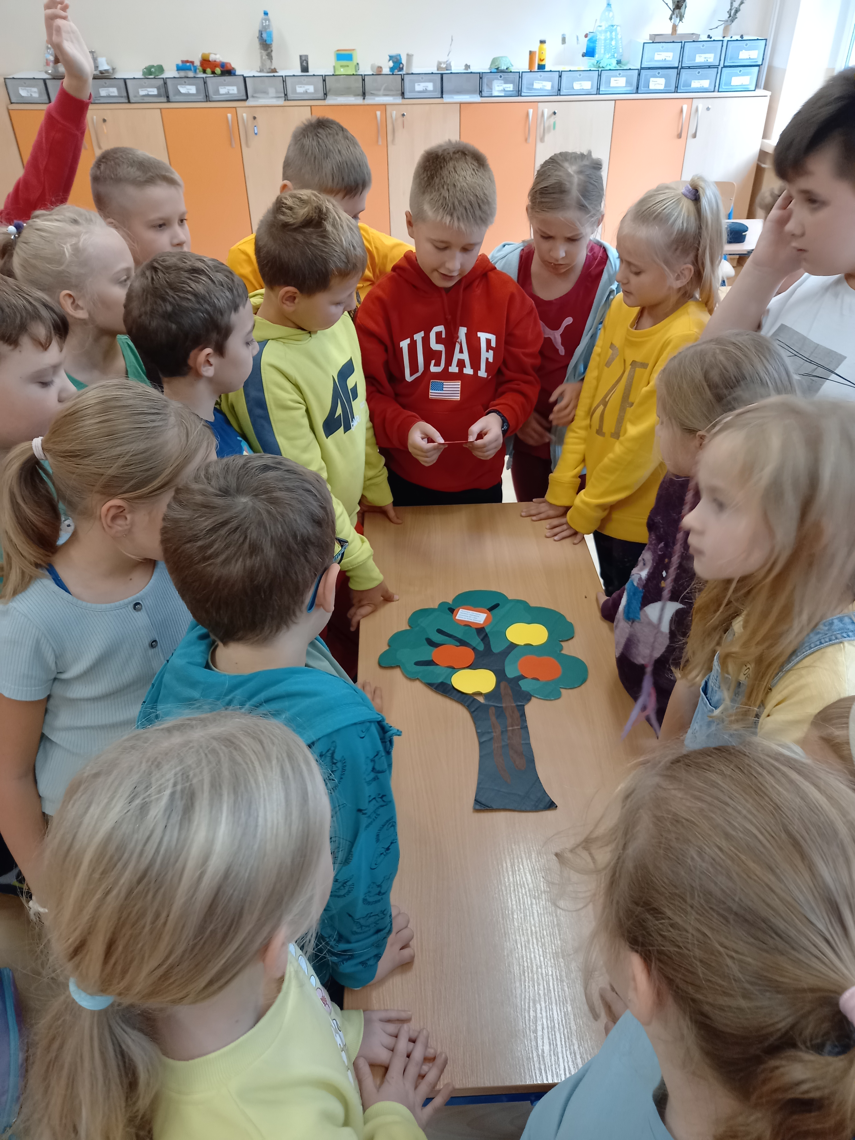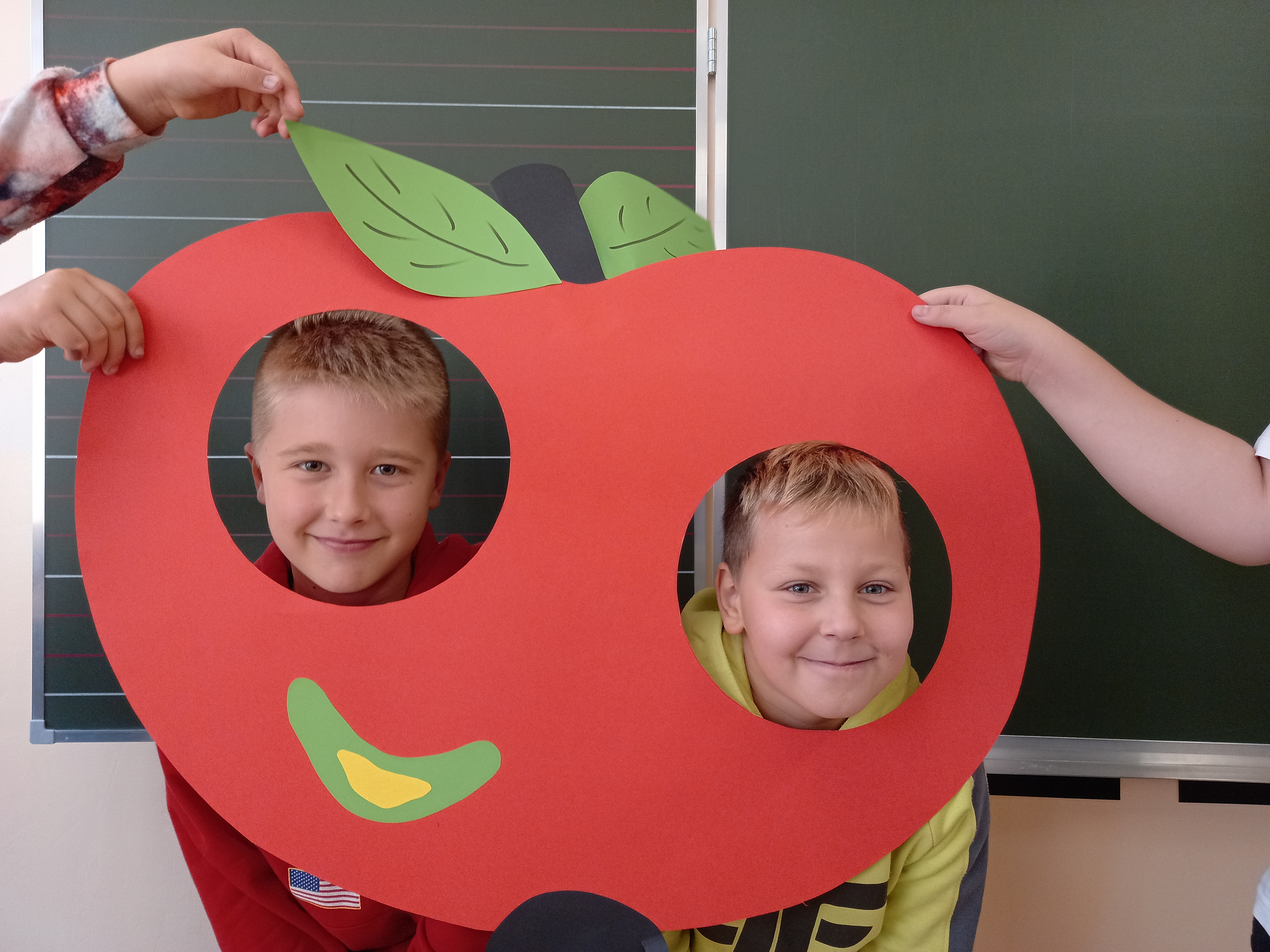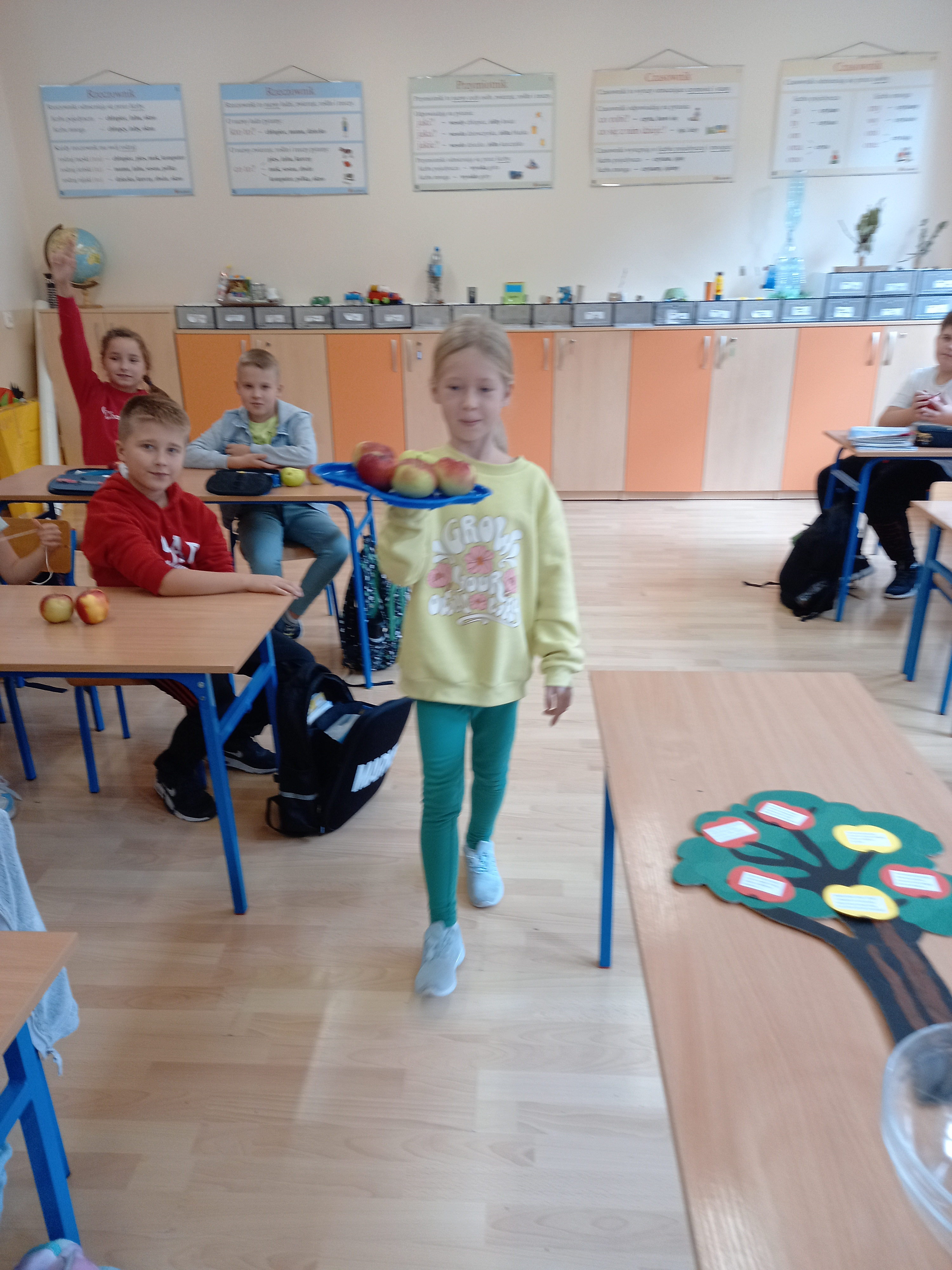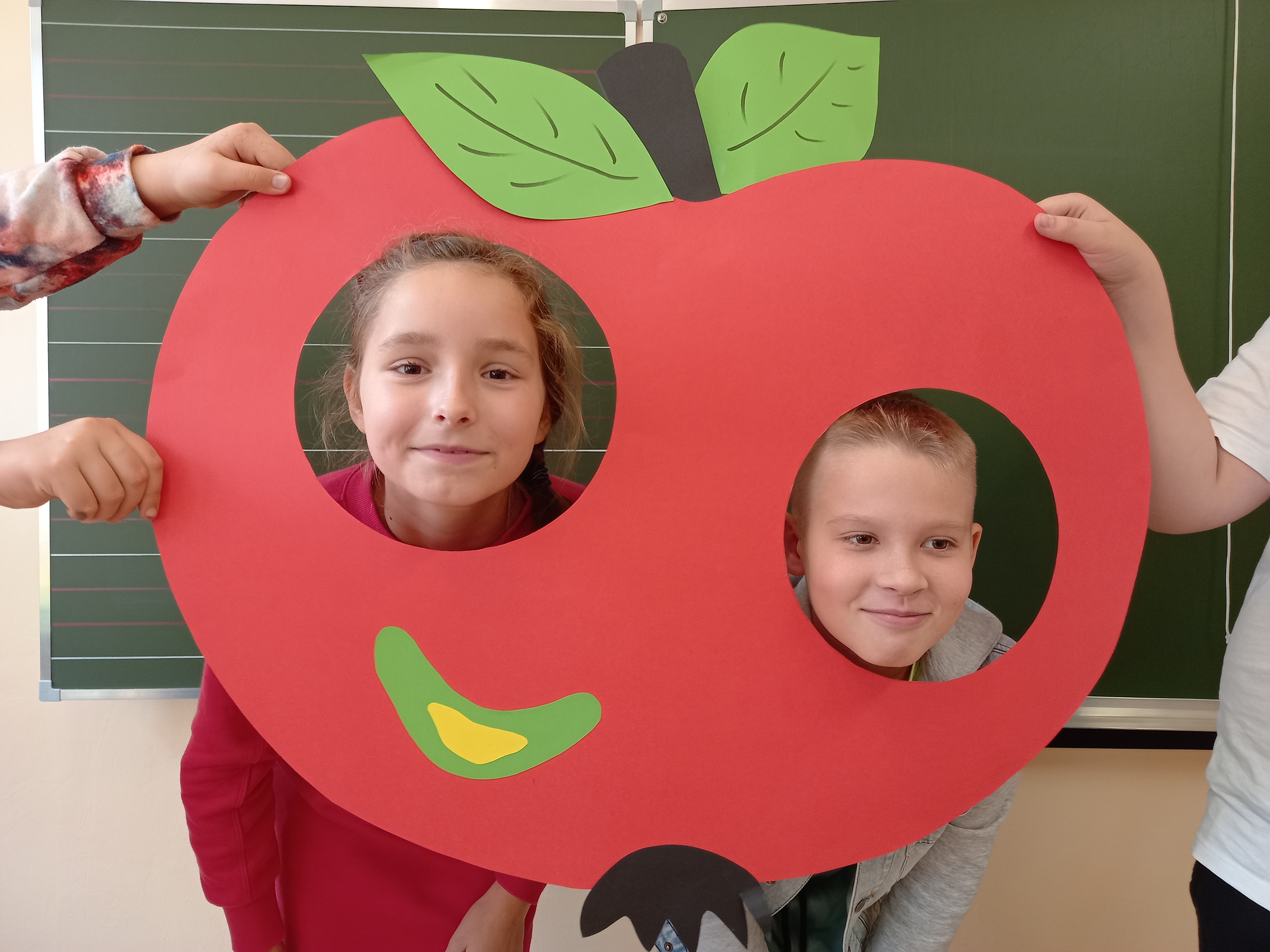28 września obchodzimy Światowy Dzień Jabłka. Tego dnia na trzecioklasistów czekało wiele atrakcji: rozwiązywanie zagadek, zabawy zręcznościowe „Kelner”, „Zjedz jabłko”. Przy okazji uczniowie poszerzali swoją wiedzę o jabłkach. Na zakończenie dzieci wysłuchały utwór J. Brzechwy pt. „Entliczek-pentliczek”, po czym zamieniły się w „robaczki” i pozowały do zdjęć jabłku. Wszyscy wykazali się dużym poczuciem humoru.
