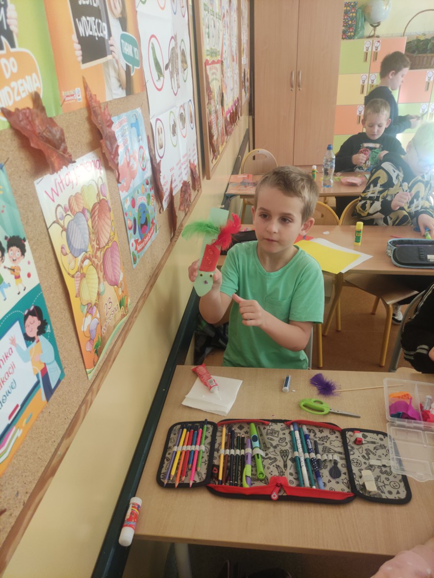Uczniowie z zainteresowaniem i wielkim zaangażowaniem uczestniczyli w zajęciach. Chętnie wykonywali polecenia pani prowadzącej , a wyniki ich działań można zobaczyć na wystawce klasowej.