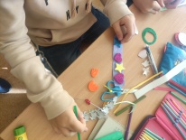 Na drugim spotkaniu uczniowie poznali zasady poszanowania książek oraz spełniali ich prośby. Jedną z nich było wykonanie kolorowej zakładki własnego pomysłu.