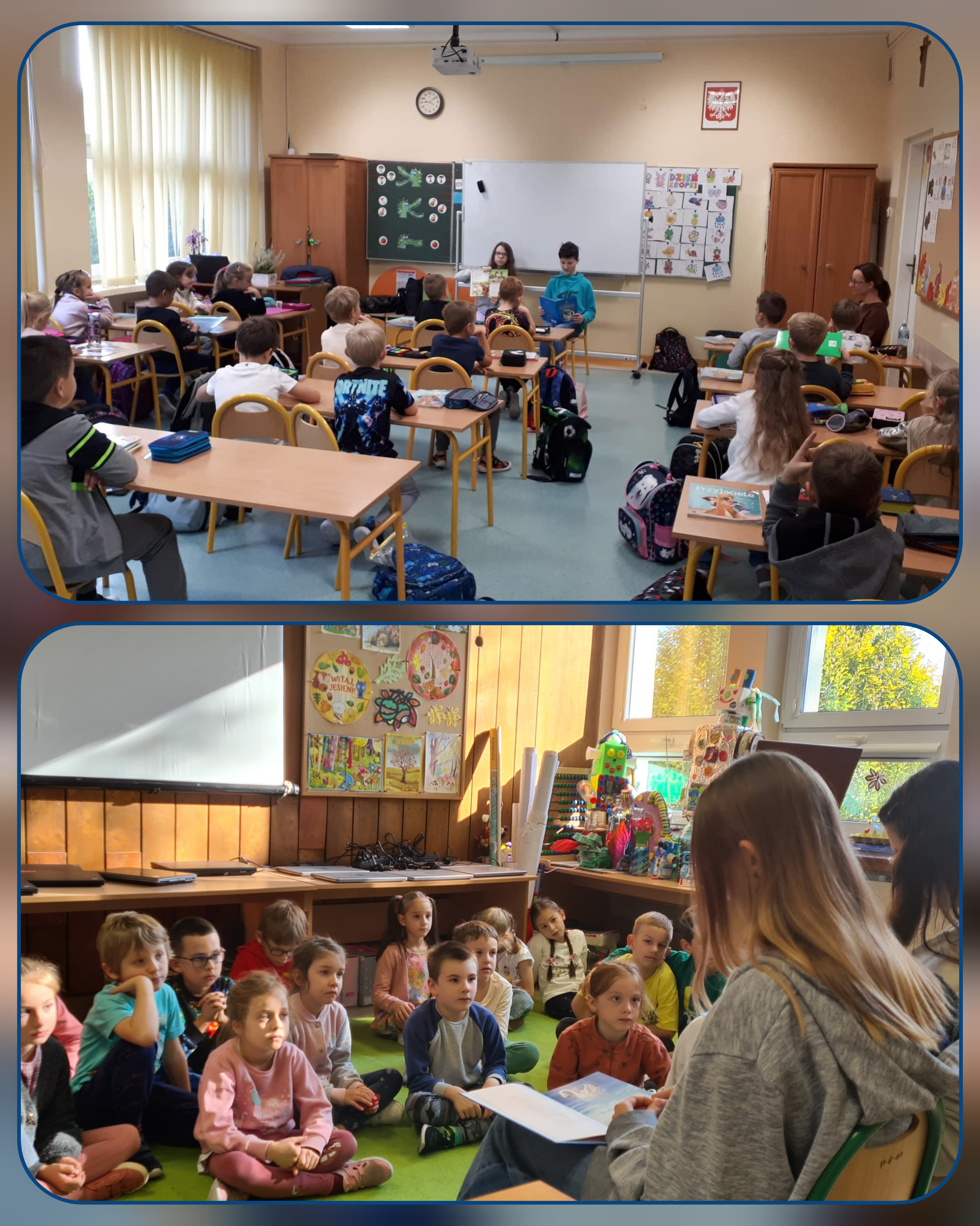Klasy pierwsze odwiedzili wolontariusze z klas 7. i 8., którzy przeczytali dzieciom bajkę H. Ch. Andersena „Brzydkie Kaczątko”. Spotkanie to było okazją do rozmowy o pokonywaniu trudności w życiu, w tym także trudności edukacyjnych. Pedagog szkolny wspomniał uczniom, że sam Andersen uznany został za dyslektyka, co nie przekreśliło jego sukcesu. Mimo trudności w szkole, dorosły Hans stworzył w dorosłym życiu wspaniałe dzieła.