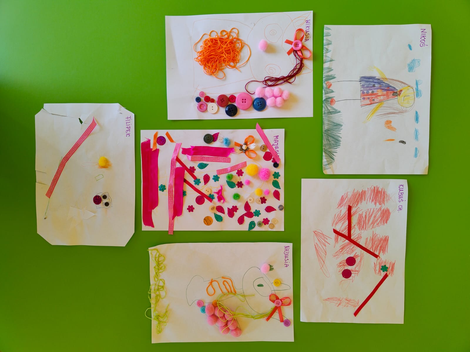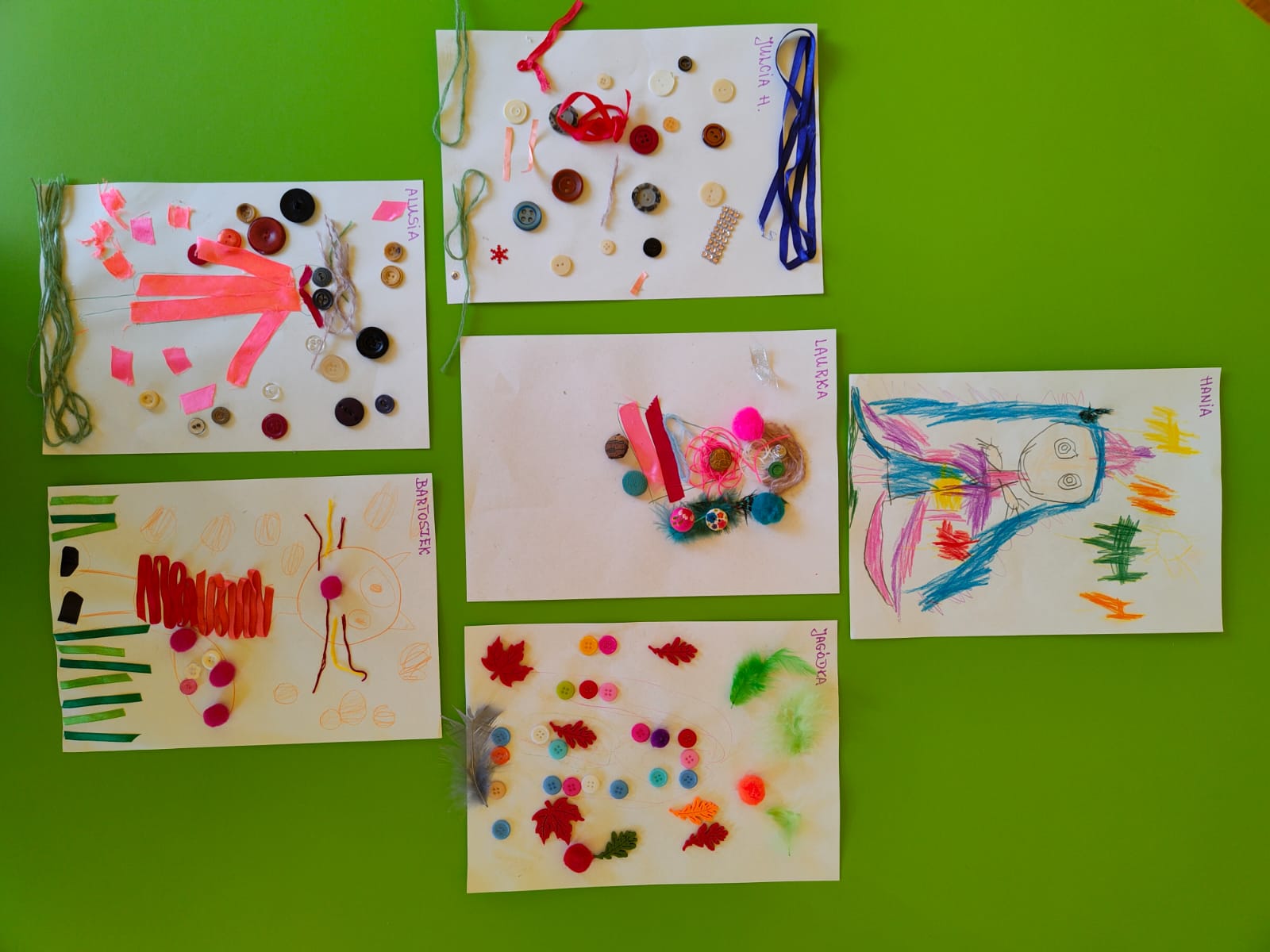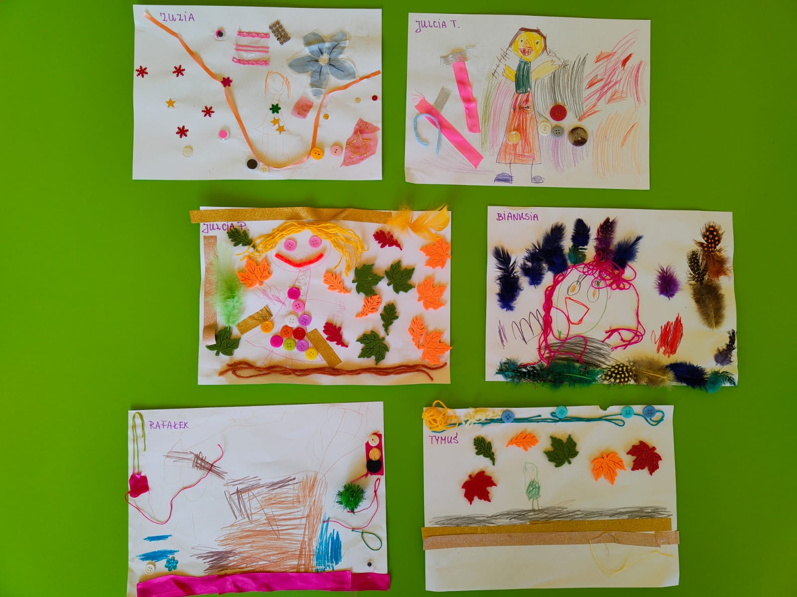 Przedszkolaki wykazały się ogromną kreatywnością czego świadectwem są zamieszczone poniżej zdjęcia prac. Wszyscy świetnie się bawili. Mamy nadzieję, że jeszcze się spotkamy. Bardzo dziękujemy pani Bernardynie Hareńczyk za pomoc w przygotowaniu zajęć.