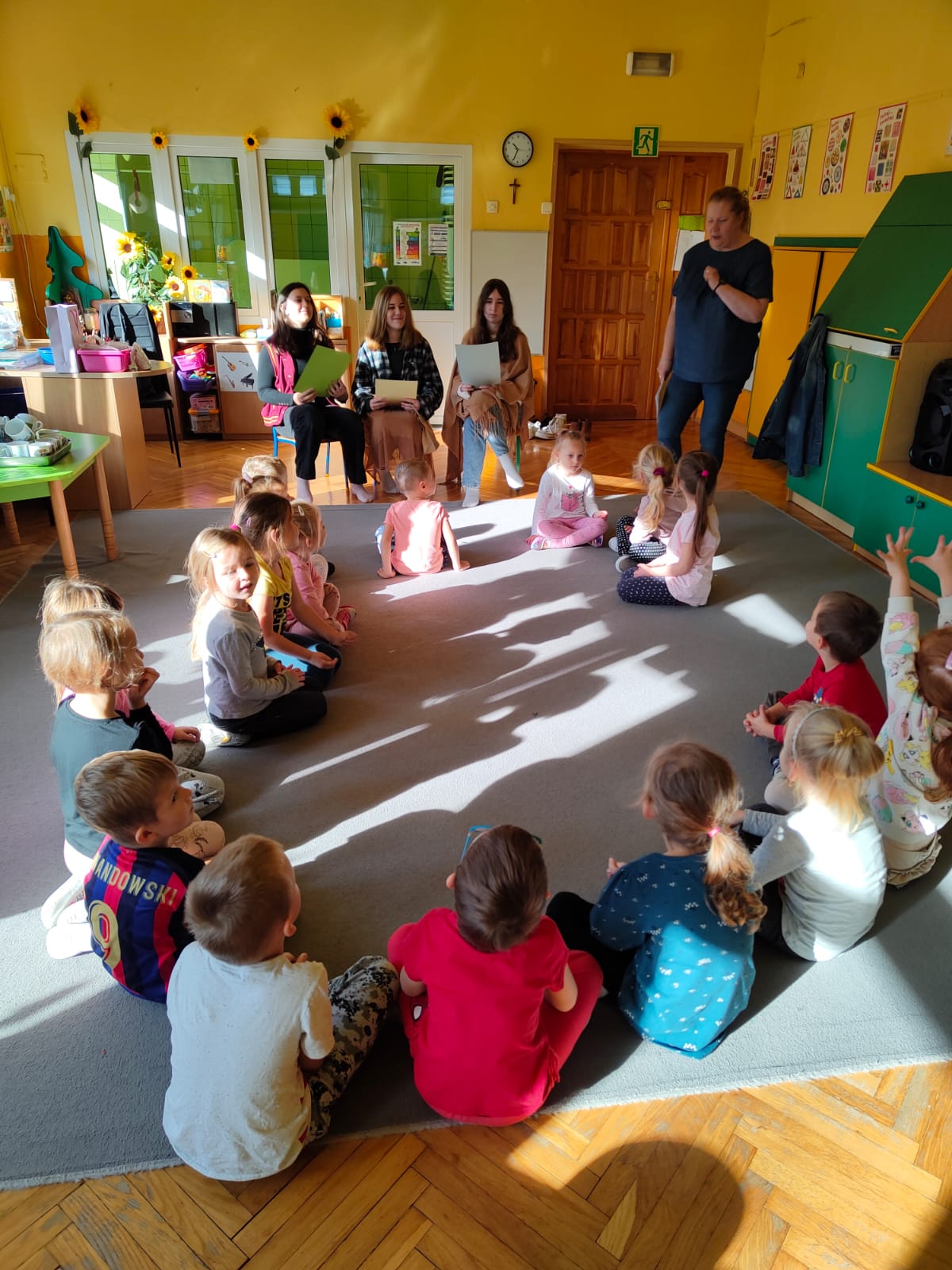 W minioną środę nasze wolontariuszki wraz z paniami Agnieszką Smrek i Martą Rabendą odwiedziły w Przedszkolu nr 15 dzieci z grupy „Misie”. W czasie spotkania przedszkolaki zostały zapoznane z celem wizyty, opowiadały o zmianach zachodzących w przyrodzie jesienią , słuchały czytanych przez starsze koleżanki wierszy o tematyce jesiennej i brały udział w zabawach ruchowych.