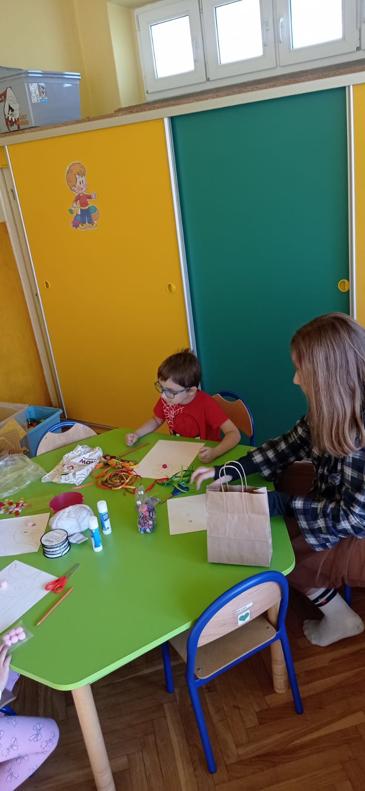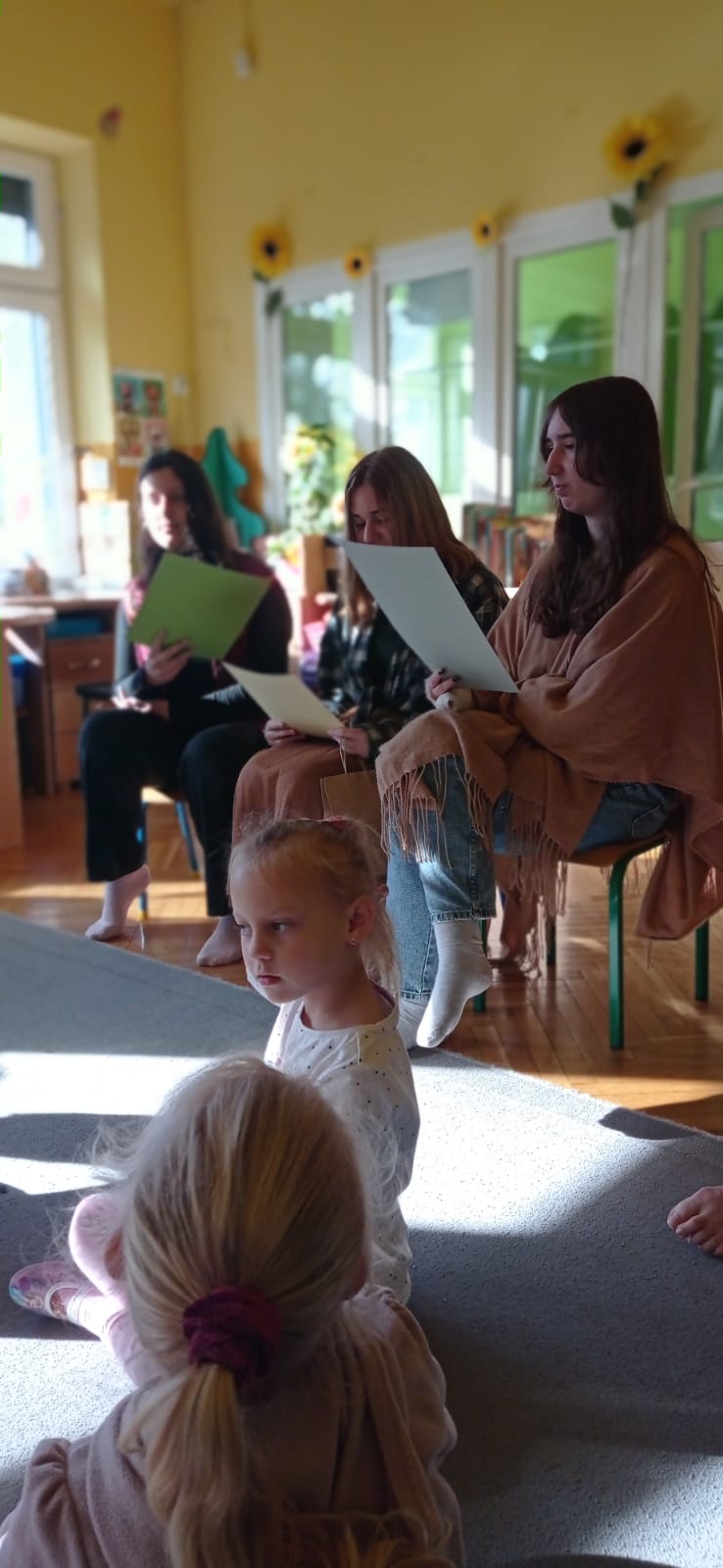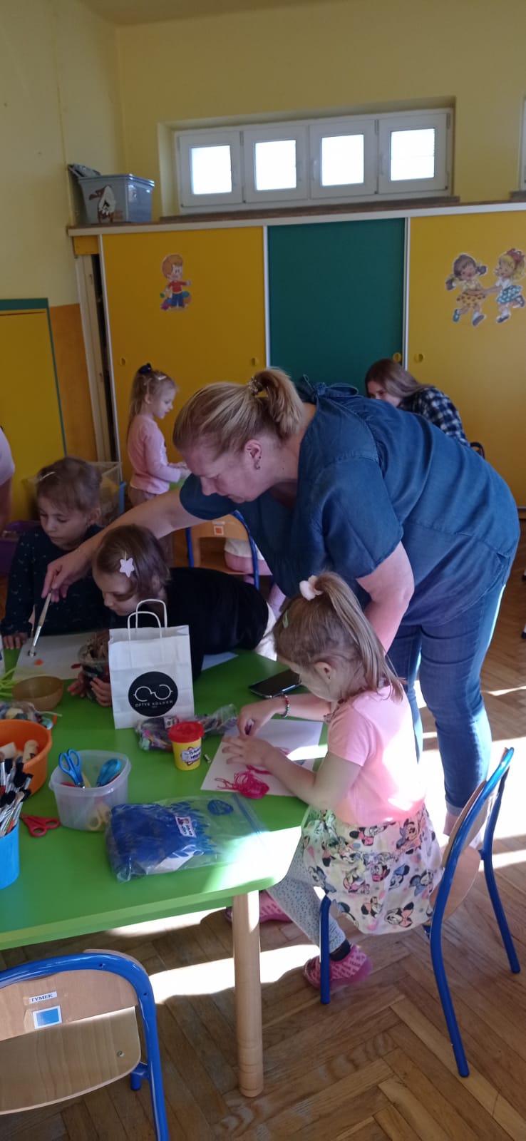 Następnie przy niewielkiej pomocy wolontariuszek i nauczycieli, dzieci wykonywały prace plastyczne ilustrujące przeczytane utwory.