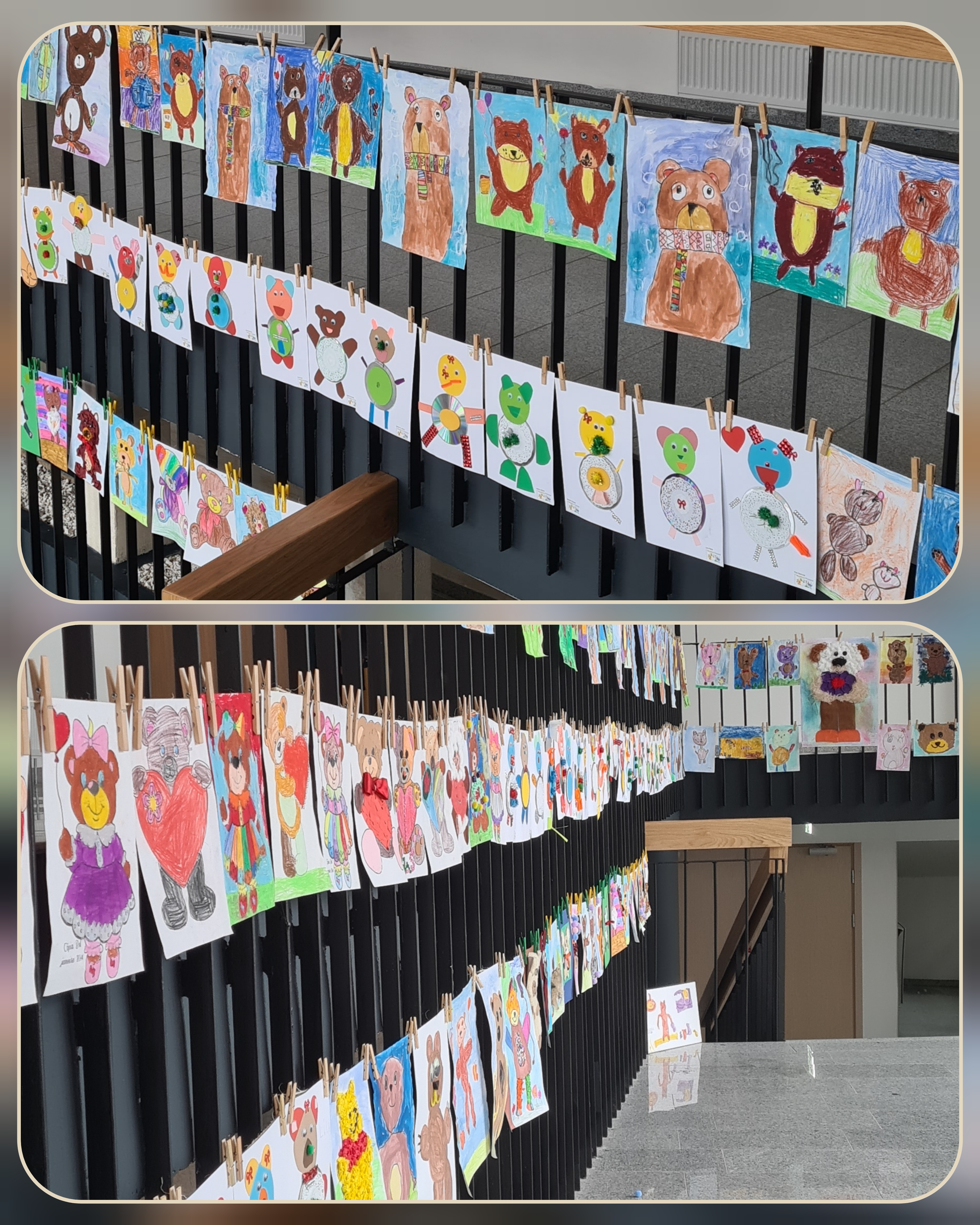 Na scenie zaprezentowali się uczniowie z klasy 1b oraz 3b. Występ oscylował wokół tematyki Dnia Pluszowego Misia. Były recytowane wiersze, odśpiewane piosenki a także zaprezentowane układy taneczne. Swoje muzyczne umiejętności zaprezentowali także wychowankowie szkoły muzycznej oraz ich nauczyciele. Z okazji tego wydarzenia najmłodsi goście, pod kierunkiem swoich wychowawców, wykonali piękne prace plastyczne, które wszyscy mogli tego dnia podziwiać.
