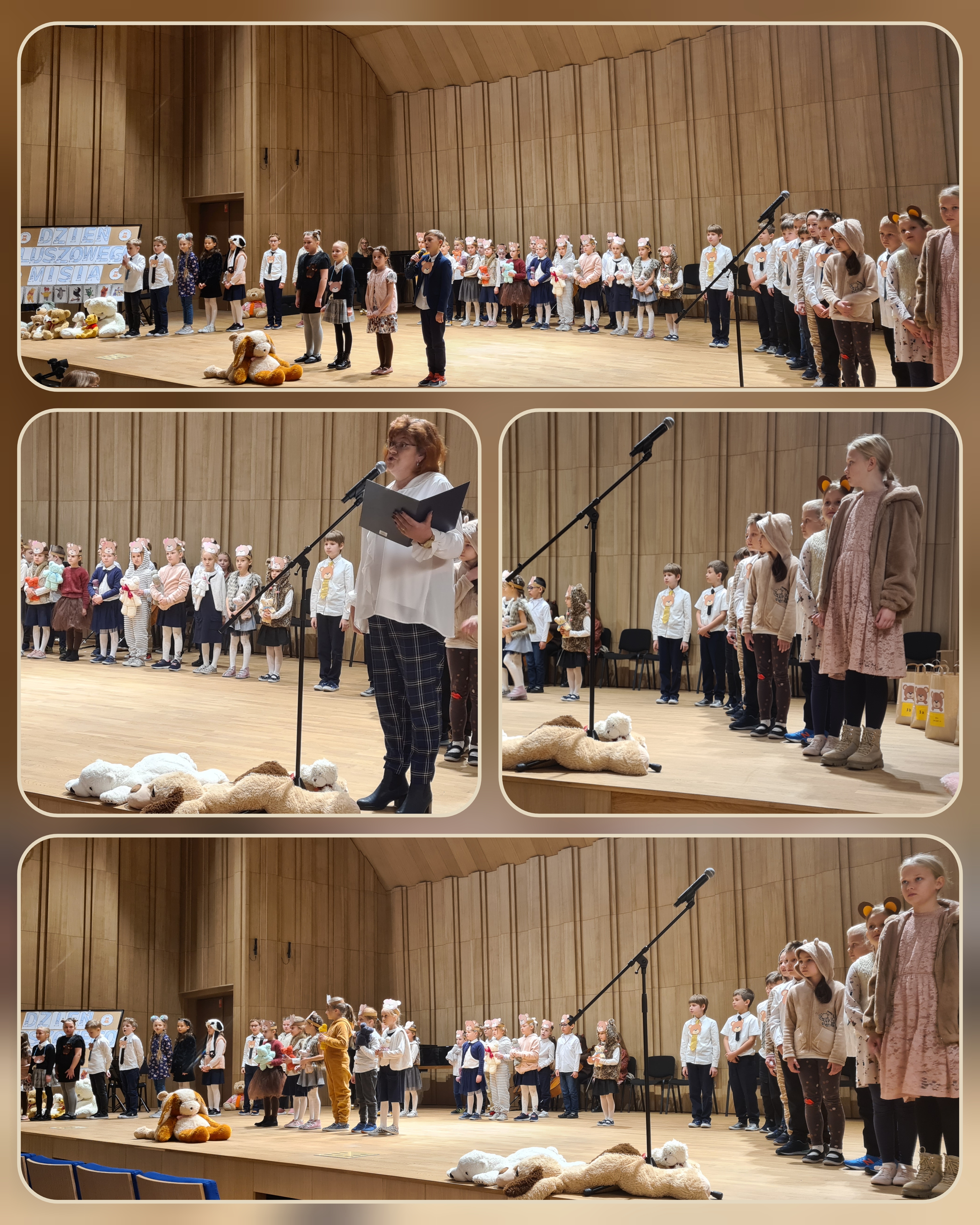 Dnia 29.11.2022 roku najmłodsi uczniowie naszej szkoły wspólnie z najstarszymi przedszkolakami z zaprzyjaźnionych placówek - nr 15, nr 16 oraz Bajka świętowali obchodzony w ubiegłym tygodniu Dzień Pluszowego Misia. Wydarzenie miało miejsce w Państwowej Szkole Muzycznej. Sala koncertowa była wypełniona po brzegi ulubieńcami pluszowego misia. Mieliśmy zaszczyt także gościć Wiceprezydenta Miasta Oświęcim Pana Krzysztofa Kanię.