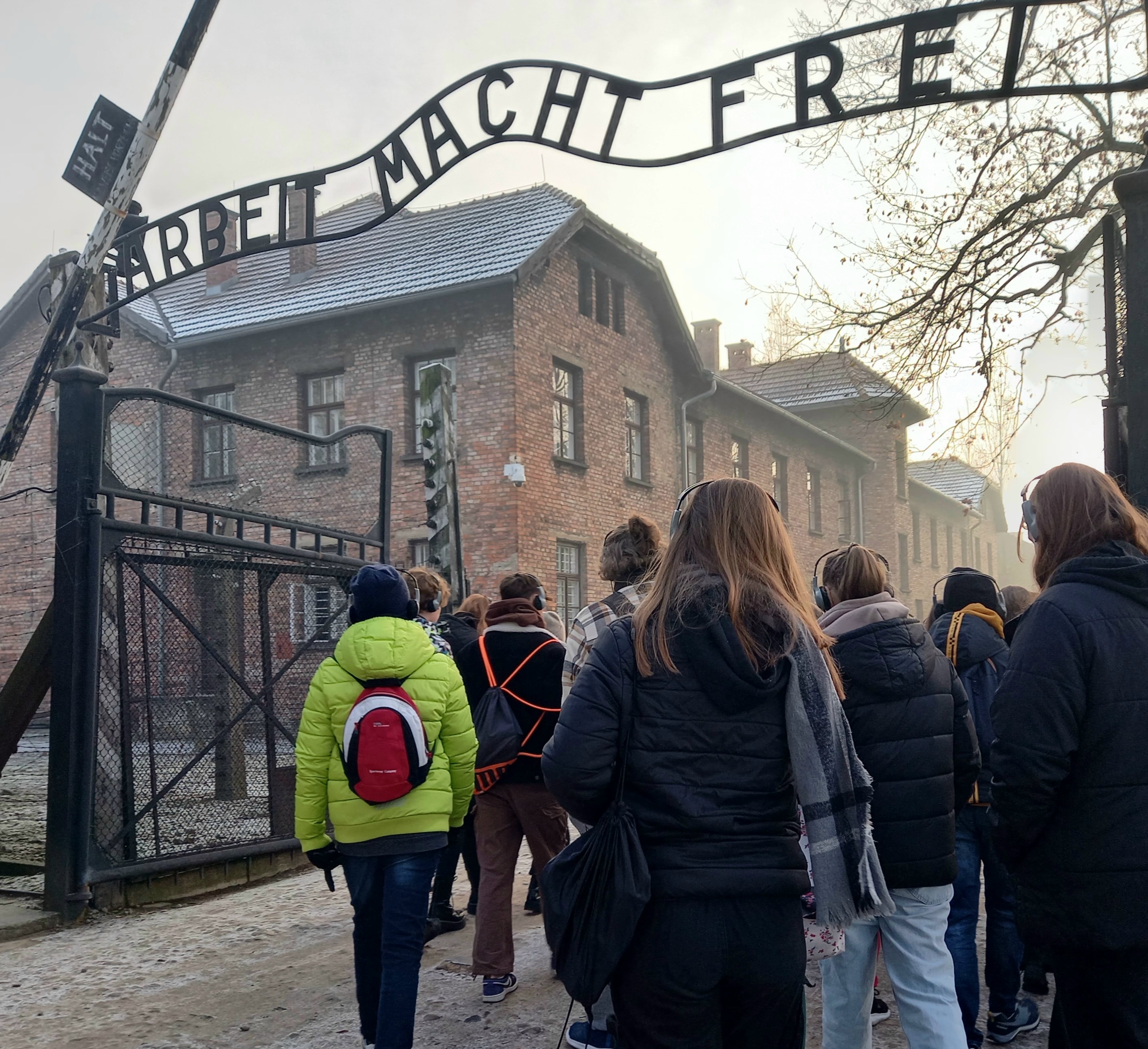Po zwiedzeniu całości kompleksu obozowego Auschwitz-Birkenau uczniowie udali się do Międzynarodowego Centrum Edukacji o Auschwitz i Holokauście, gdzie brali czynny udział w warsztatach pt. „Obywatele polscy w KL Auschwitz”.