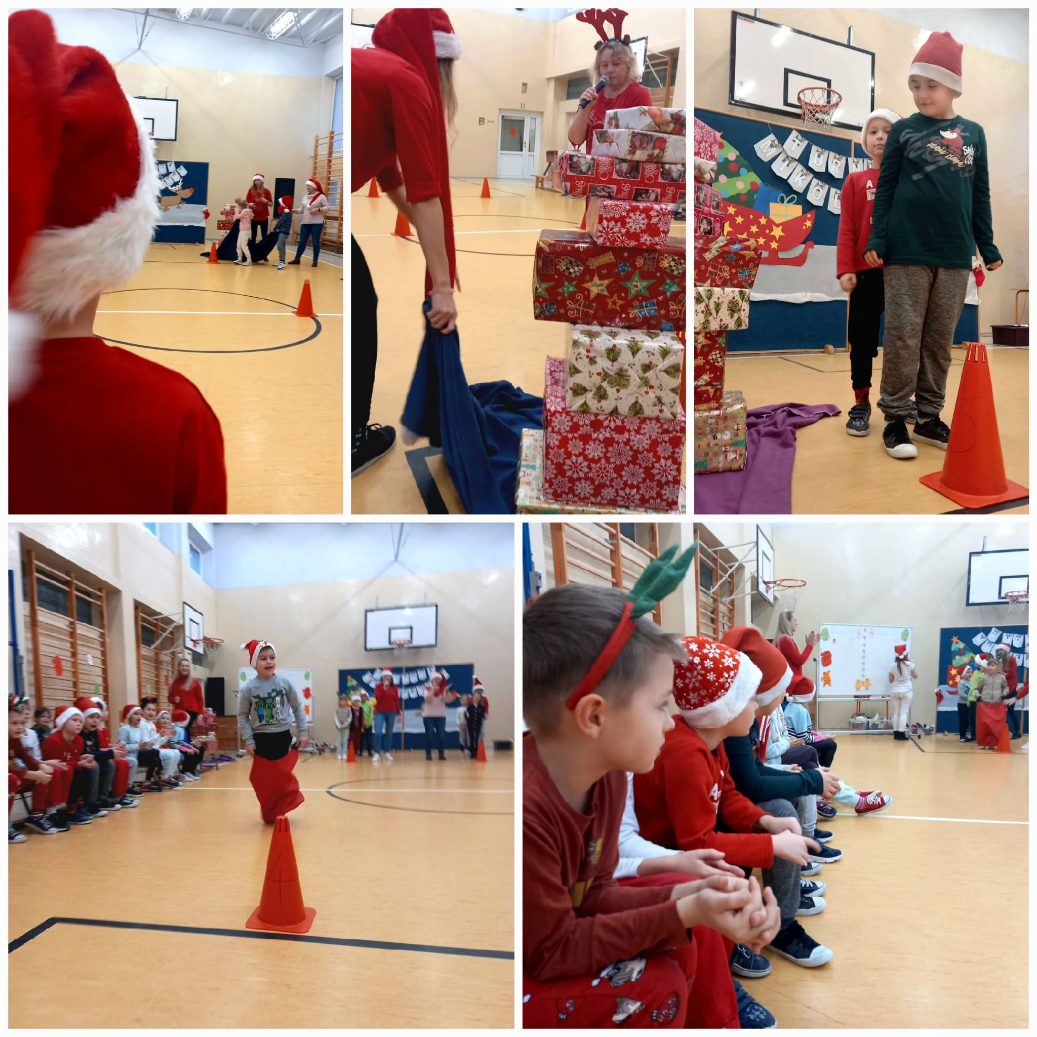 Szóstego grudnia do naszej szkoły przybył wyjątkowy gość - był to Święty Mikołaj. W celu celebrowania tej wizyty klasy 1-3 wzięły udział w Turnieju Mikołajkowym. Dzieci zmierzyły się ze sobą w ośmiu niezwykle ciekawych konkurencjach. Pierwsza to podawanie prezentu górą i dołem, druga - wyścigi w workach Mikołaja, następna - slalom z wieżą pełną prezentów, później - konkurencja muzyczna, czyli „Jaka to melodia”, kolejno - tworzenie nierozerwalnego łańcucha świątecznego i przekazanie światełka, którym było hula-hop. Szóstą, pełną emocji konkurencją były zakupy świąteczne. Uczestnicy, aby wykonać zadanie musieli rozszyfrować krótkie zagadki i znaleźć odpowiednie przedmioty do paczek. Przedostatnie było ubieranie choinki, w którą magicznym sposobem zamieniał się jeden członek z drużyny, a na samym końcu przyciąganie wypakowanych po brzegi, różnymi niespodziankami prezentów. W zabawie miały możliwość brać udział wszystkie dzieci. Na zakończenie zostały nagrodzone przez Świętego Mikołaja za wysiłek i trud włożony w zmagania. Tego dnia wszyscy wspaniale się bawili.