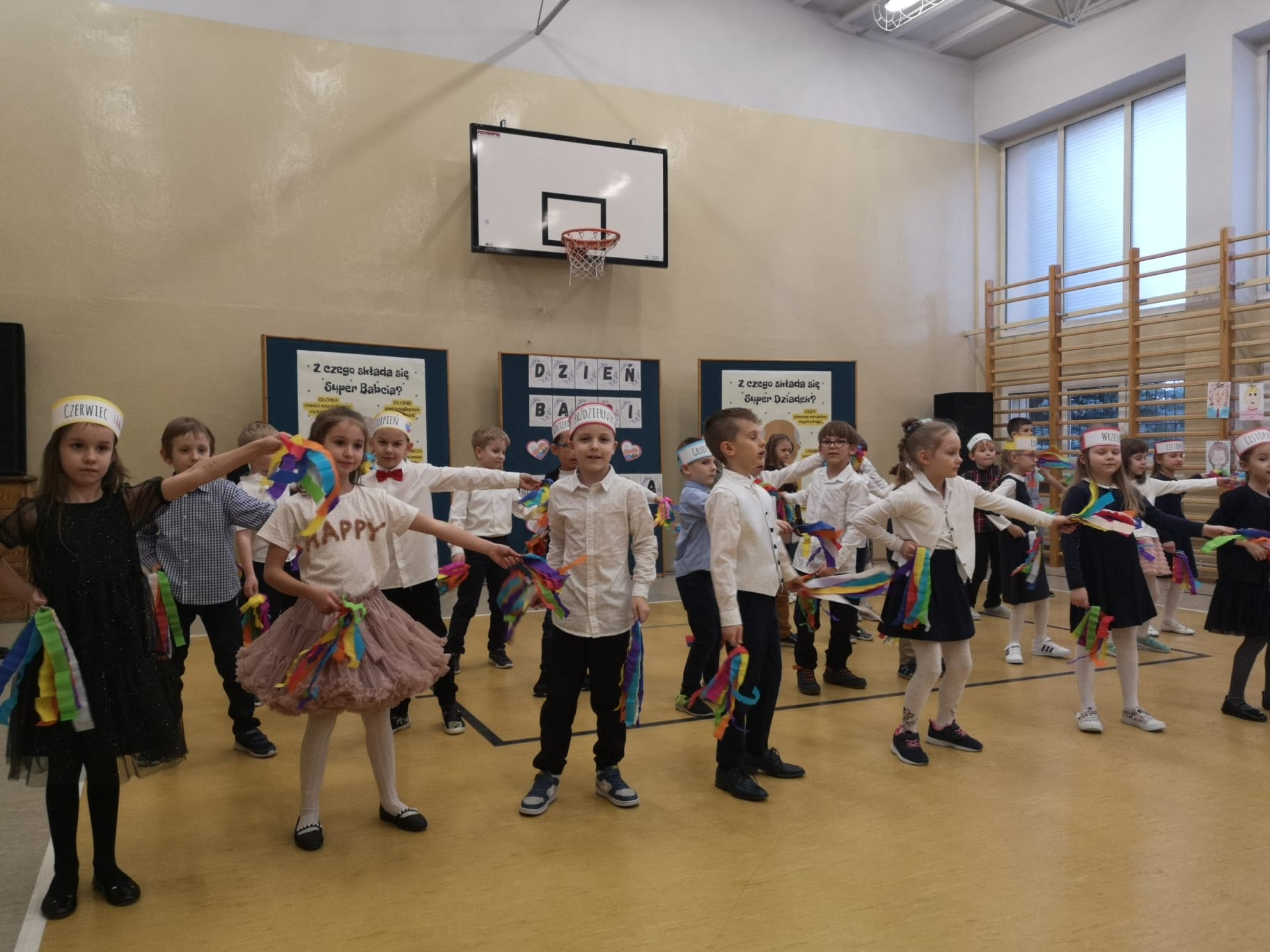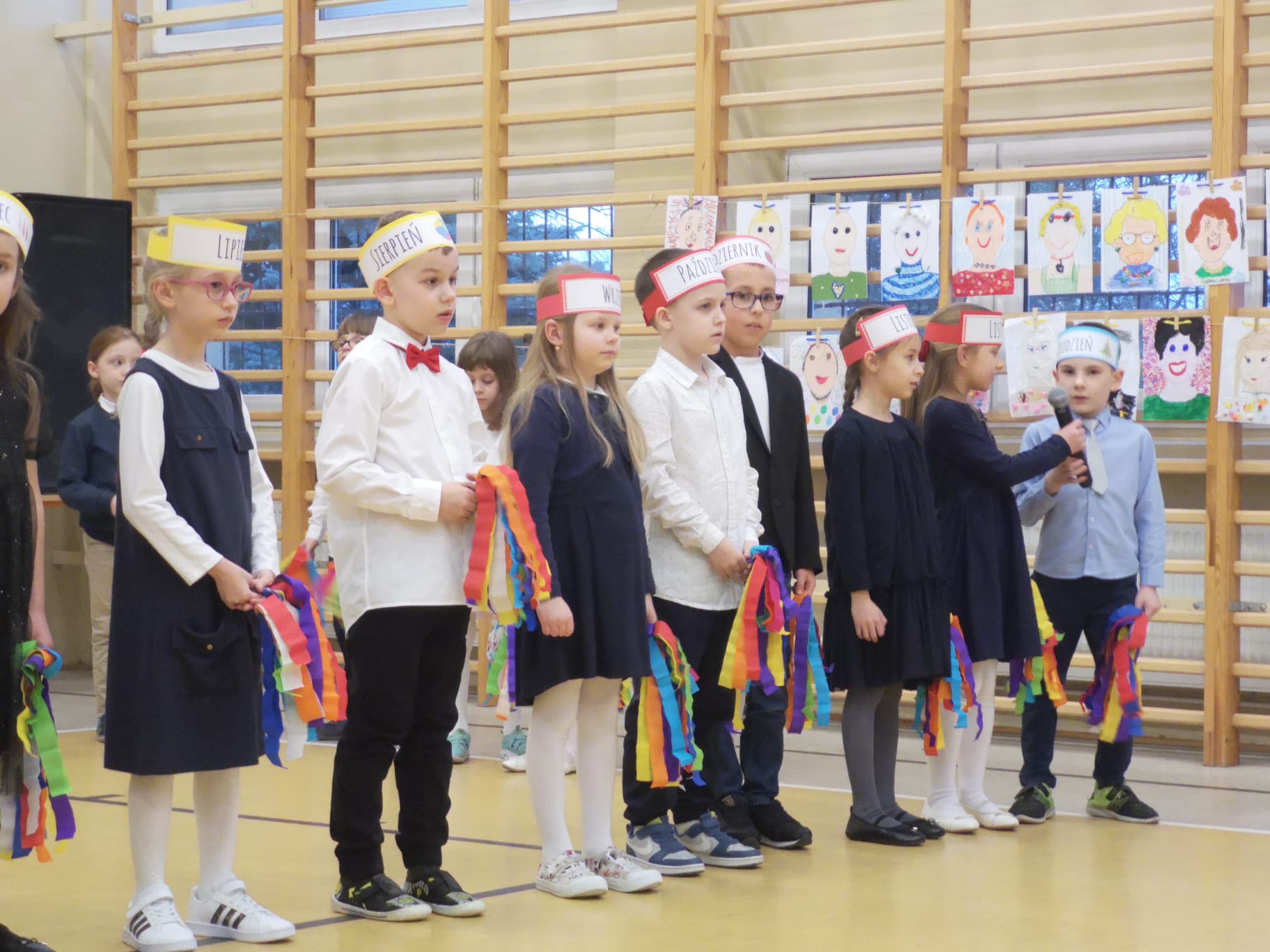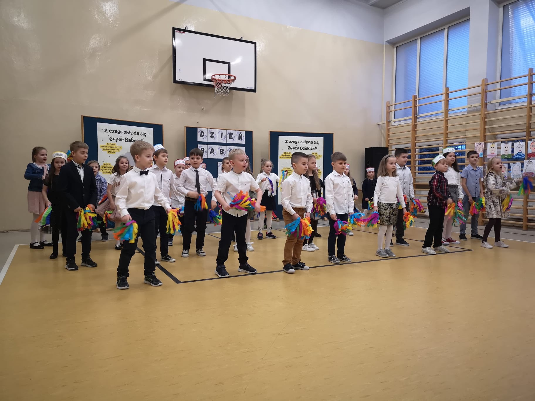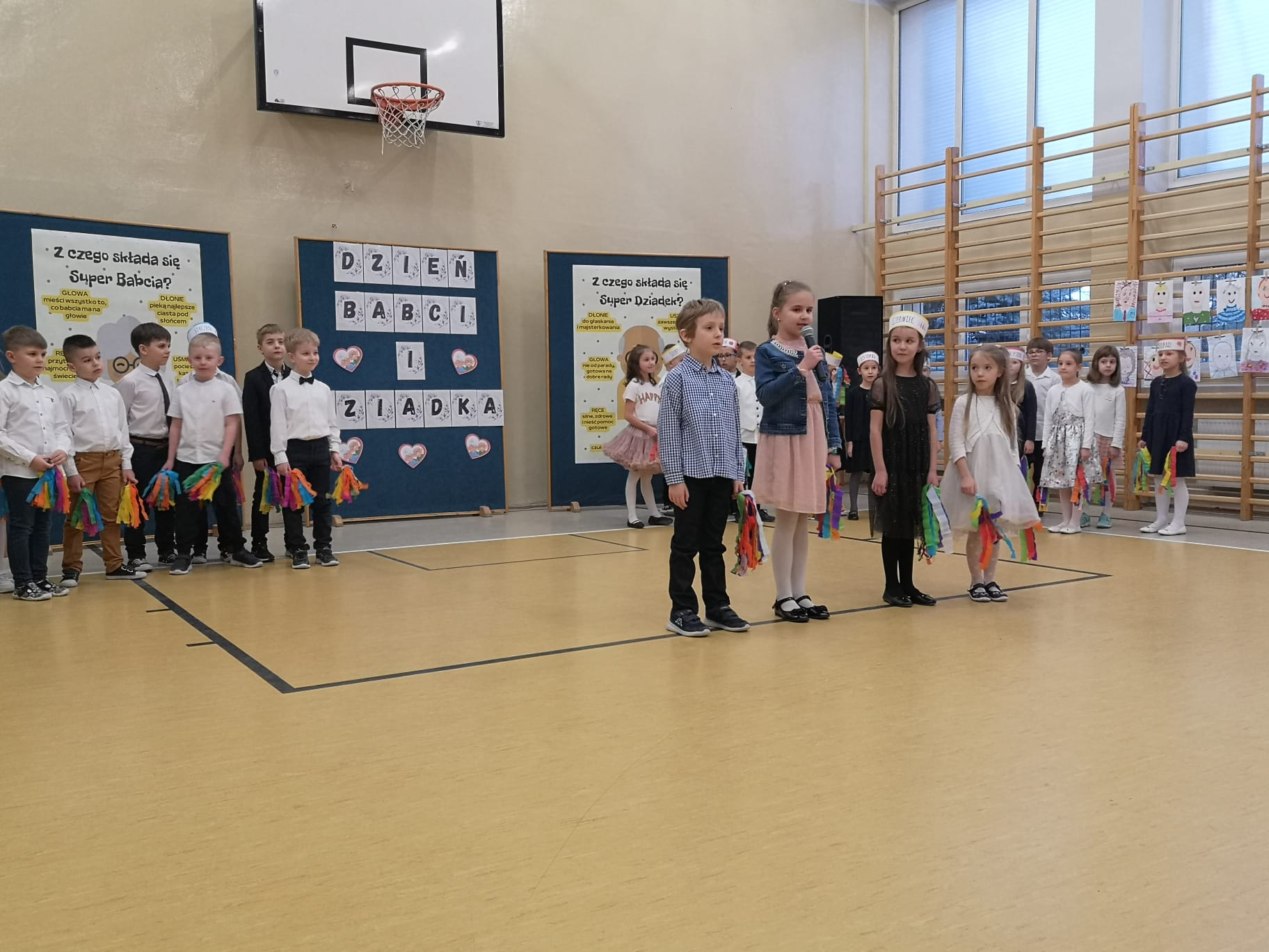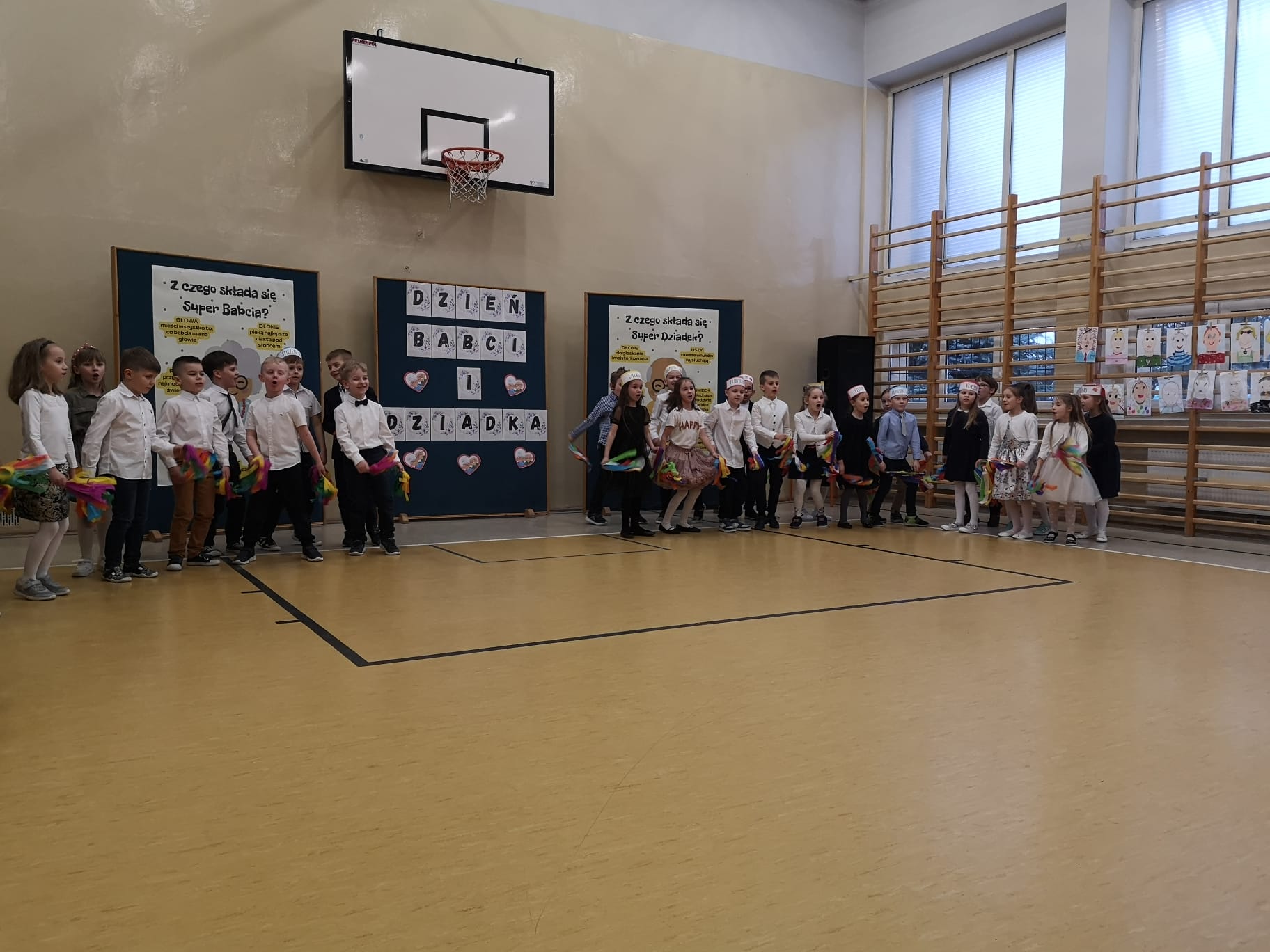 Dnia 27.02.2023 r. w godzinach popołudniowych mieliśmy zaszczyt ugościć w naszej szkole babcie i dziadków uczniów klas pierwszych. Pierwszoklasiści, z okazji obchodzonego miesiąc wcześniej Dnia Babci i Dziadka, przygotowali uroczysty występ pełen tańców oraz śpiewu. Spisali się także na medal pięknie recytując wiersze. Na twarzach seniorów widać było ogromne wzruszenie. Występ bardzo się podobał a nasi najmłodsi uczniowie dostali gromkie brawa. Na zakończenie uroczystości, babcie i dziadkowie mieli bardzo trudne zadanie do wykonania. Otóż spośród wielu portretów musieli odnaleźć swój. Na szczęście mieli do pomocy swoje kochane wnuczęta. Zaproszonym gościom bardzo dziękujemy za przybycie a małym artystom ogromnie gratulujemy wspaniałego występu!