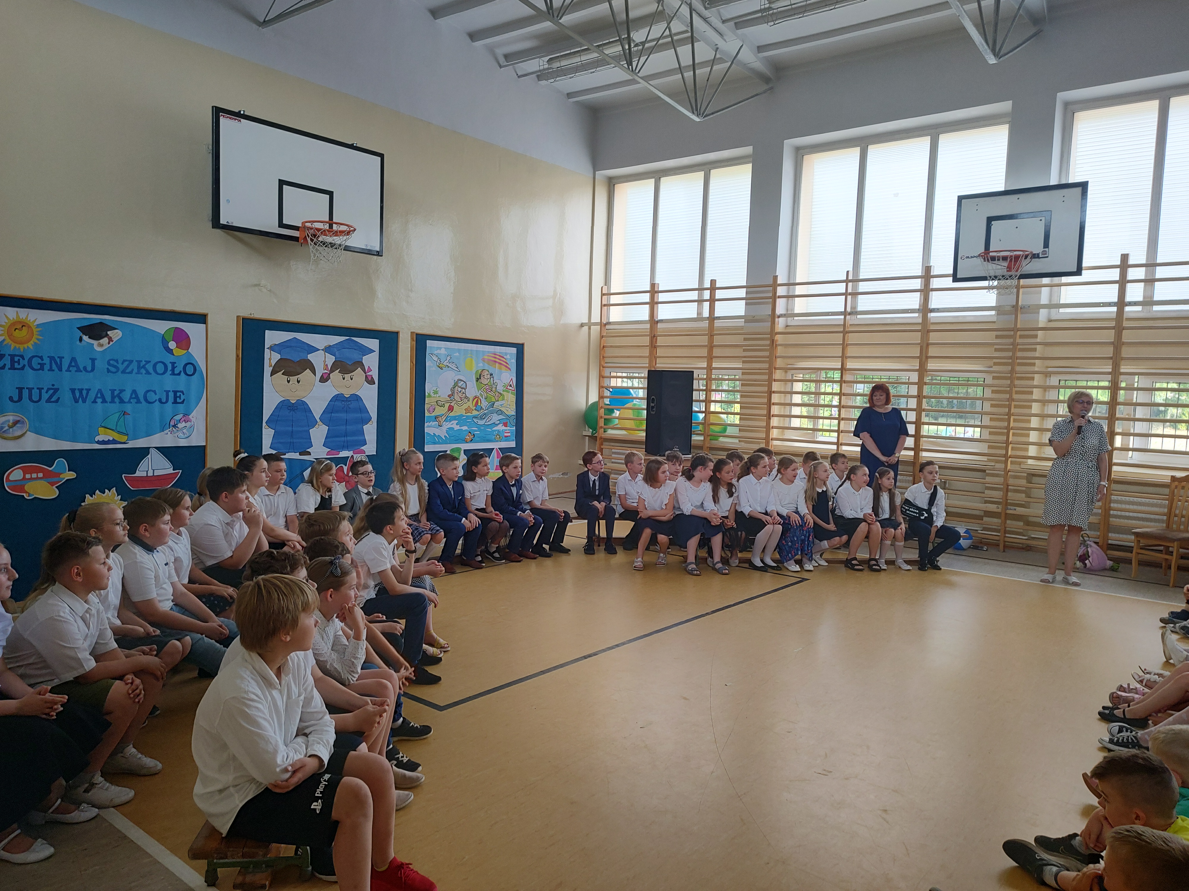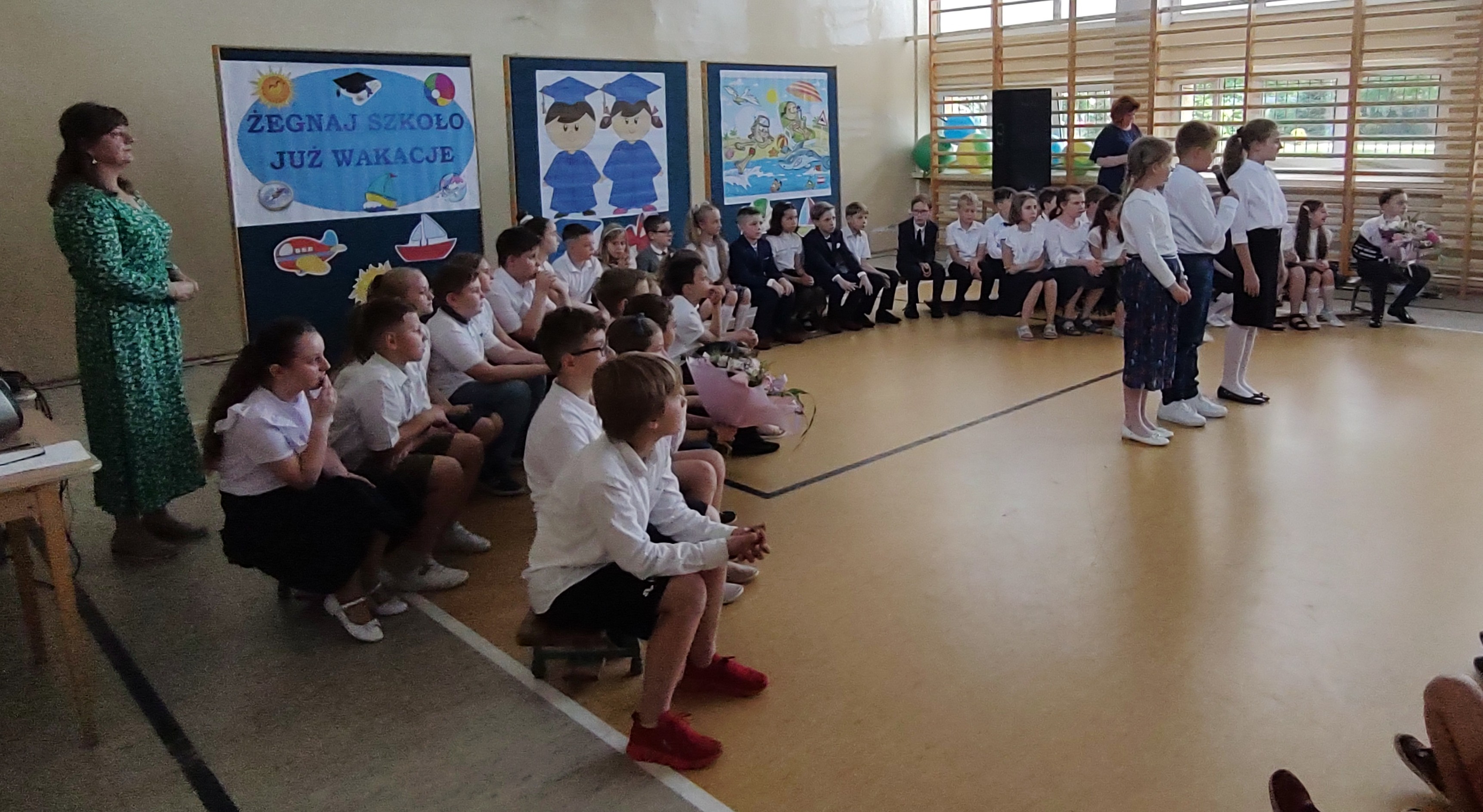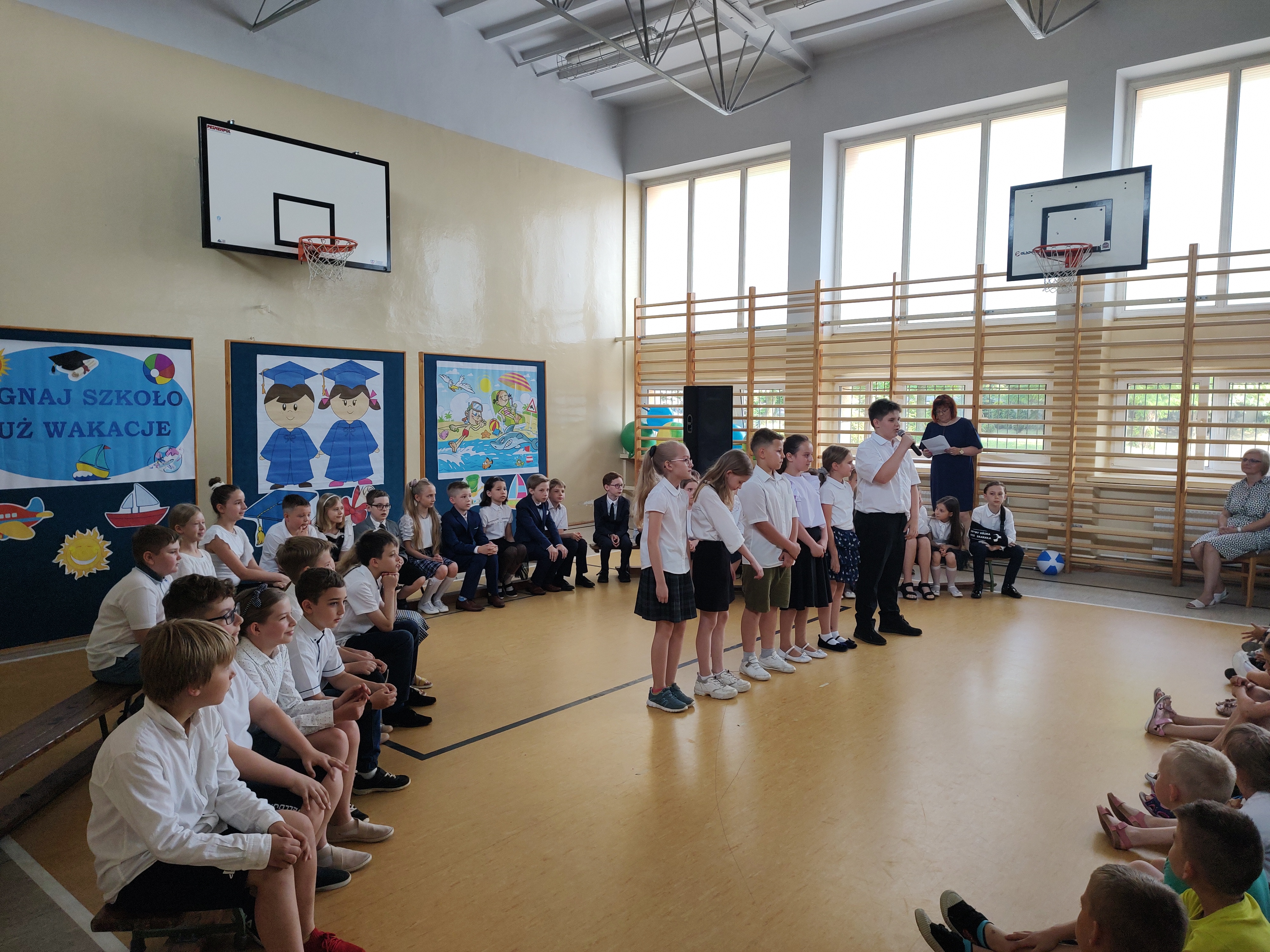 23 czerwca zabrzmiał w naszej szkole ostatni dzwonek. Był to szczególny moment zwłaszcza dla uczniów klas III, którzy zakończyli I etap kształcenia. Dzień wcześniej odbyła się akademia na zakończenie roku szkolnego pod hasłem „Żegnaj szkoło, witajcie wakacje!”. Trzecioklasiści wraz z wychowawcami przygotowali wzruszający program artystyczny składający się z wierszy i piosenek. Na zakończenie uroczystości dzieci podziękowały Paniom Dyrektorkom za opiekę i wręczyły Im kwiaty. Zebrani goście – rodzice, uczniowie i Dyrekcja nagrodzili małych artystów gromkimi brawami. Następnie Pani Dyrektor Barbara Sandorska podziękowała wszystkim za współpracę i życzyła udanych oraz bezpiecznych wakacji.