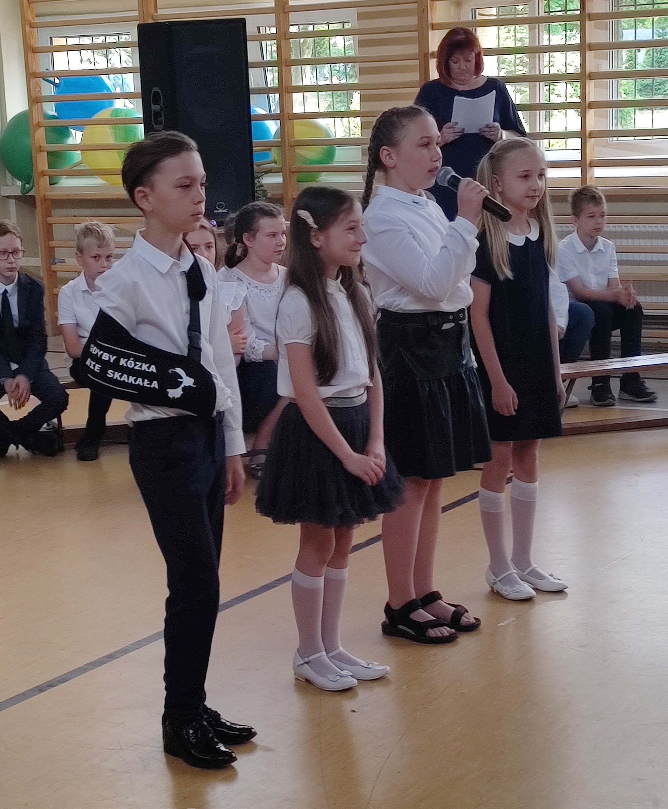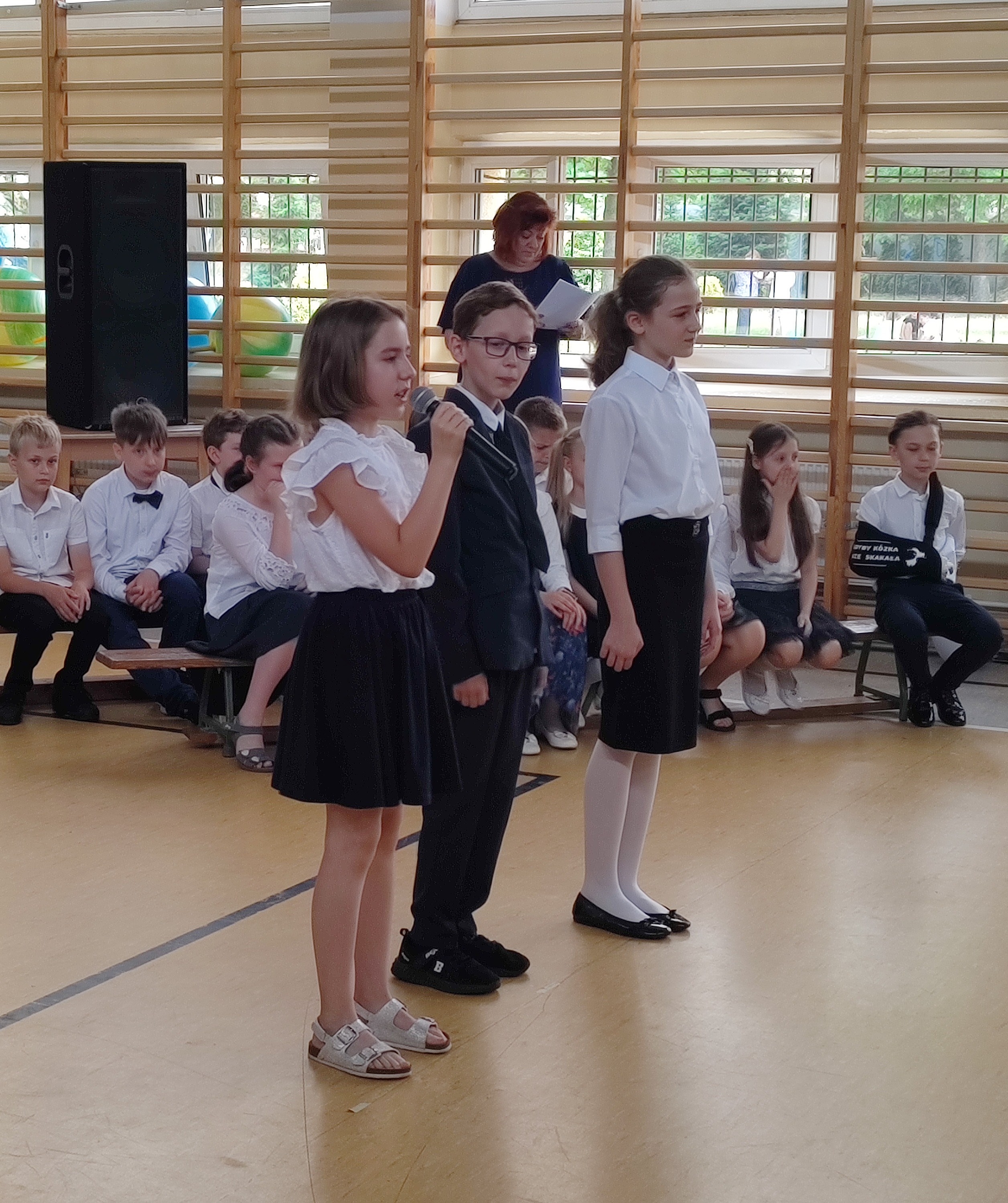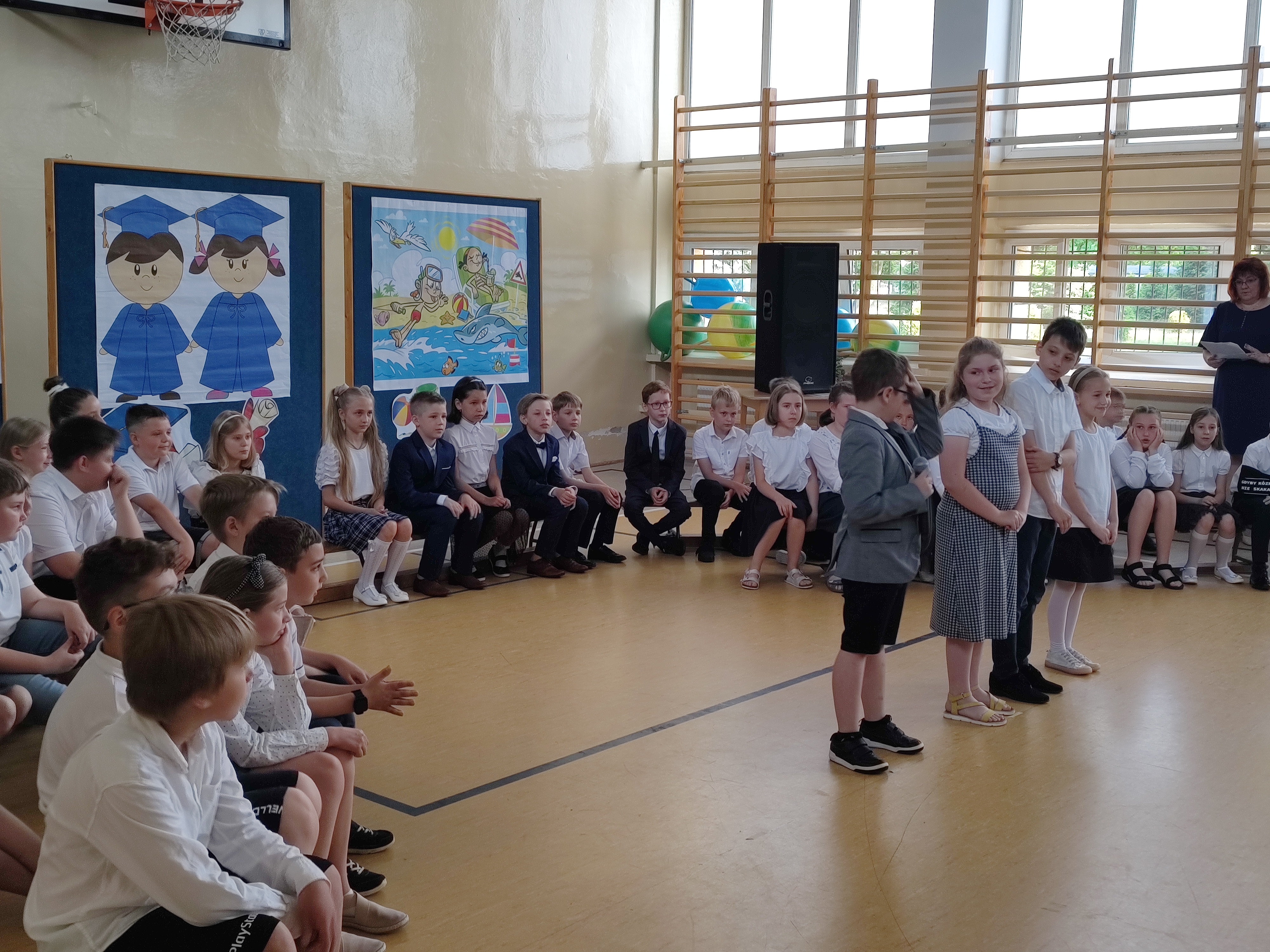23 czerwca zabrzmiał w naszej szkole ostatni dzwonek. Był to szczególny moment zwłaszcza dla uczniów klas III, którzy zakończyli I etap kształcenia. Dzień wcześniej odbyła się akademia na zakończenie roku szkolnego pod hasłem „Żegnaj szkoło, witajcie wakacje!”. Trzecioklasiści wraz z wychowawcami przygotowali wzruszający program artystyczny składający się z wierszy i piosenek. Na zakończenie uroczystości dzieci podziękowały Paniom Dyrektorkom za opiekę i wręczyły Im kwiaty. Zebrani goście – rodzice, uczniowie i Dyrekcja nagrodzili małych artystów gromkimi brawami. Następnie Pani Dyrektor Barbara Sandorska podziękowała wszystkim za współpracę i życzyła udanych oraz bezpiecznych wakacji.