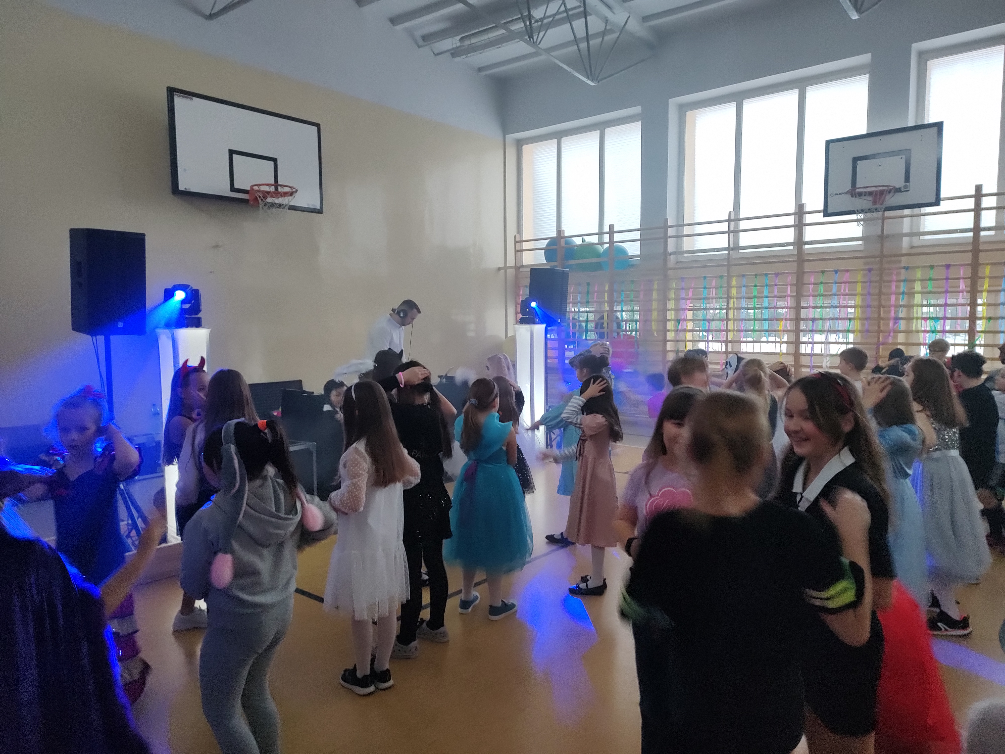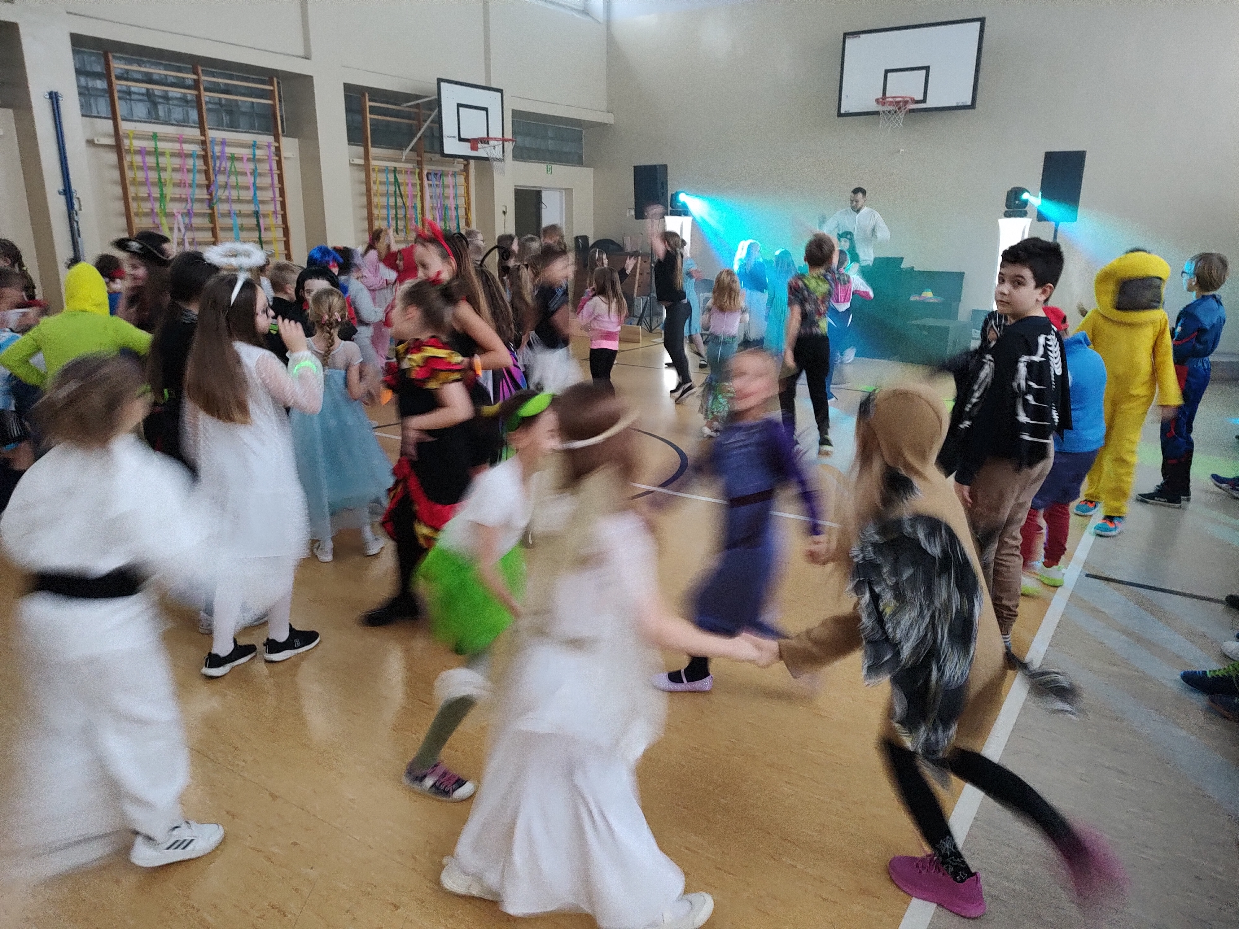 Dnia 17 stycznia 2024 roku w naszej szkole, jak co roku, odbył się bal karnawałowy dla najmłodszych klas. Sala gimnastyczna, udekorowana przez nauczycieli, zamieniła się w ogromny parkiet. Dzieci miały okazję wcielić się w swoje ulubione postaci z bajek, filmów, książek oraz zwierzątka. Przebrania były bardzo pomysłowe oraz kreatywne! Wśród bawiących się uczniów można było odnaleźć Harrego Pottera, Alicję z Krainy Czarów, Elsę oraz Spidermenów i innych super bohaterów. Do zabawy zachęcał gorącymi rytmami oraz piosenkami z list przebojów wspaniały DJ. Energicznym tańcom i zabawom nie było końca! Każdy uczestnik zakończył bal z ogromnym uśmiechem na twarzy oraz niewielkim zmęczeniem.