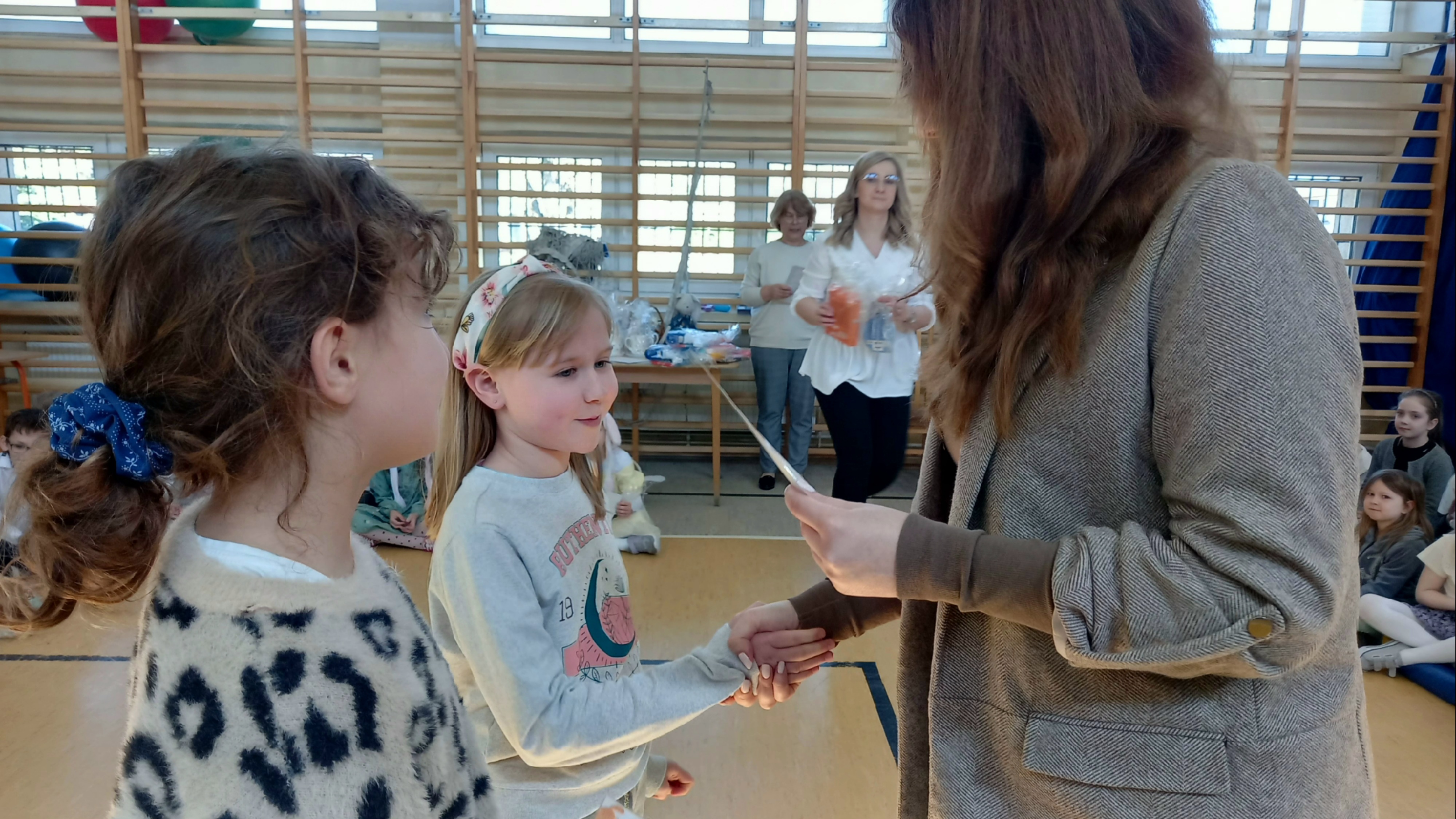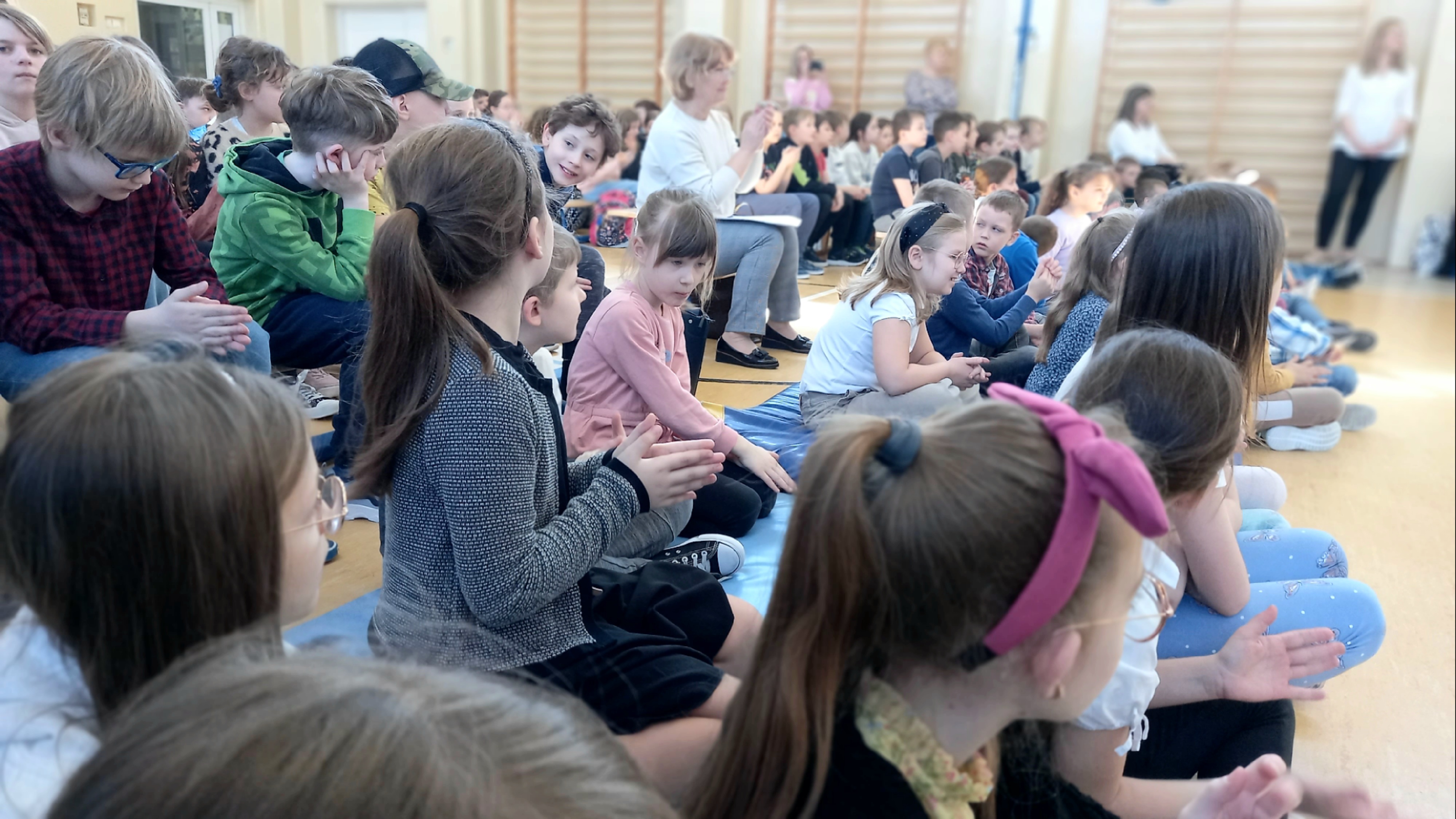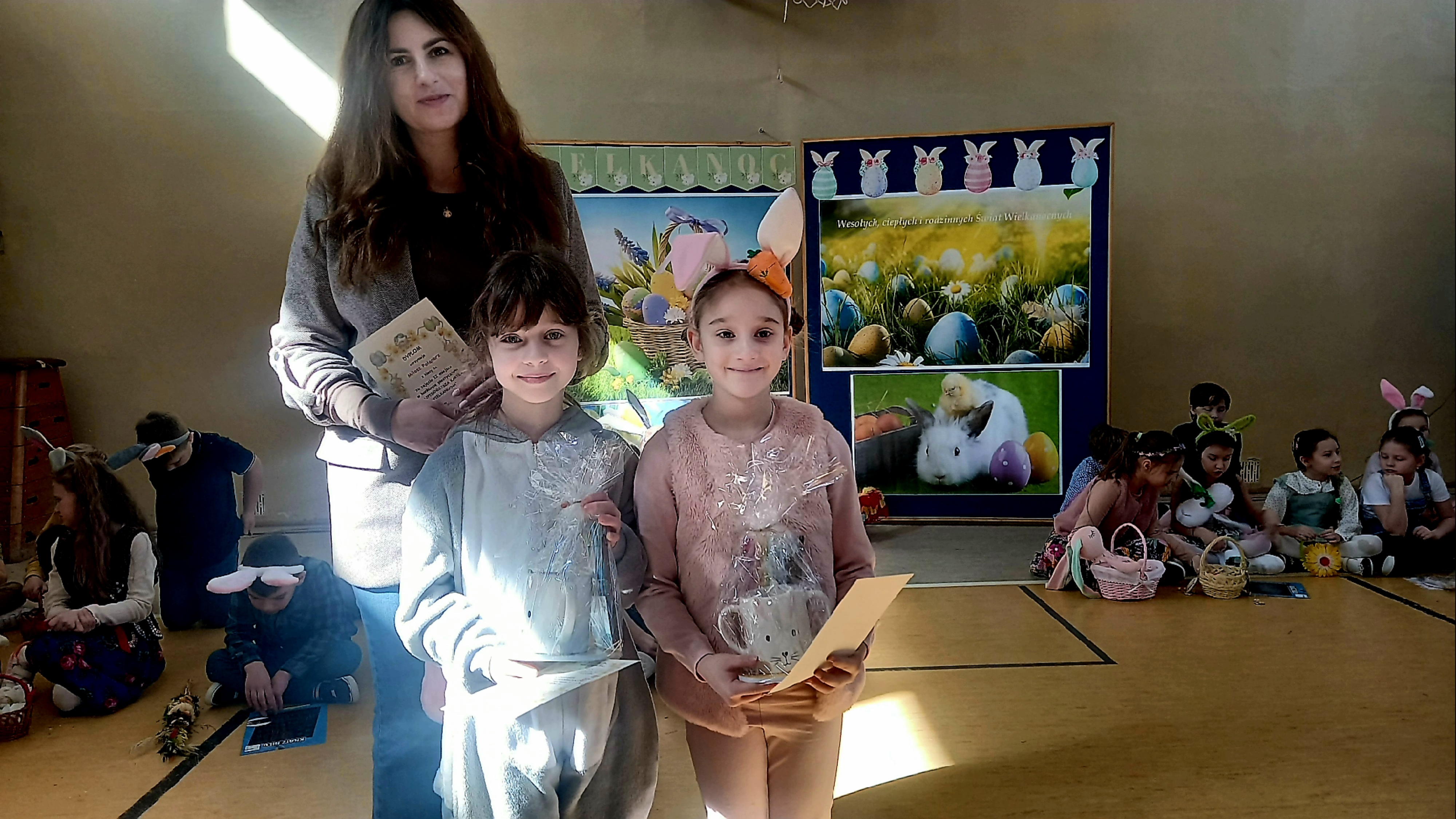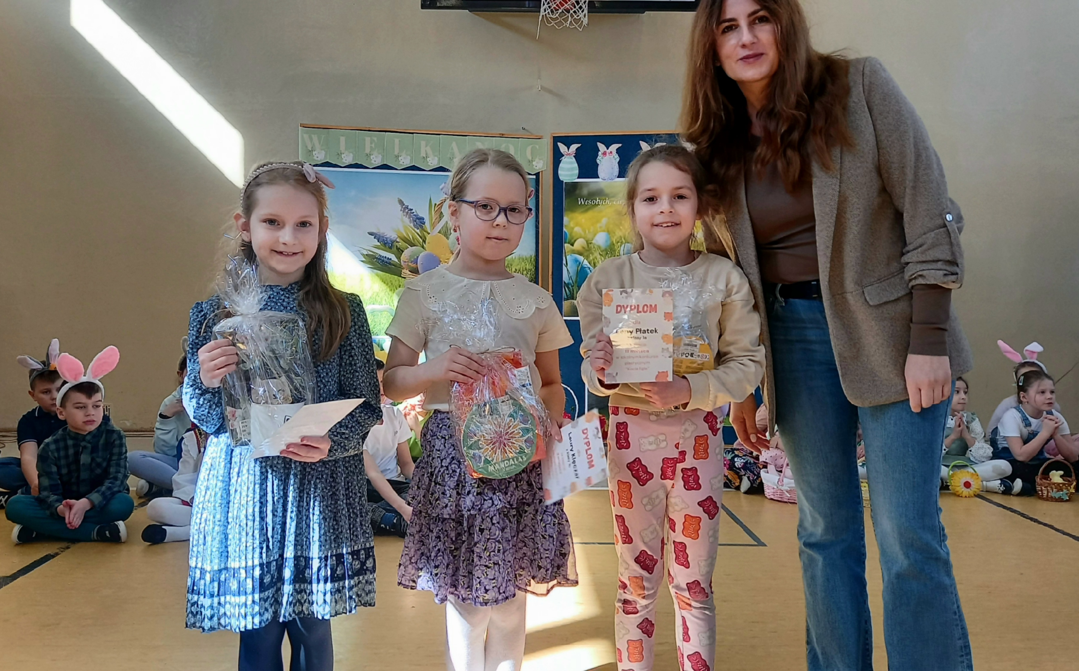 W dniu 26 marca, w naszej szkole, klasy drugie zaprezentowały się w krótkim przedstawieniu przygotowanym z okazji nadchodzących Świąt Wielkanocnych. Na scenie pojawiły się wesołe króliczki, rozkoszne baranki oraz urocze kurczątka. Dzieci były także przebrane w tradycyjne stroje krakowskie. Scenerię dopełniły takie rekwizyty jak koszyczki i palmy a na tablicy multimedialnejpojawiły się teledyski do śpiewanych piosenek. Sala gimnastyczna tętniła kolorami! Drugoklasiści przedstawili tradycje związane z Wielkanocą, począwszy od Niedzieli Palmowej po Lany Poniedziałek. Pięknie recytowane wiersze oraz wesoło odśpiewane piosenki wprowadziły nas w klimat zbliżających się Świąt.