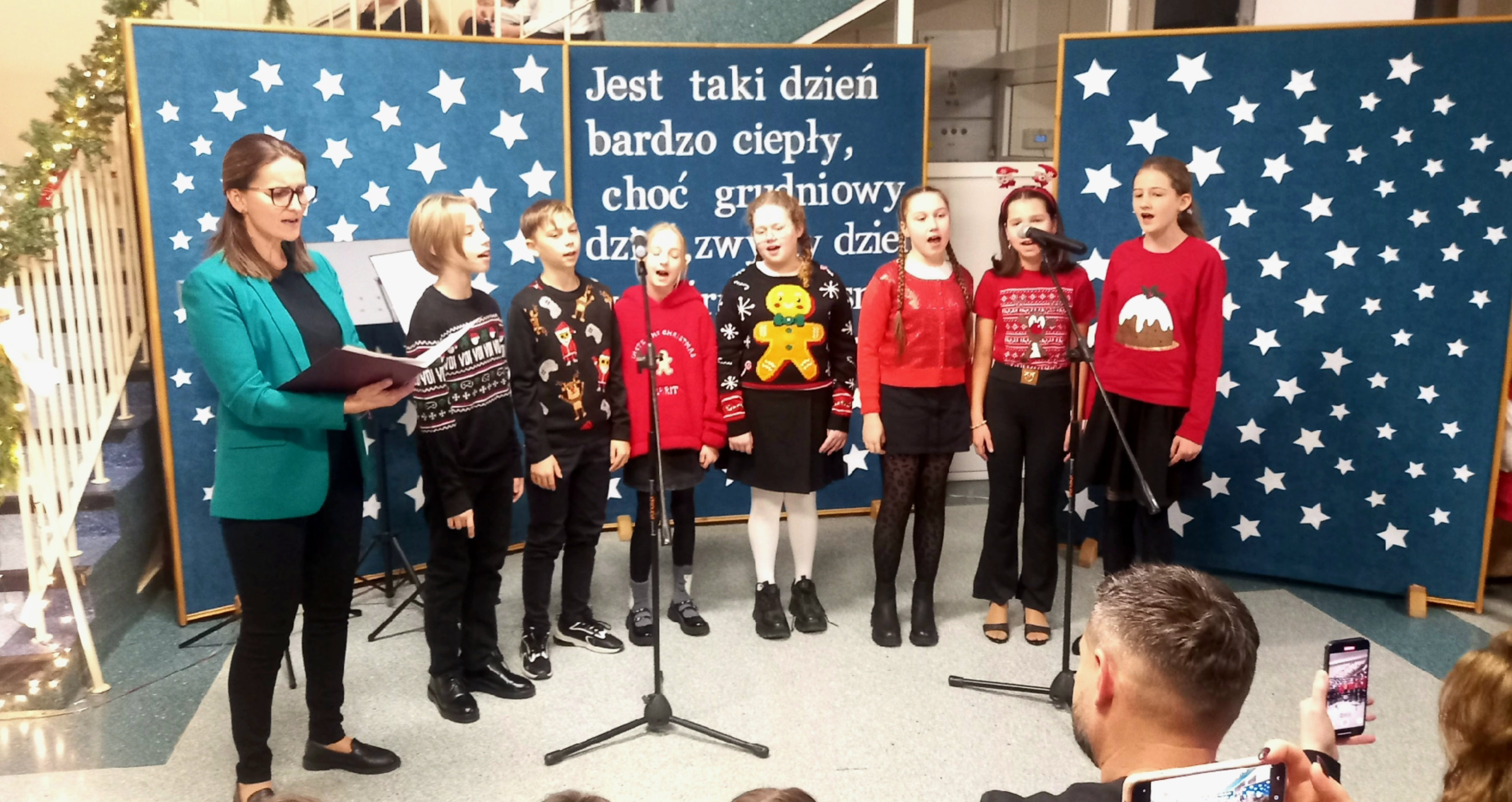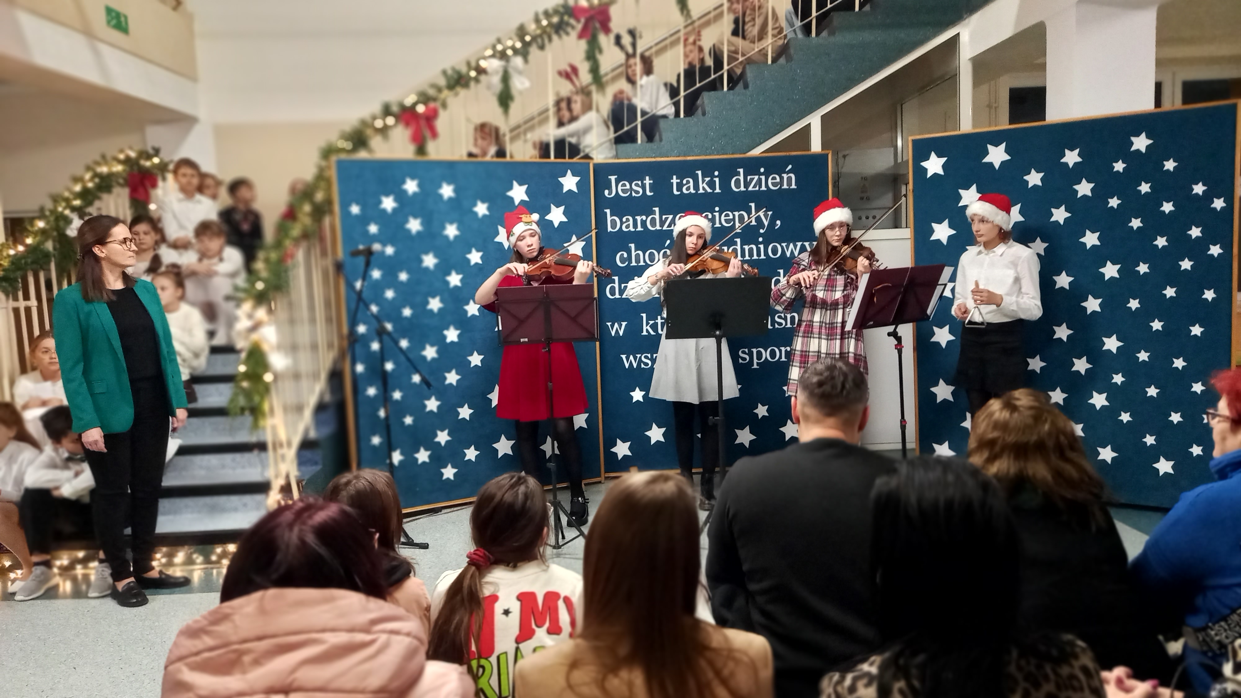 W dniu 11 grudnia w niepowtarzalnej atmosferze odbyło się spotkanie uczniów, rodziców oraz nauczycieli. Ten zimowy, cudny przedświąteczny czas podkreślił koncert kolęd, pastorałek i piosenek zimowych. Znane i lubiane bożonarodzeniowe utwory śpiewali nie tylko najmłodsi i starsi uczniowie, ale nastrojowe nuty zaprosiły do słuchania i śpiewania także gości i nauczycieli. Na koniec wszyscy mogli delektować się pysznym, domowym ciastem, które upiekli nasi rodzice. Przedświąteczny koncert wprowadził w niezwykłą atmosferę Bożego Narodzenia całą naszą społeczność szkolną.