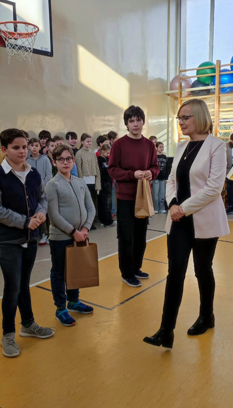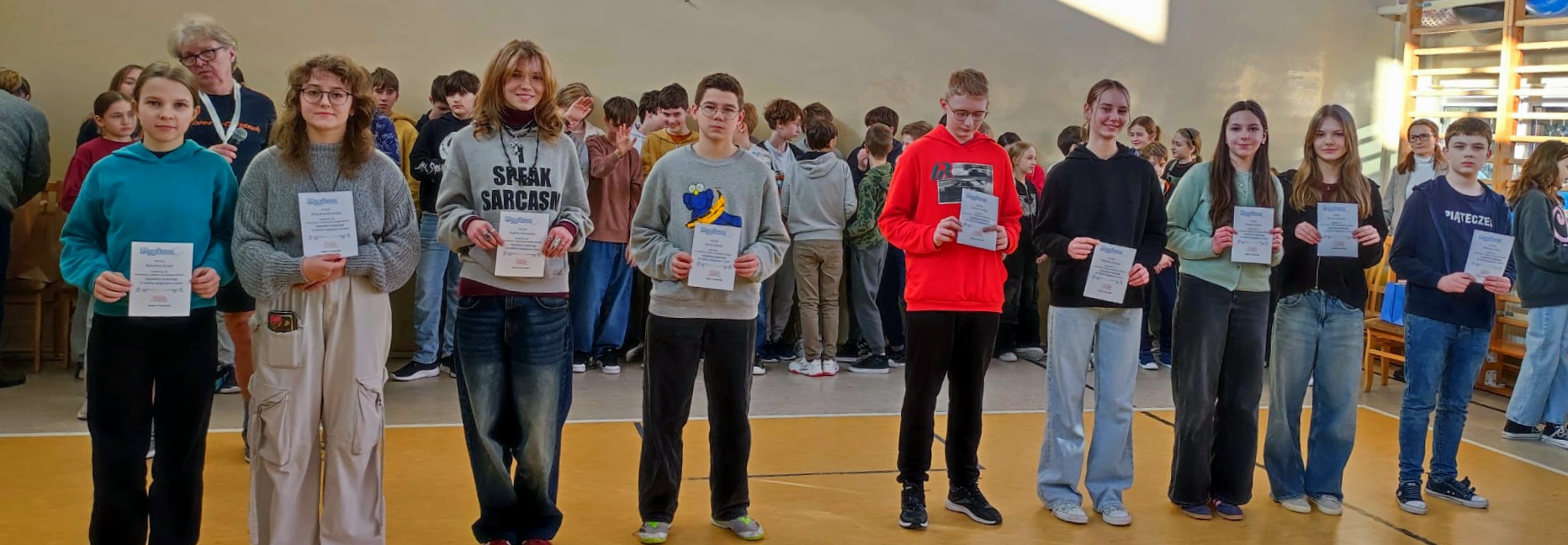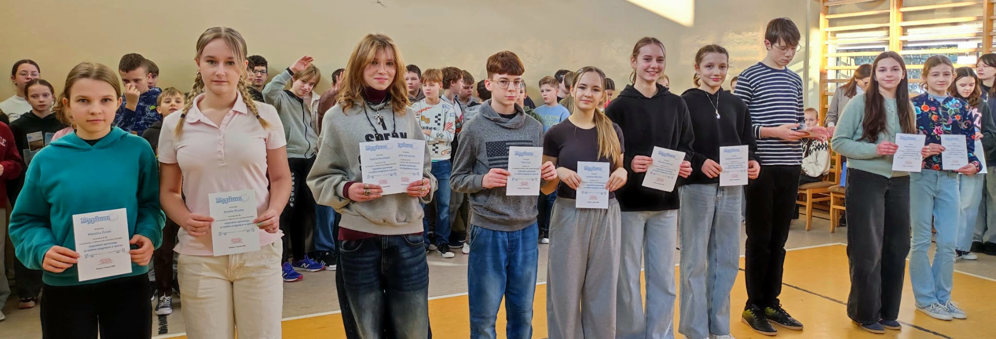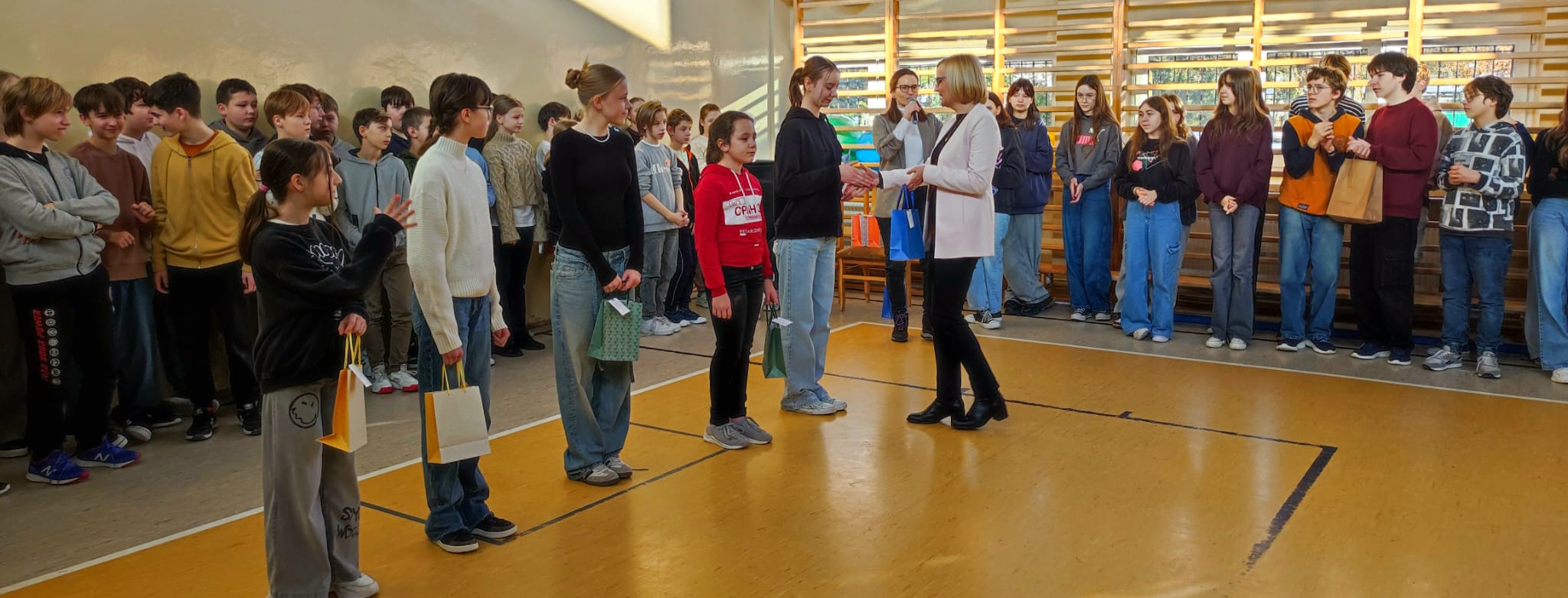 Dnia 17 stycznia 2025 roku odbył się apel Starszego Samorządu Uczniowskiego, podczas którego podsumowano I półroczne roku szkolnego 2024/2025. Pani Dyrektor wręczyła nagrody „Złotej piątki” dla najlepszych klas w szkole w kategorii 4-6 i 7-8. Zwycięskimi klasami zostały: 4b i 7b. Zostały również wręczone dyplomy uczniom, którzy otrzymali stypendia naukowe oraz sportowe. Nauczyciele nagrodzili też zwycięskich uczniów w konkursach przedmiotowych.