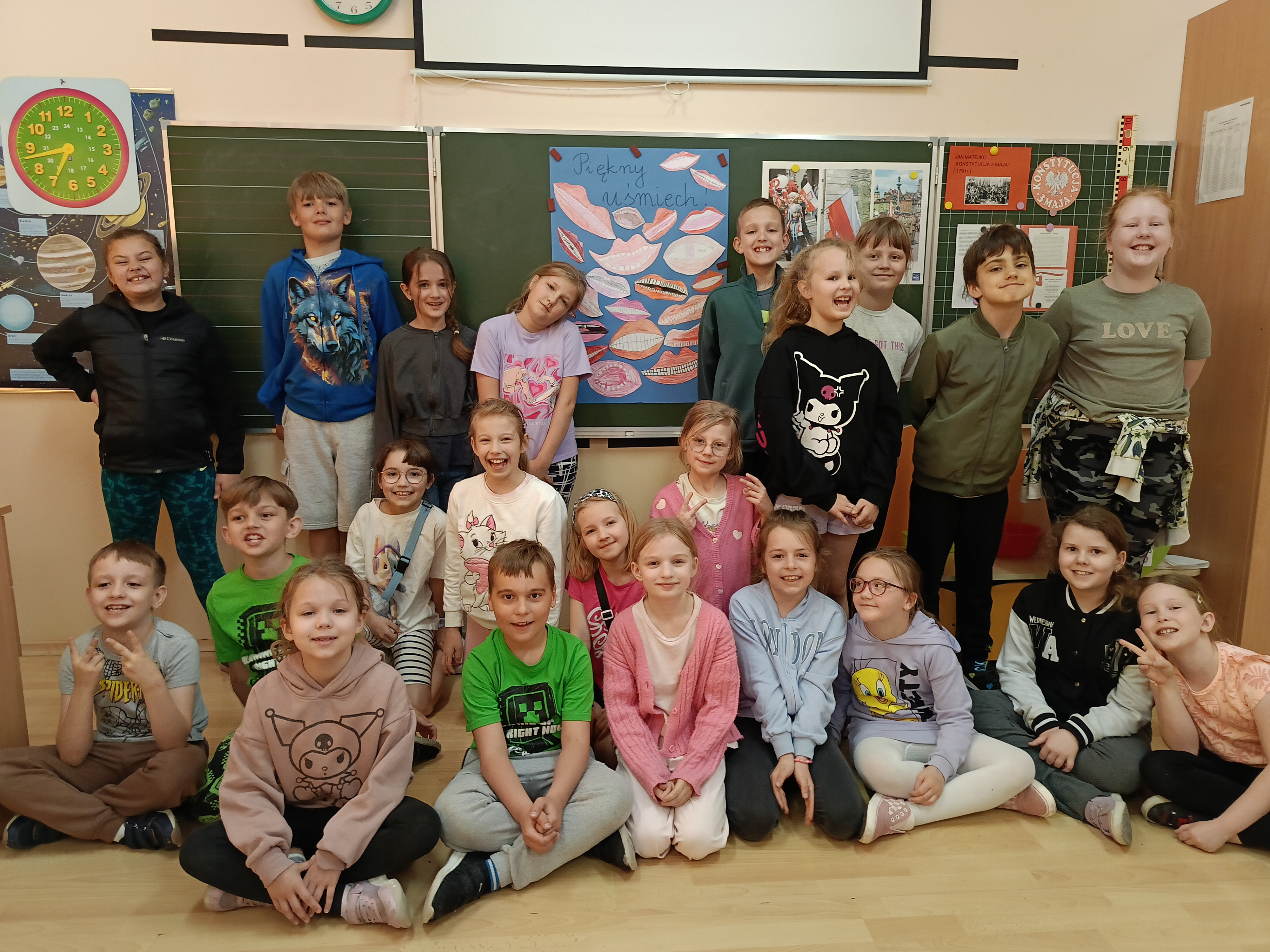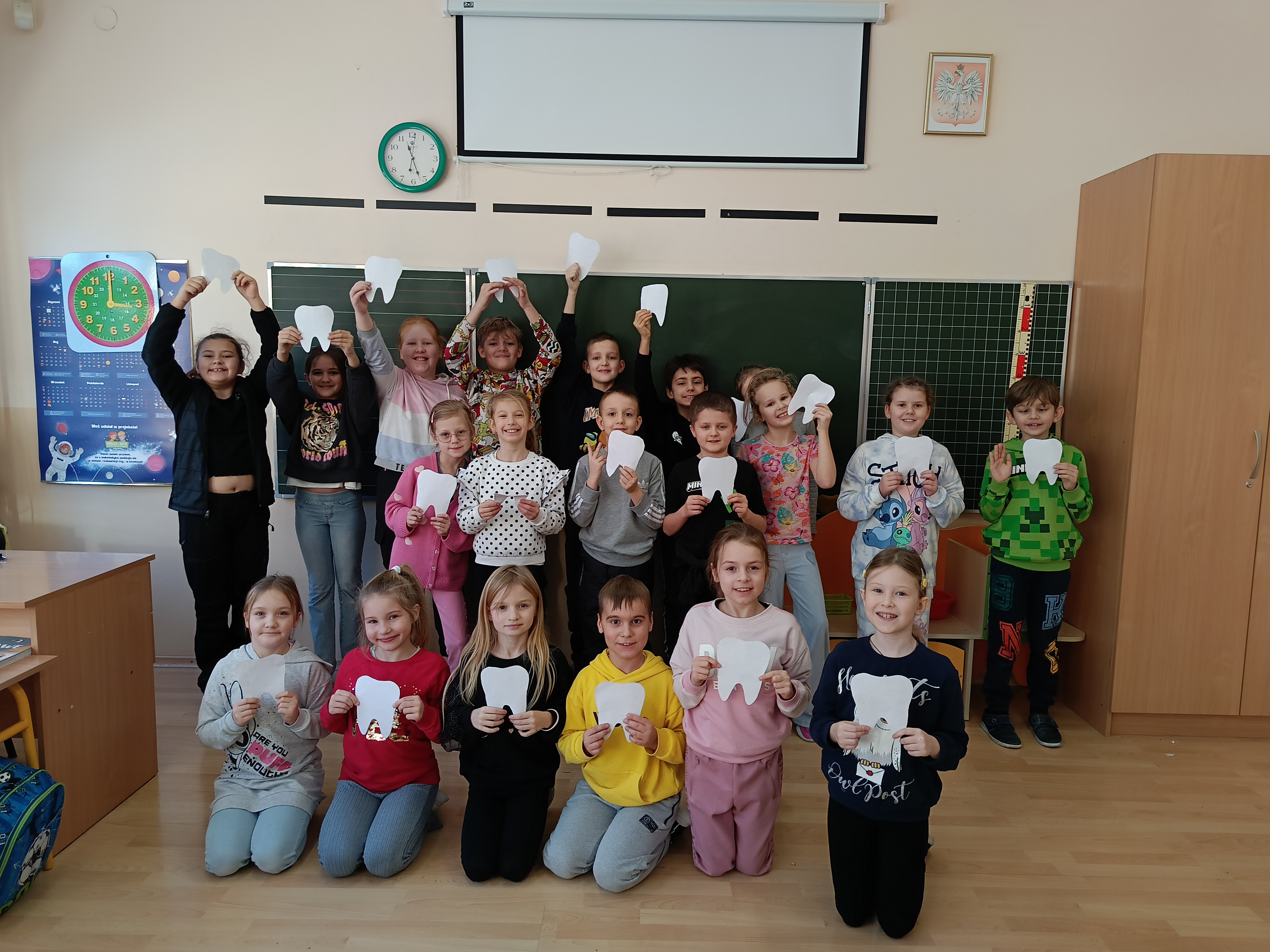 Uczniowie klas I-III w ramach profilaktycznego programu opracowanego przez PCK i Polskie Towarzystwo Stomatologii Dziecięcej uczyli się, jak zachować prawidłową higienę jamy ustnej i dbać o zęby. Dzieci z zaangażowaniem uczestniczyły w zajęciach. Za pomocą różnych technik plastycznych wykonały ciekawe prace. Odbywały się również projekcje multimedialne. Uczniowie rozwiązywali krzyżówki, zagadki i wykonali plakaty. Różnorodne działania w ramach programu „Dziel się Uśmiechem” pozwoliły uświadomić uczniom, że warto dbać o swoje zęby, by jak najdłużej były zdrowe i piękne.