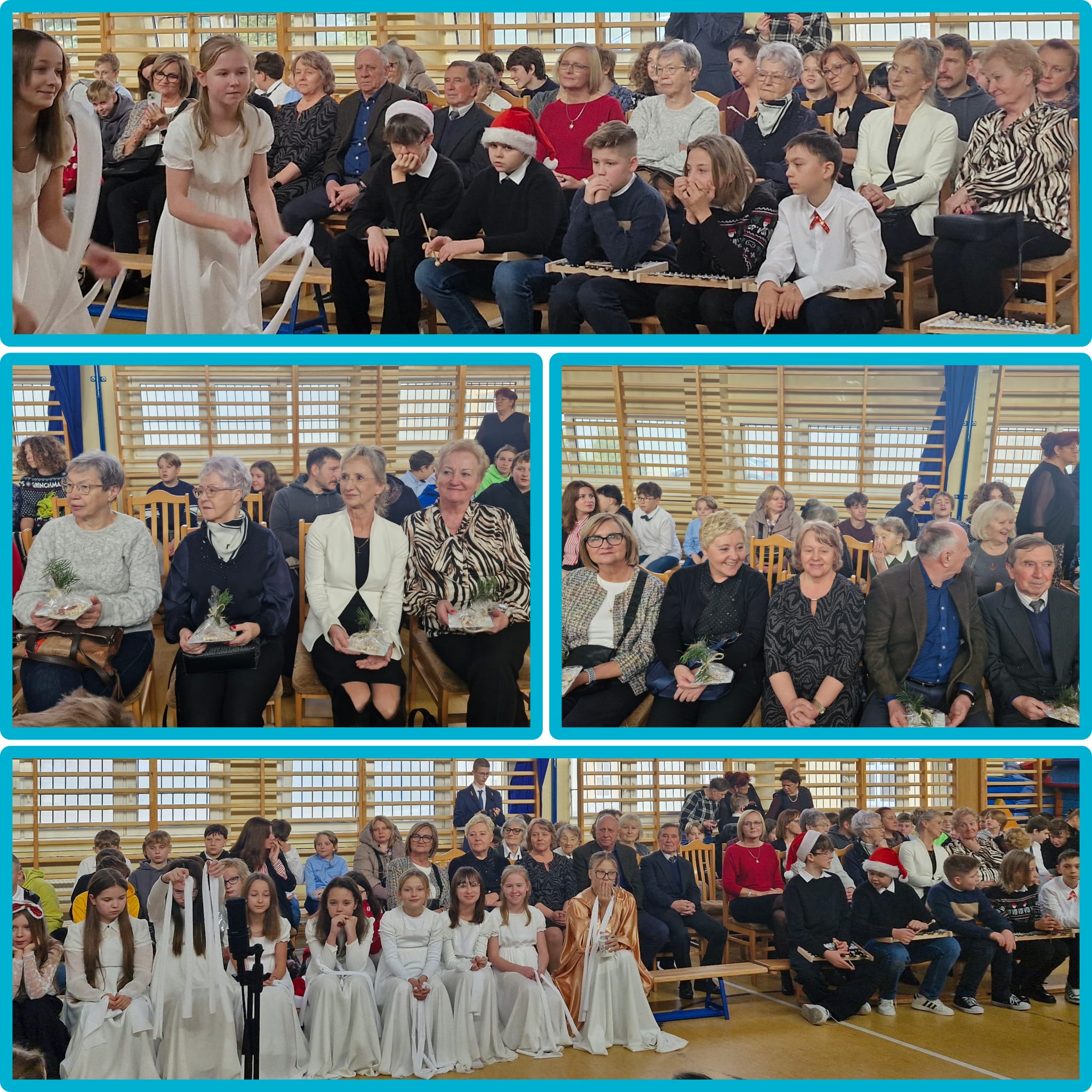 Szczególnymi gośćmi tego dnia byli emerytowani nauczyciele i pracownicy naszej szkoły. Cieszymy się, że zaszczycili nas swoją obecnością i wspólnie mogliśmy spędzić te wyjątkowe chwile, śpiewając kolędy.