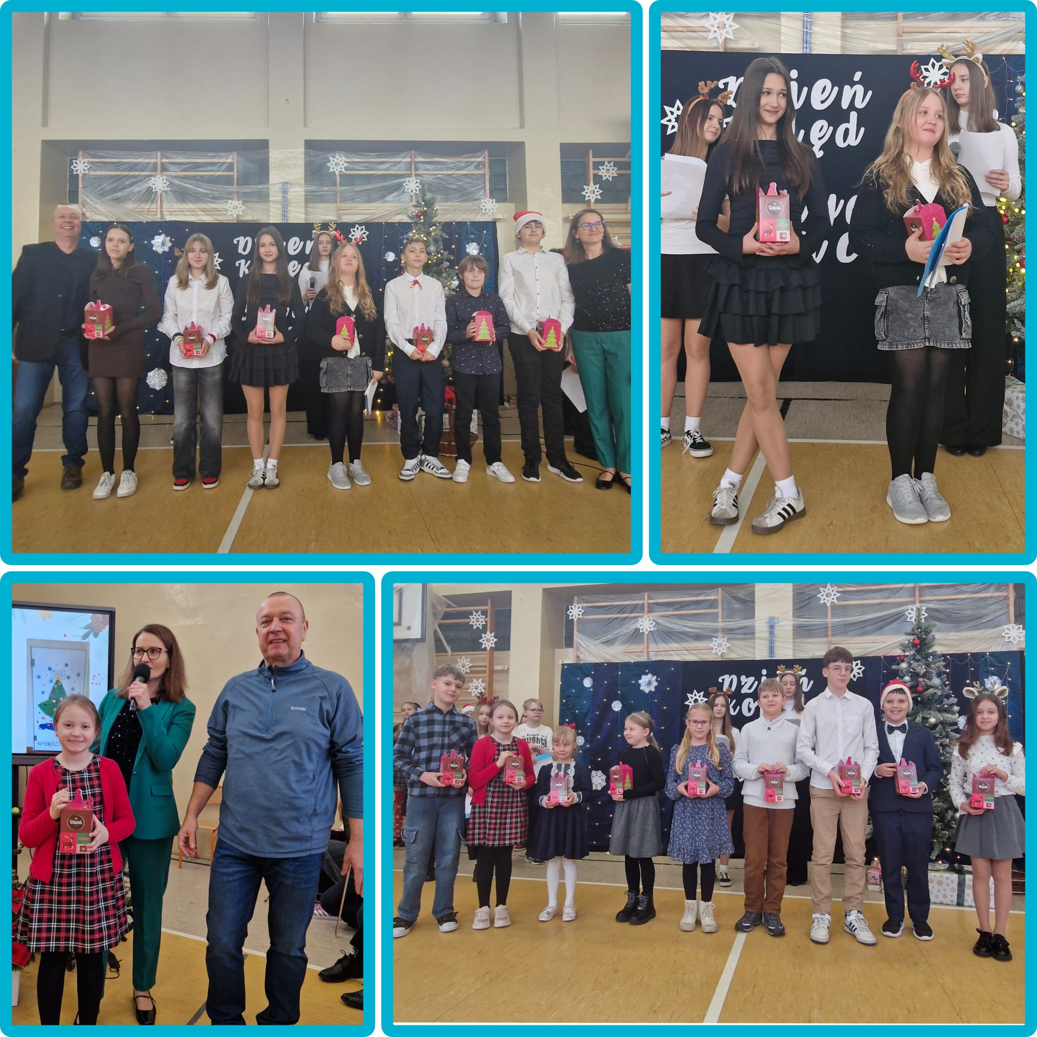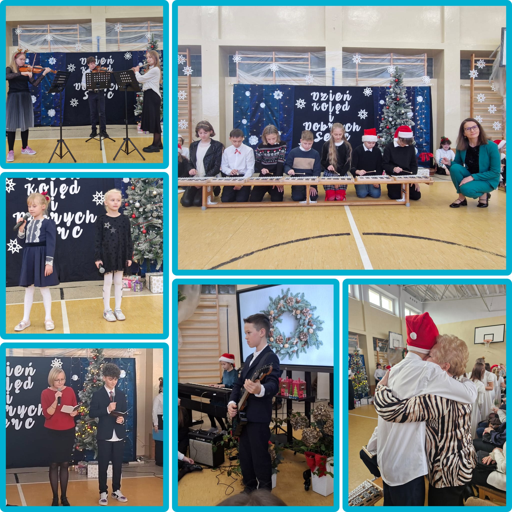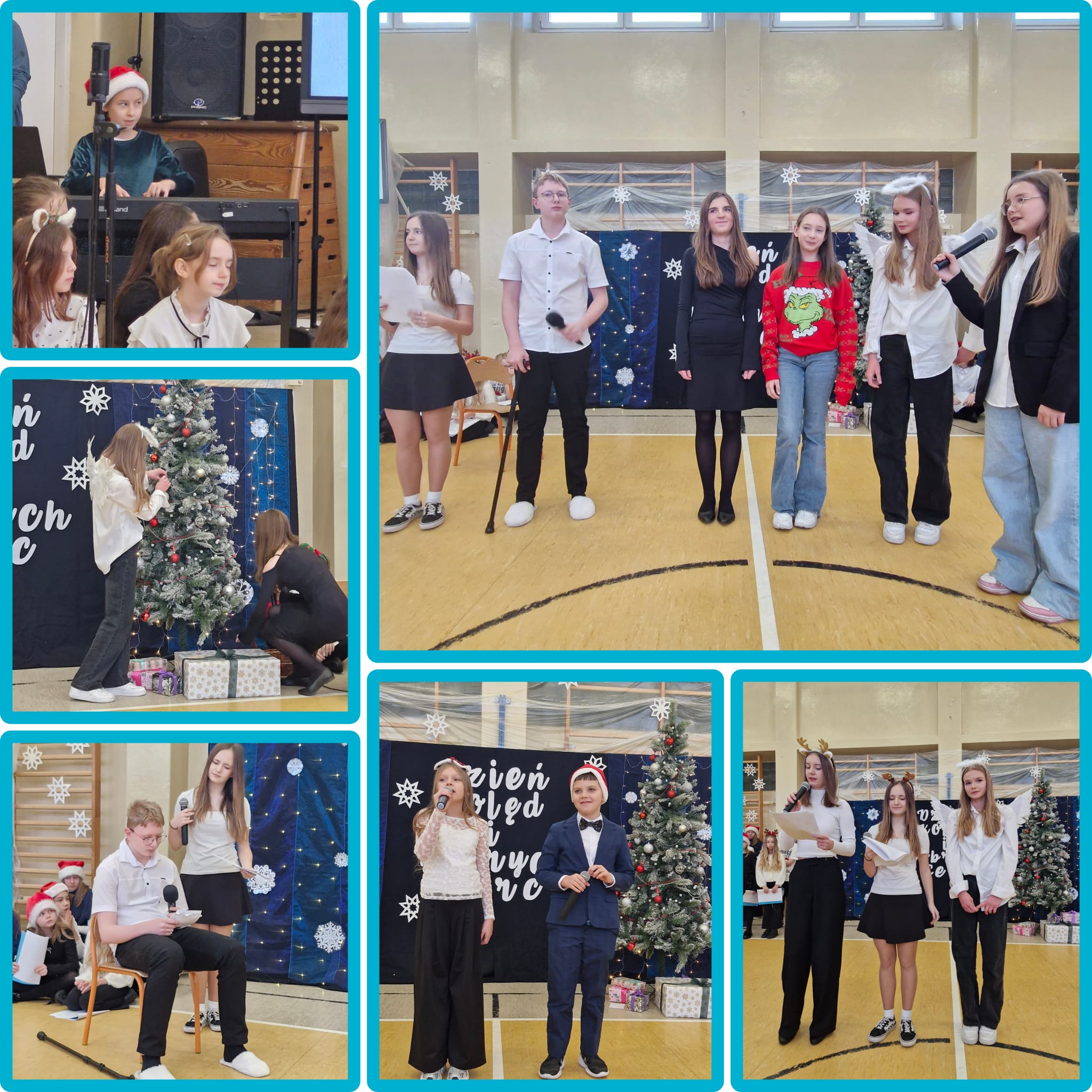 19 grudnia 2025 r. w naszej szkole odbył się „Dzień kolęd i dobrych serc”. W magiczny, świąteczny nastrój wprowadził nas szkolny chór, wykonując piękne kolędy. Uczniowie zaprezentowali również scenkę pt. „Magia serca”, której przesłaniem było to, że prawdziwa magia świąt nie kryje się w prezentach, lecz w dobru, które ofiarujemy innym. Podczas wydarzenia mogliśmy także wysłuchać wierszy oraz podziwiać występ taneczny.