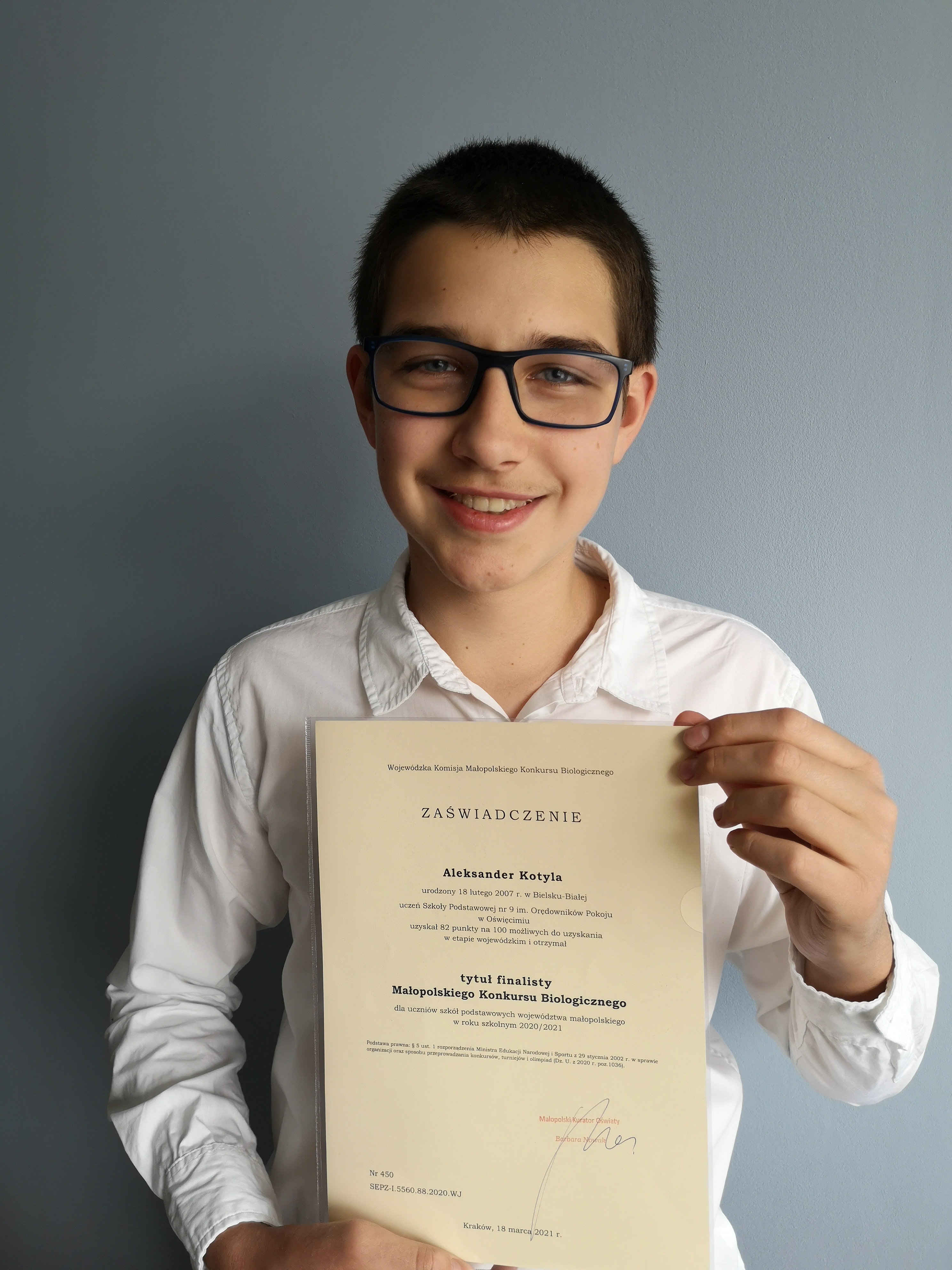Olkowi życzymy kolejnych sukcesów w nauce!