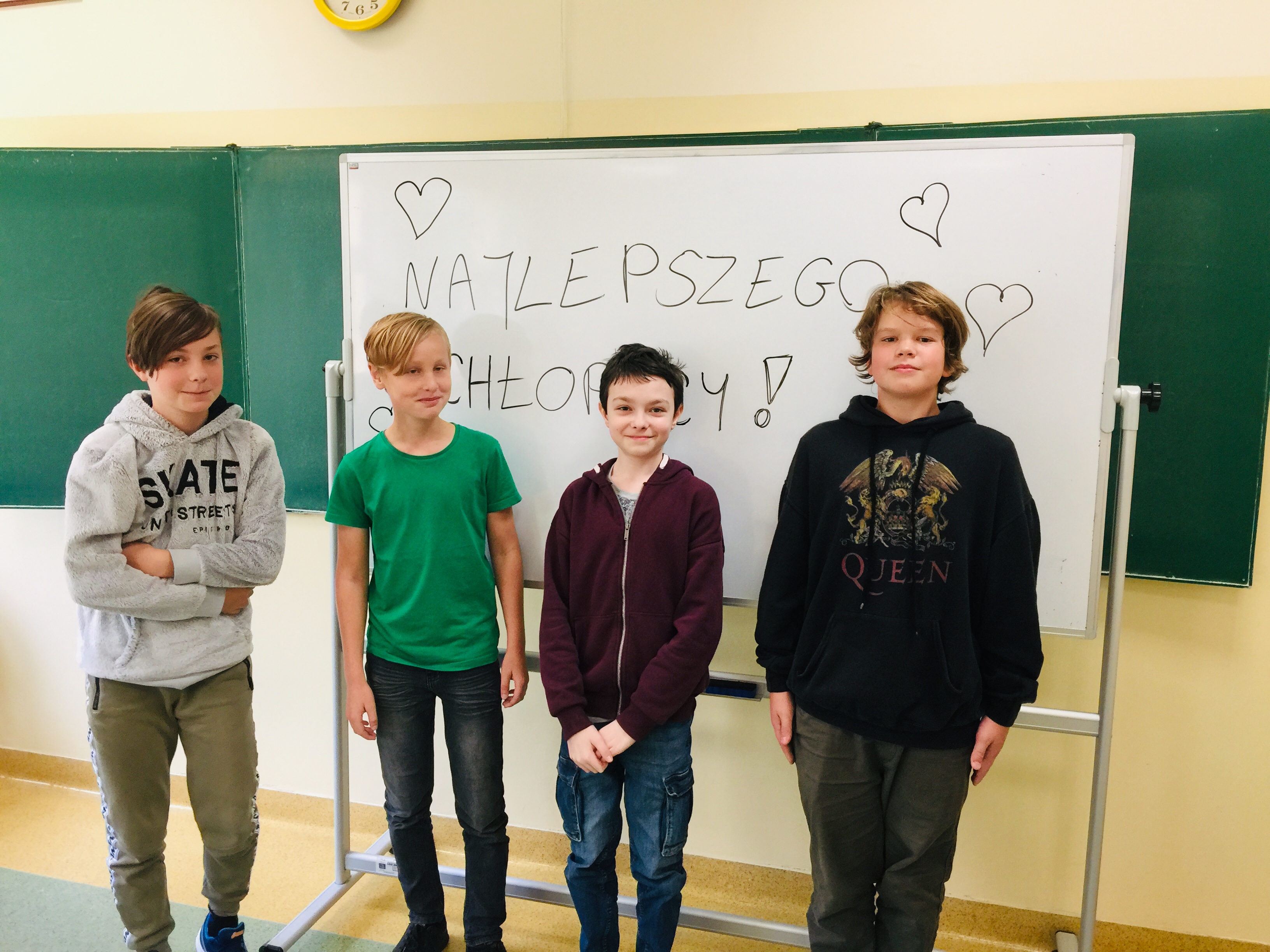 Dzień Chłopaka w klasie 7C spędziliśmy bardzo wesoło. Było dużo śmiechu i trochę wygłupów. Nasi czterej mężczyźni zostali zaskoczeni przez swoje koleżanki niespodzianką - otrzymali śmieszne kartki z życzeniami. Wszyscy zjedli pyszne lody i słodycze.