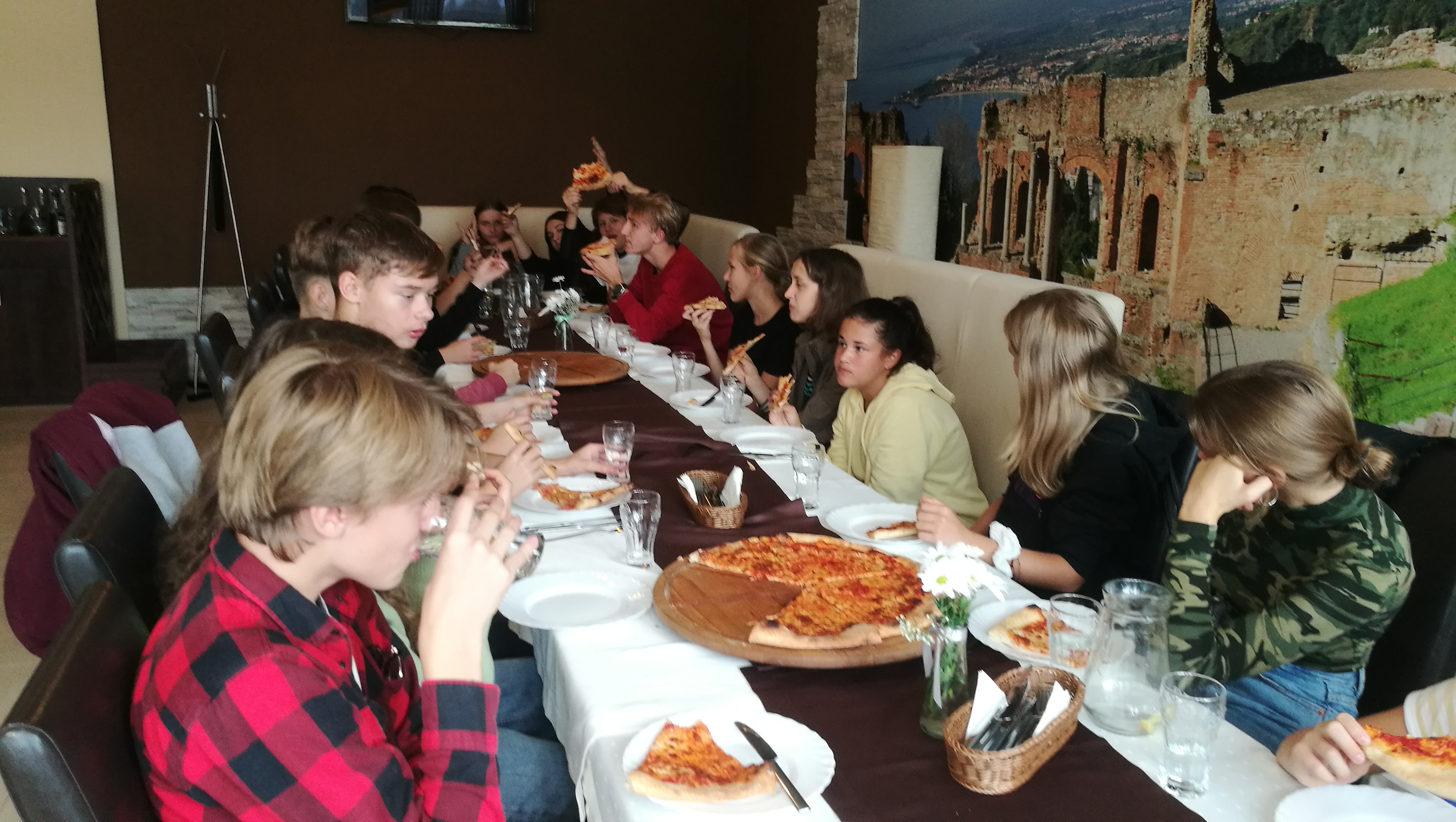 Dnia 25.09.2020r. klasa 8c uczciła zbliżający się Dzień Chłopaka wyjściem do pobliskiej pizzerii. Wspólna wycieczka stała się wspaniałą okazją do integracji i miłego spędzenia czasu. Podczas spotkania panowała radosna atmosfera, gdyż wszystkim dopisywał doskonały humor.