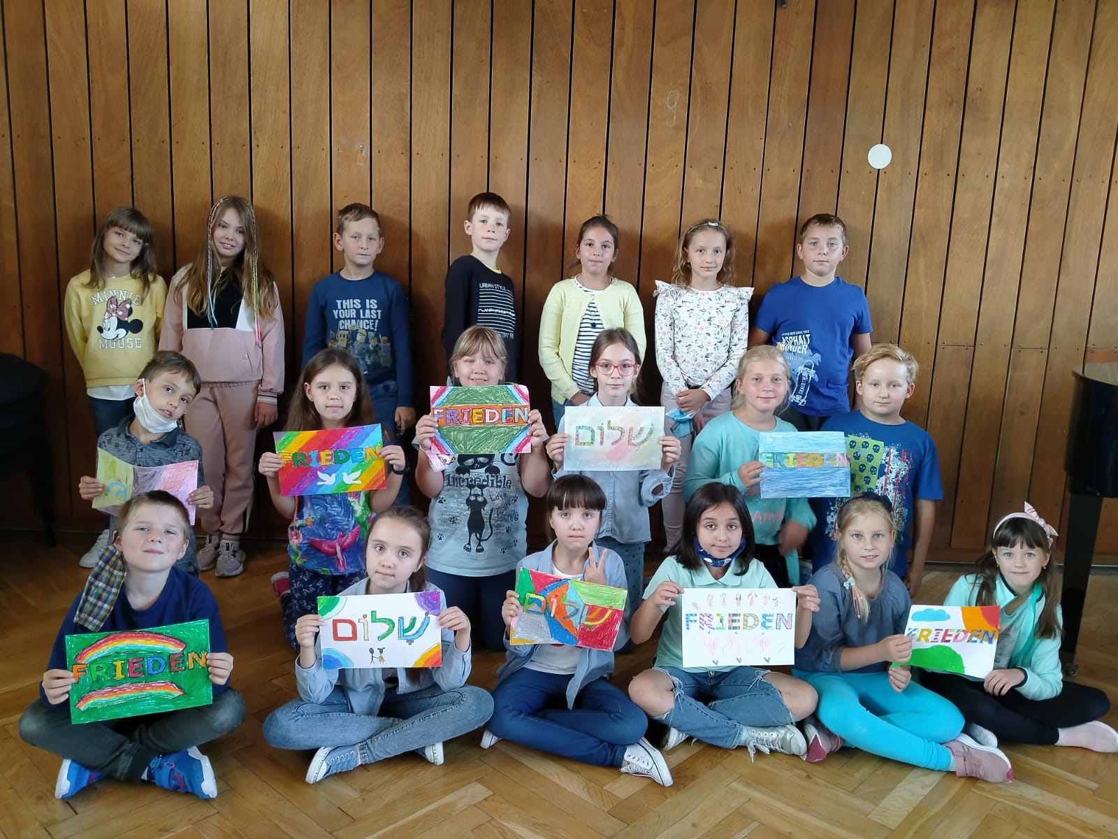 Tradycyjnie w naszej szkole od kilku lat obchodzimy Międzynarodowy Dzień Pokoju. Także w tym roku 21 września – tak jak na całym świecie – chcieliśmy zwrócić uwagę społeczności szkolnej, jak ważny jest pokój! Wielu uczniów klas 4 – 8 napisało wiersze, w których podkreślało wartość pokoju i bezpieczeństwa na świecie. Wielokrotnie padało pytanie, dlaczego okrucieństwo wojny się powtarza, a ludzkość nie uczy się na błędach przeszłości. Klasy młodsze wykonały piękne i kolorowe prace plastyczne z hasłem „Pokój” w wielu językach. Bardzo dziękujemy tym, którzy zaangażowali się w organizację tego dnia oraz tym, którzy uczcili go, ubierając się na niebiesko. Kolor ten jest kolorem przewodnim sztandaru naszej szkoły, która nosi imię Orędowników Pokoju.