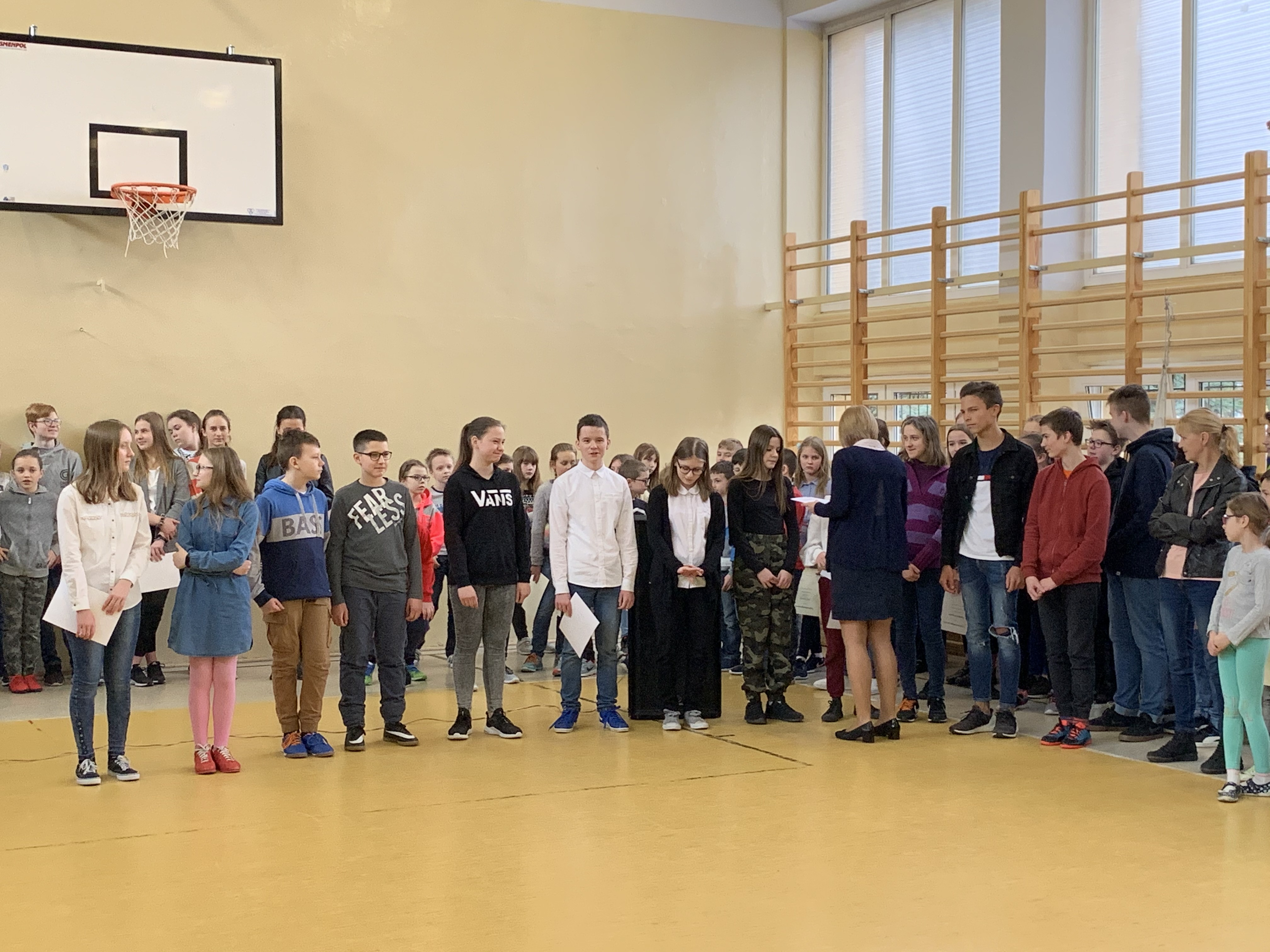 Dnia 20 lutego 2020r. odbył się w naszej szkole apel podsumowujący wyniki nauczania i zachowania w pierwszym półroczu roku szkolnego 2019/2020. Licznej grupie uczniów, którzy osiągnęli wysokie wyniki w nauce i wyróżnili się wzorowym zachowaniem, wychowawcy wręczyli dyplomy uznania. Stypendia za wyniki w nauce otrzymało 9 osób. Stypendia za osiągnięcia sportowe udało się uzyskać 12 uczniom. Klasa 4b, 5a, 6b, 7c, 8c zyskała miano ZŁOTEJ PIĄTKI. Wszystkim serdecznie gratulujemy i życzymy dalszych sukcesów!
