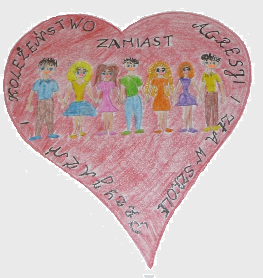 Początkiem roku 2017rozpoczęliśmy w naszej szkole kampanię przeciwko agresji i przemocy, której hasło brzmi „Koleżeństwo i przyjaźń zamiast zła i agresji w szkole”. Autorką hasła i logo naszej kampanii jest Natalka Cholewka z klasy 3c.